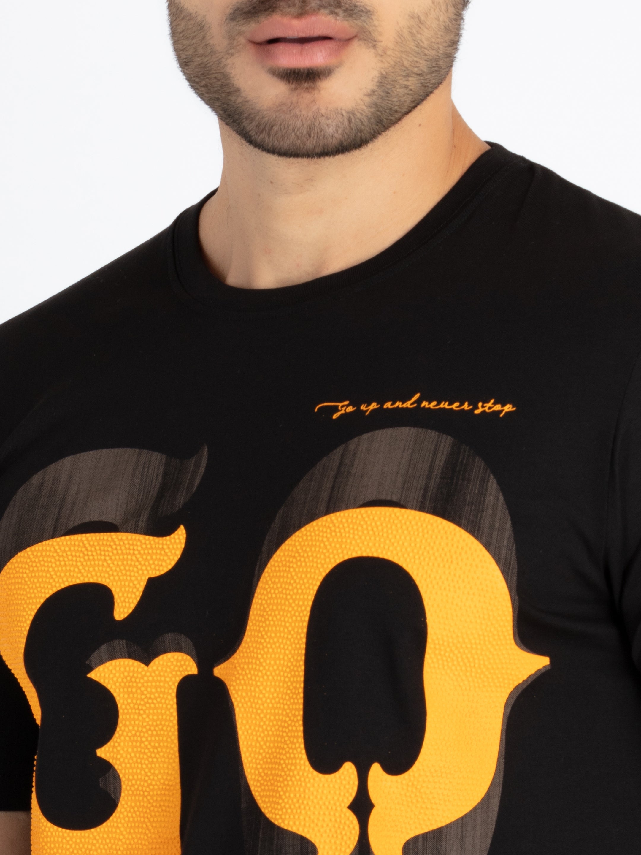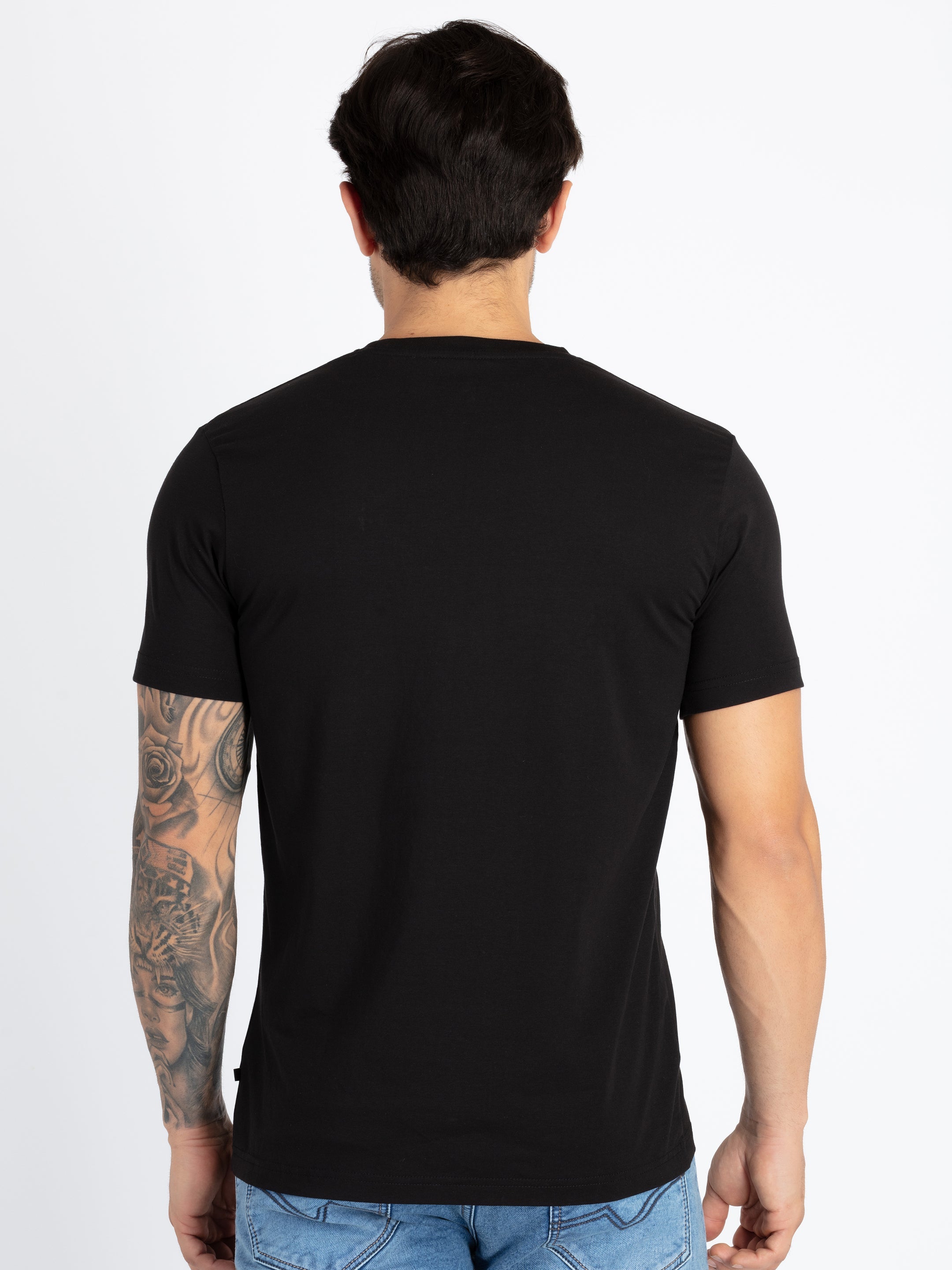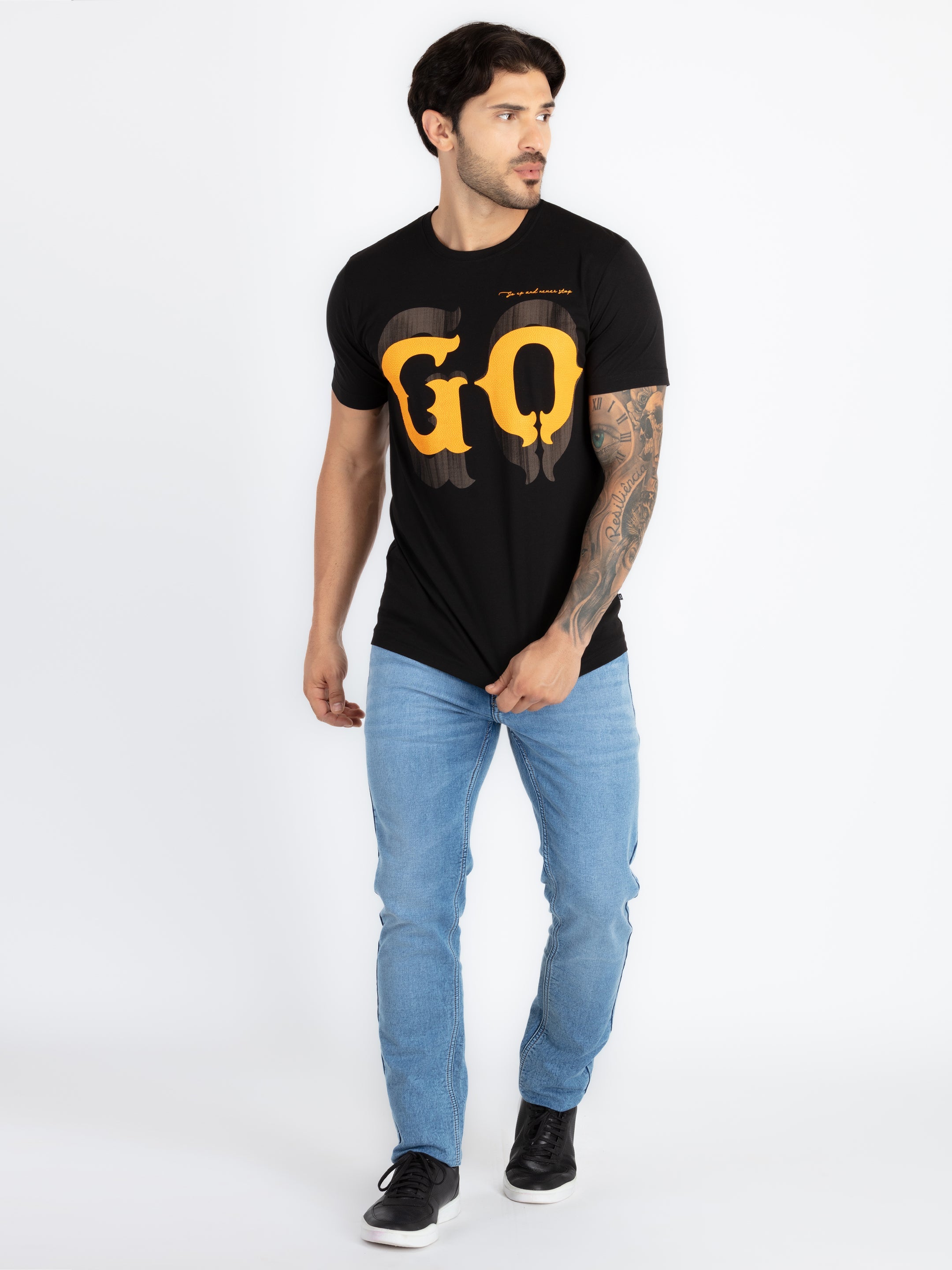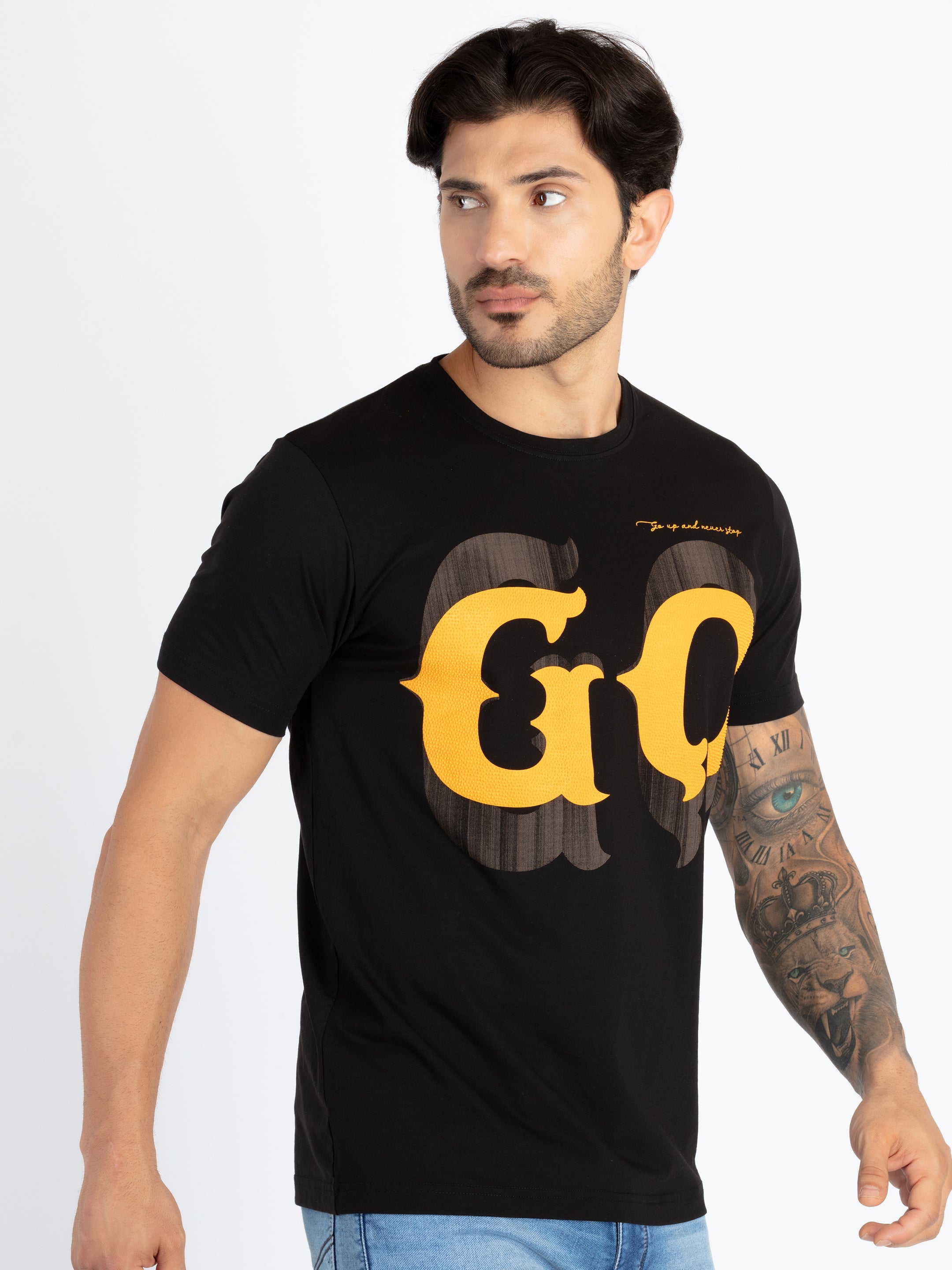 BLACK Printed T-Shirt Has Round Neck, Half Sleeves