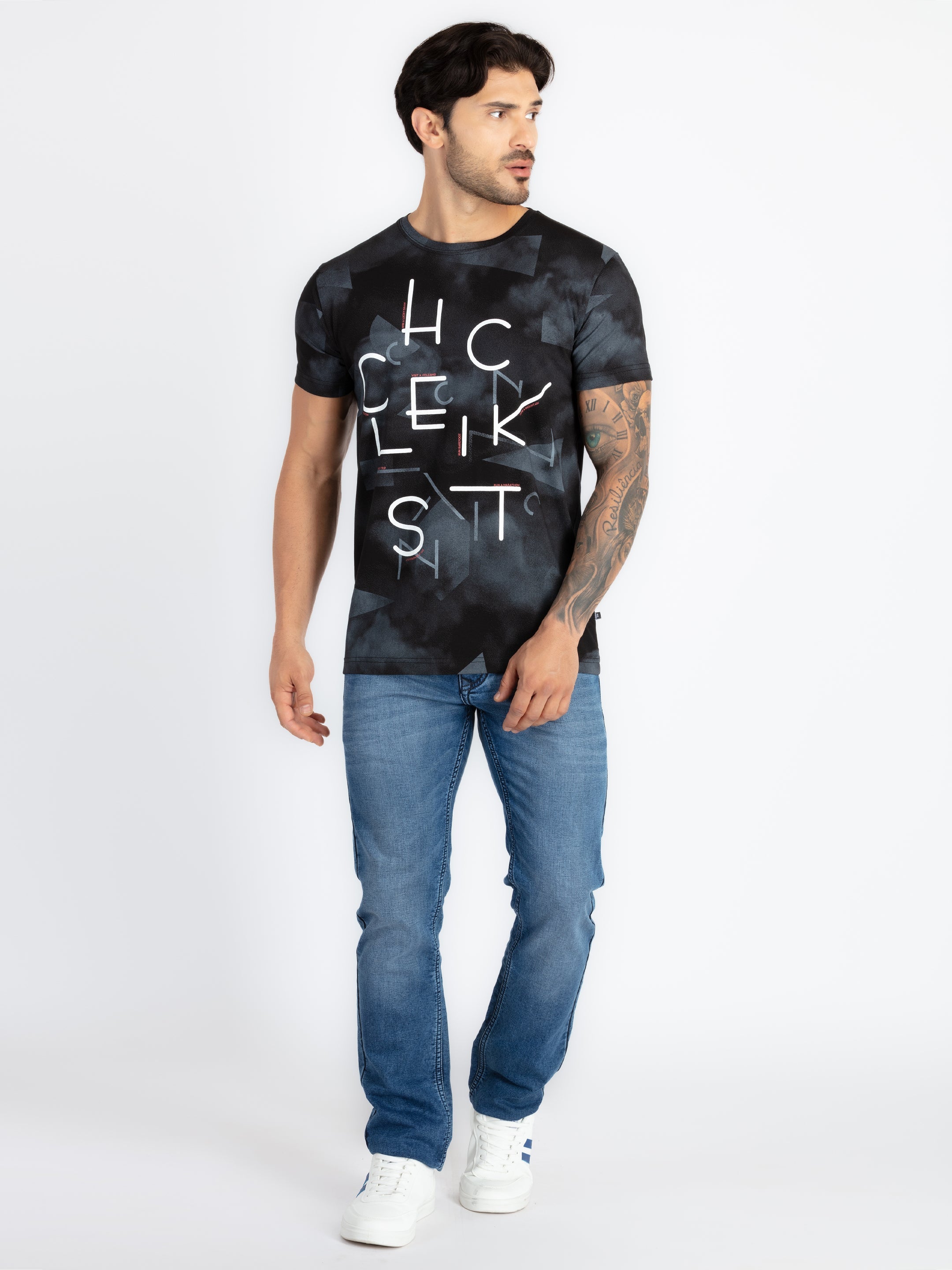 BLACK Printed T-Shirt Has Round Neck, Half Sleeves