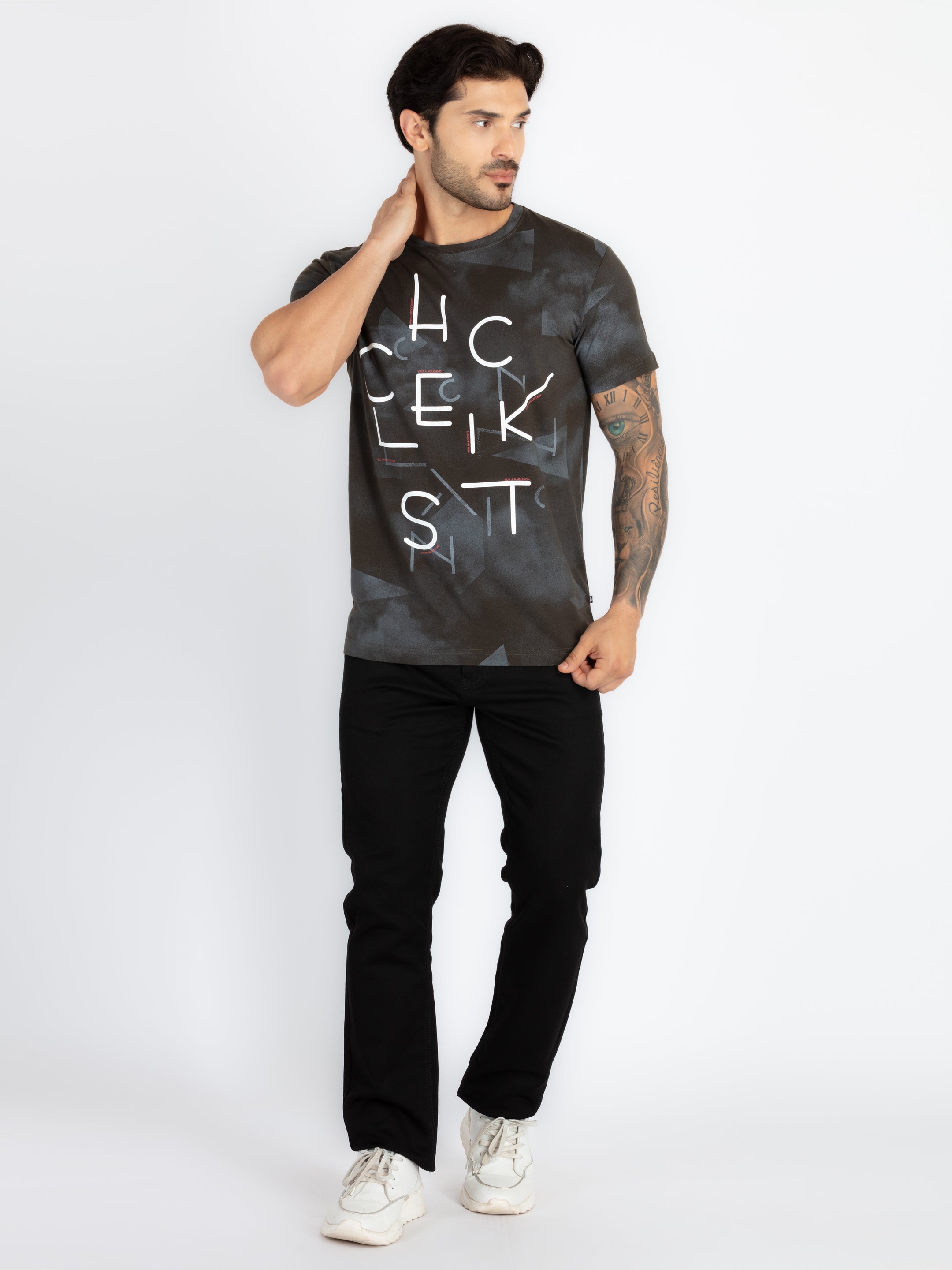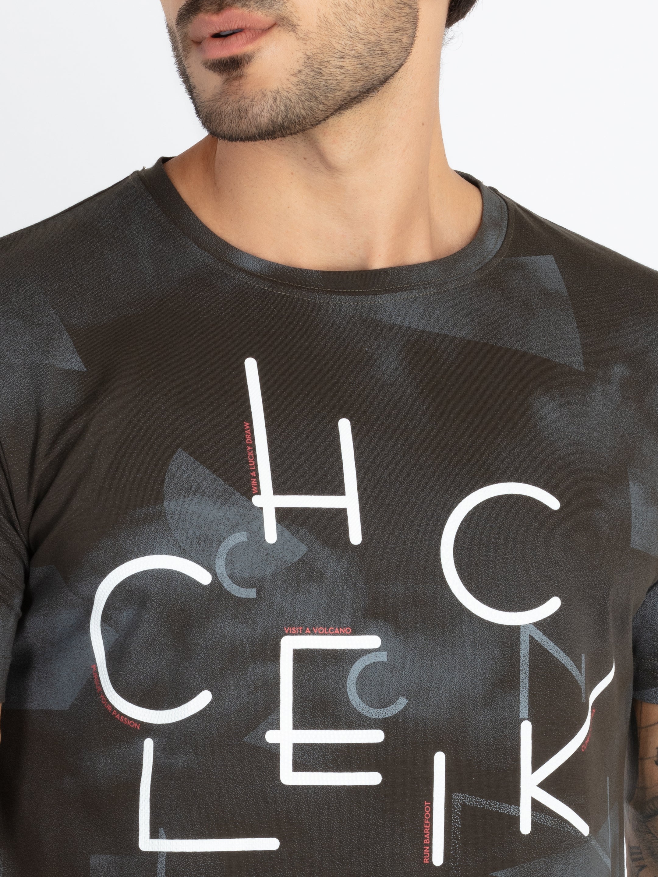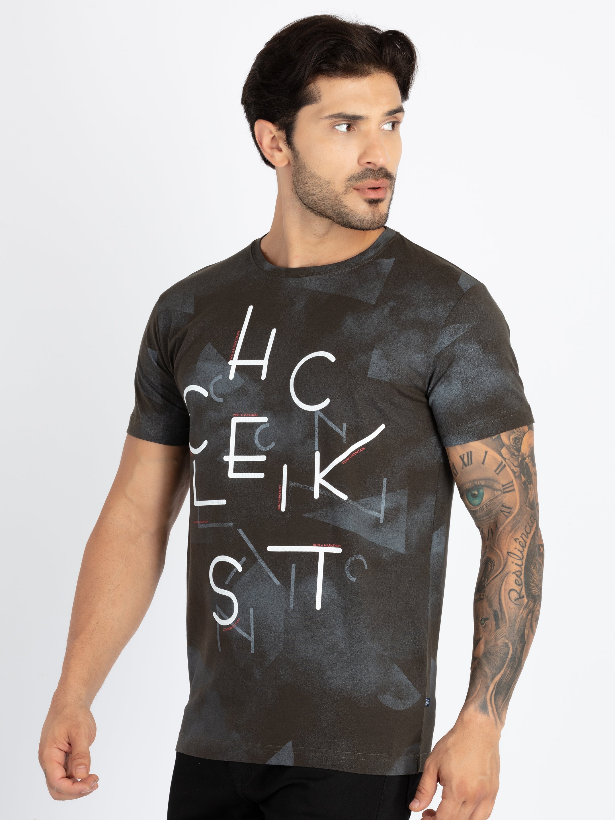 OLIVE Printed T-Shirt Has Round Neck, Half Sleeves