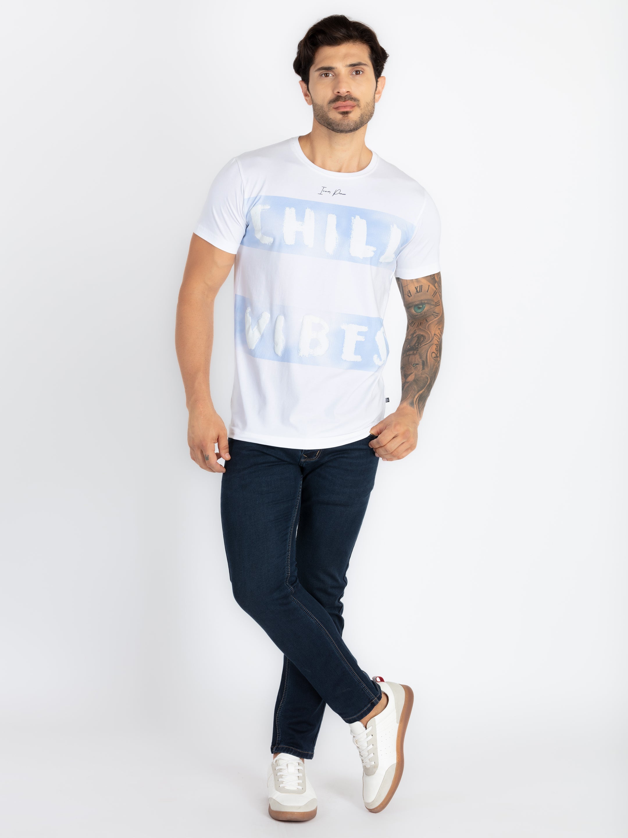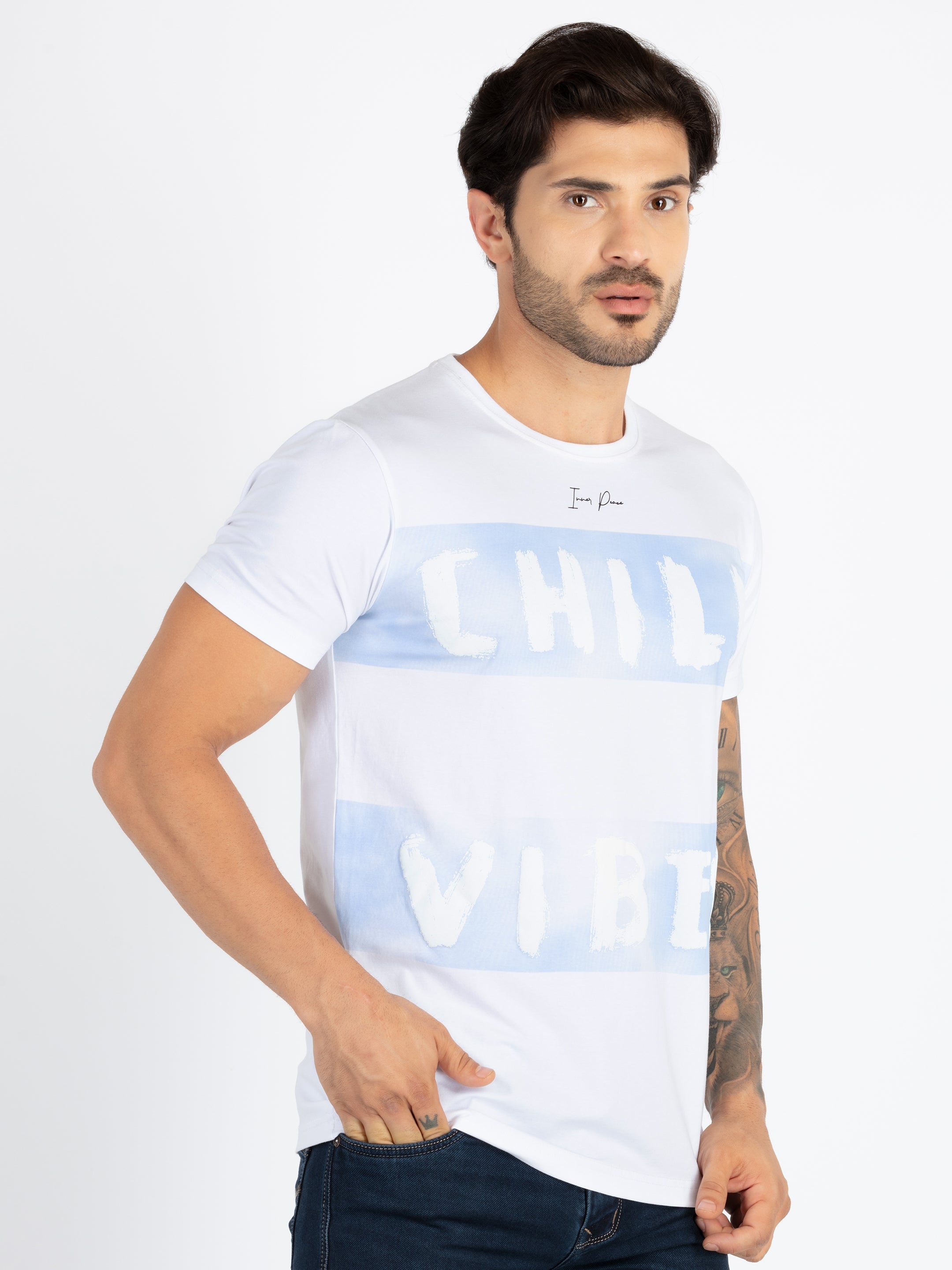 WHITE Printed T-Shirt Has Round Neck, Half Sleeves