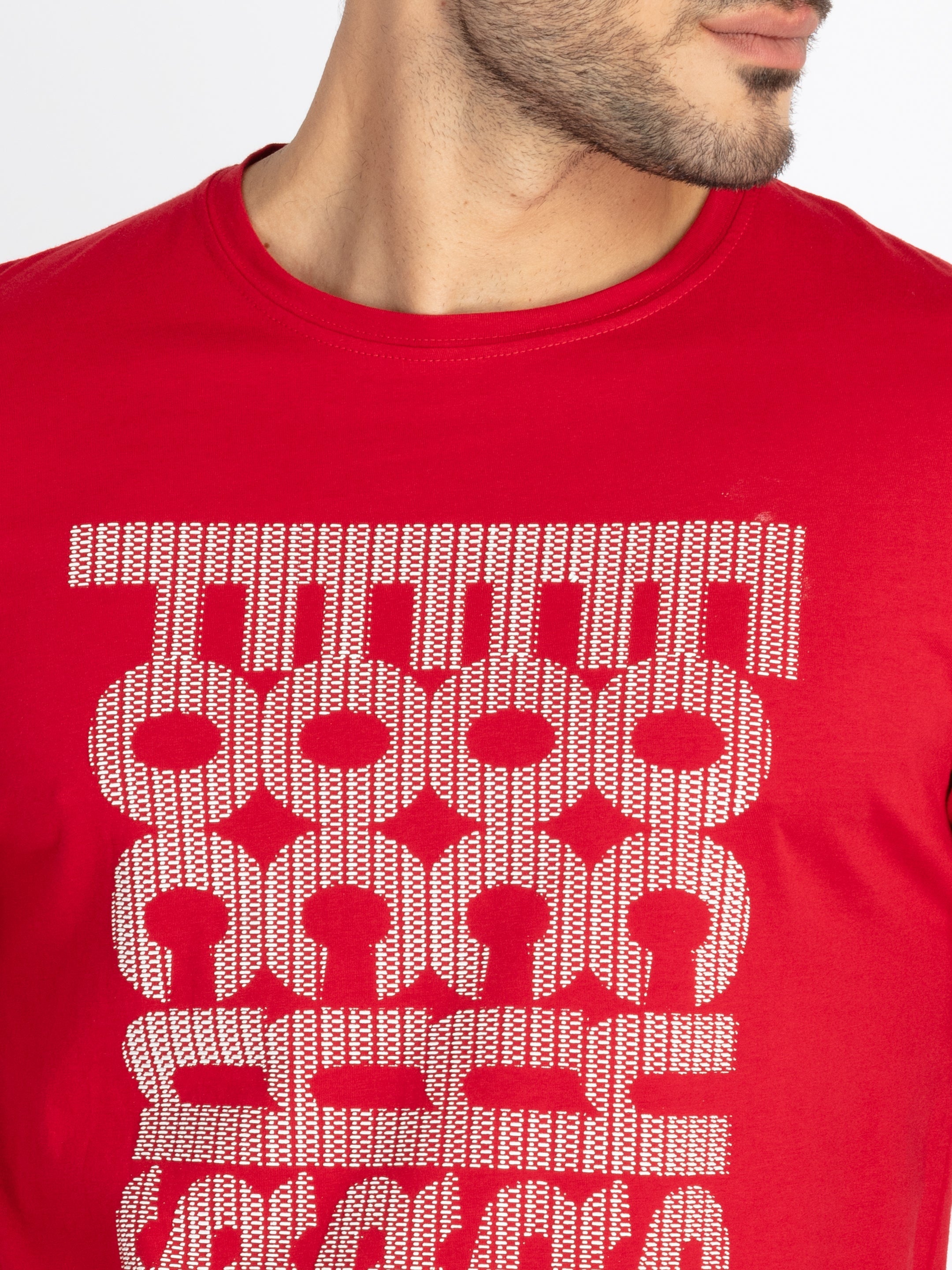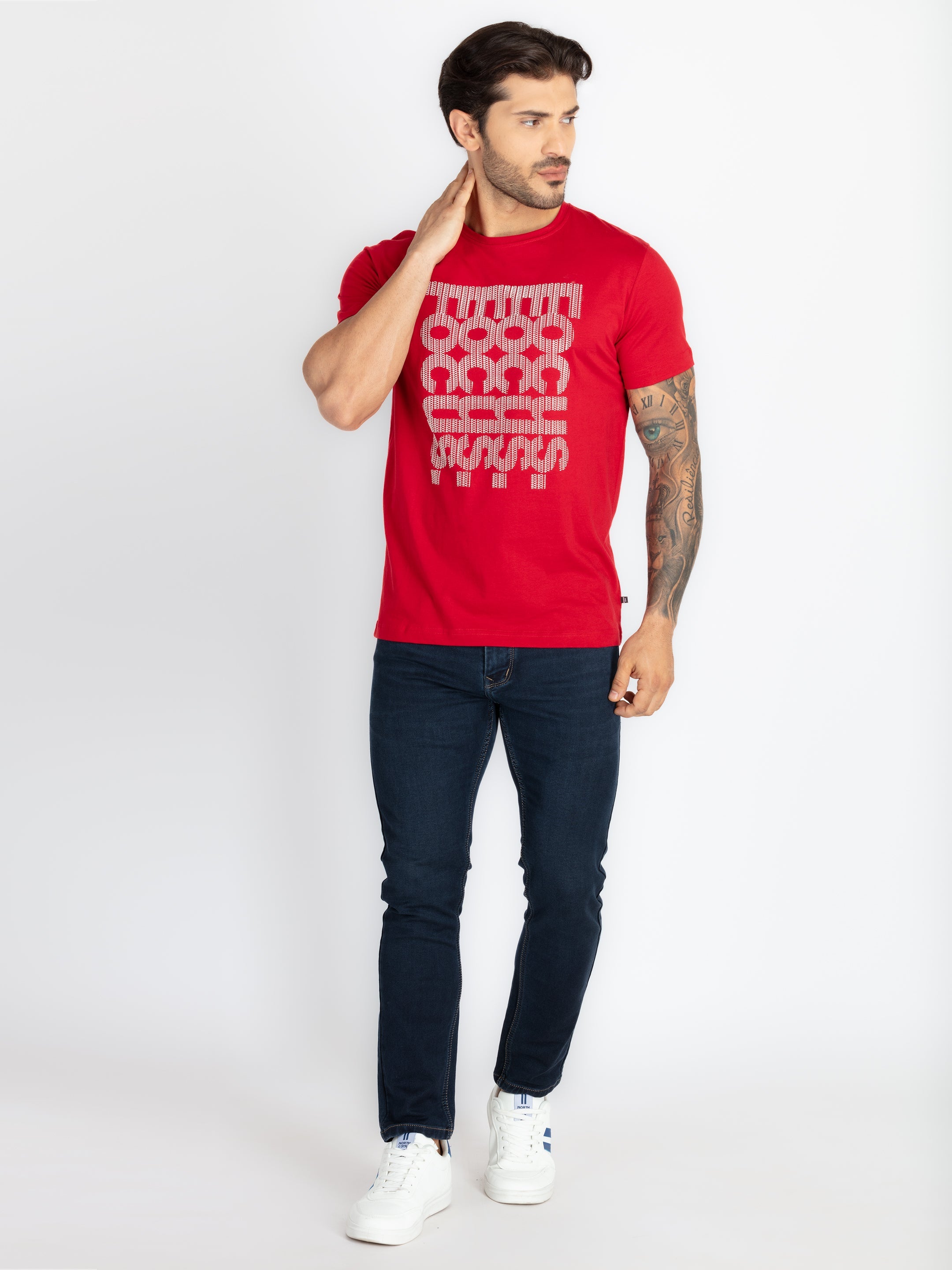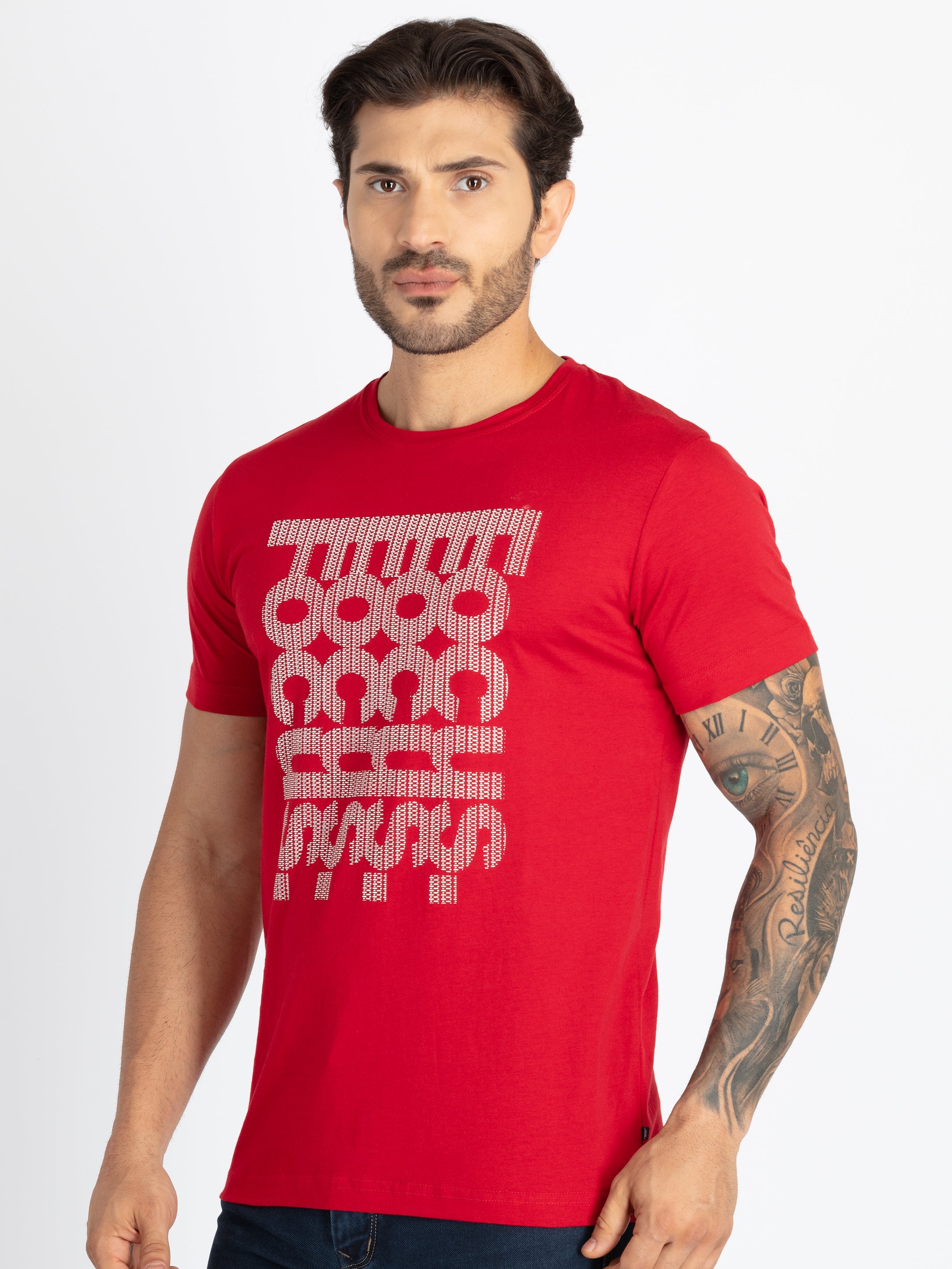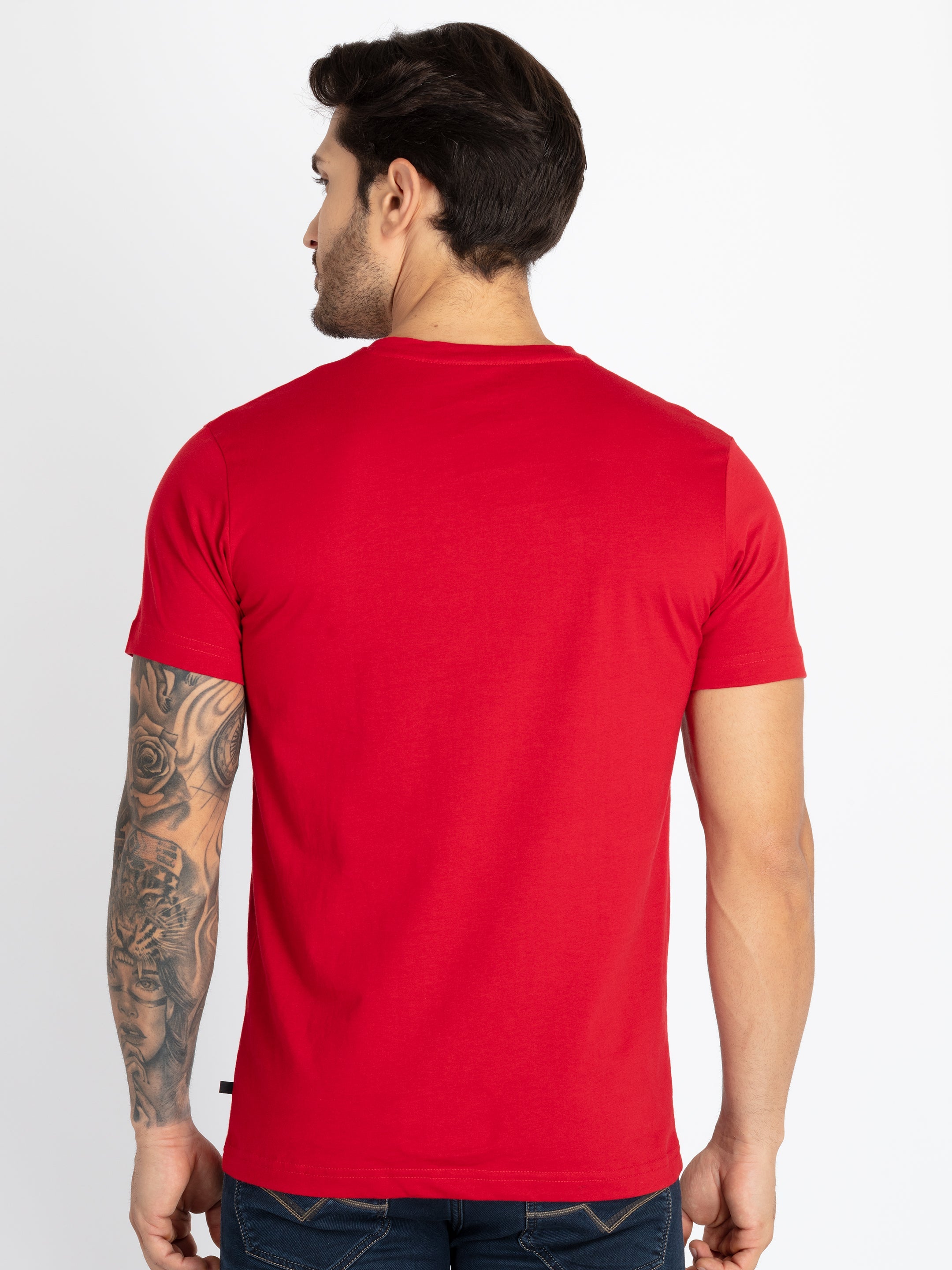 RED Printed T-Shirt Has Round Neck, Half Sleeves