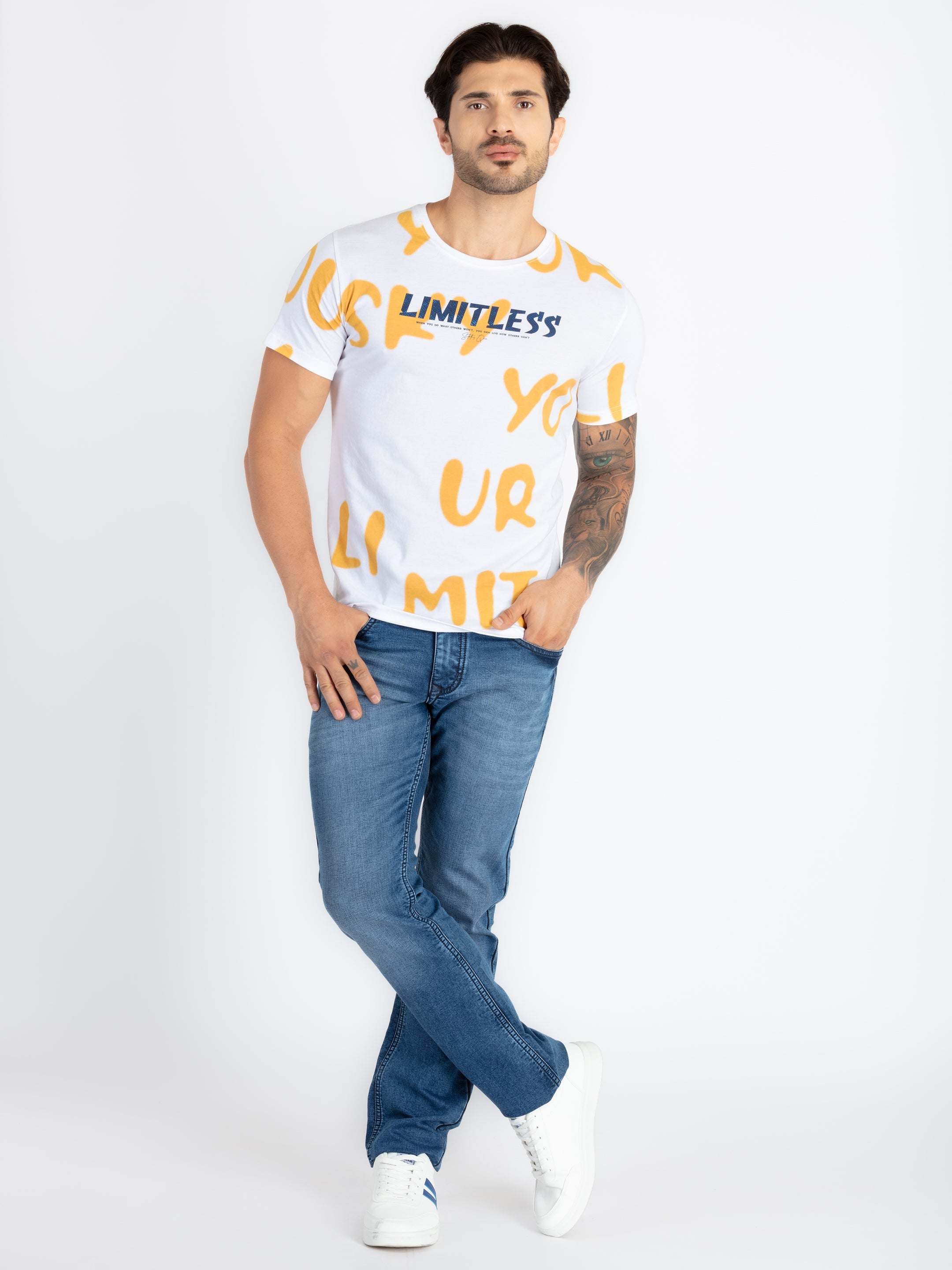 WHITE Printed T-Shirt Has Round Neck, Half Sleeves