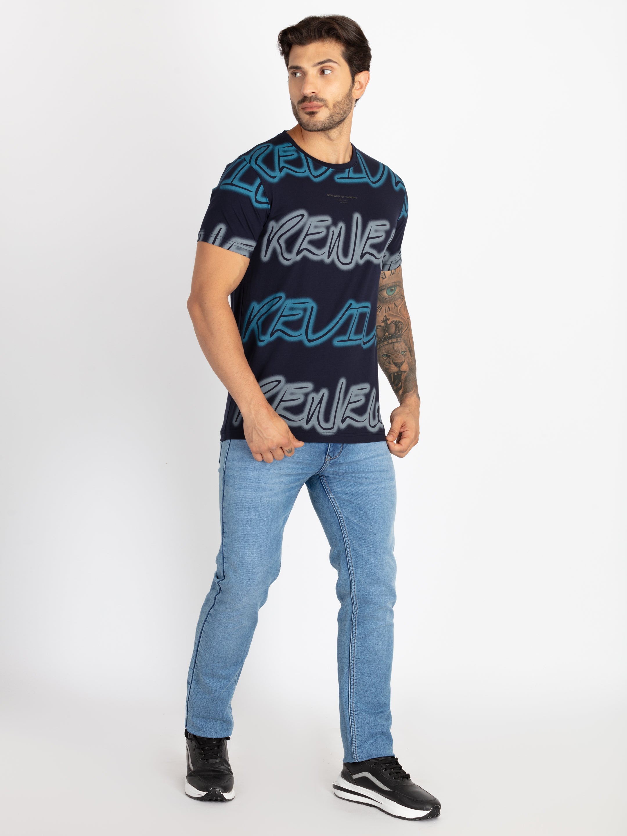 NAVY Printed T-Shirt Has Round Neck, Half Sleeves