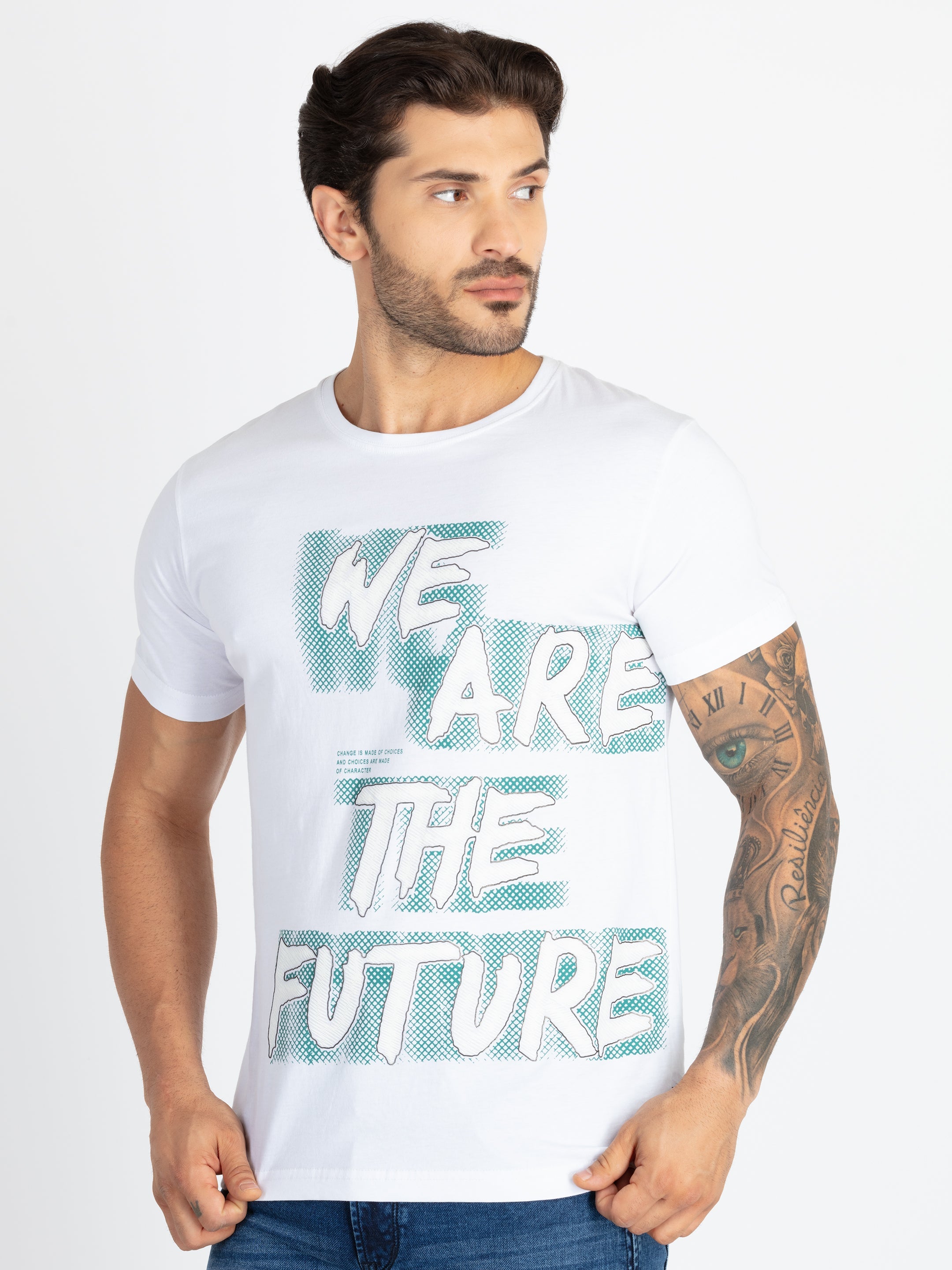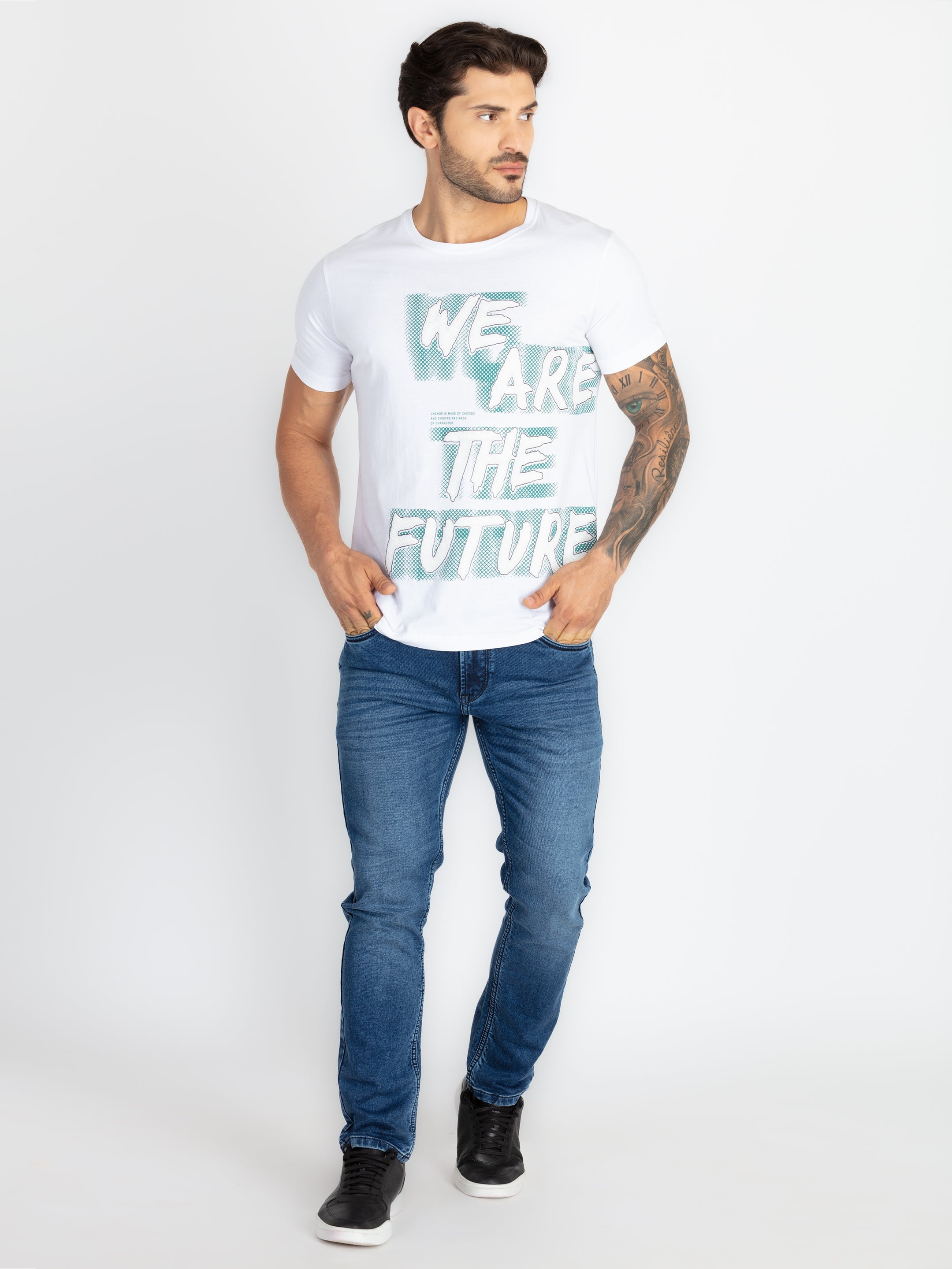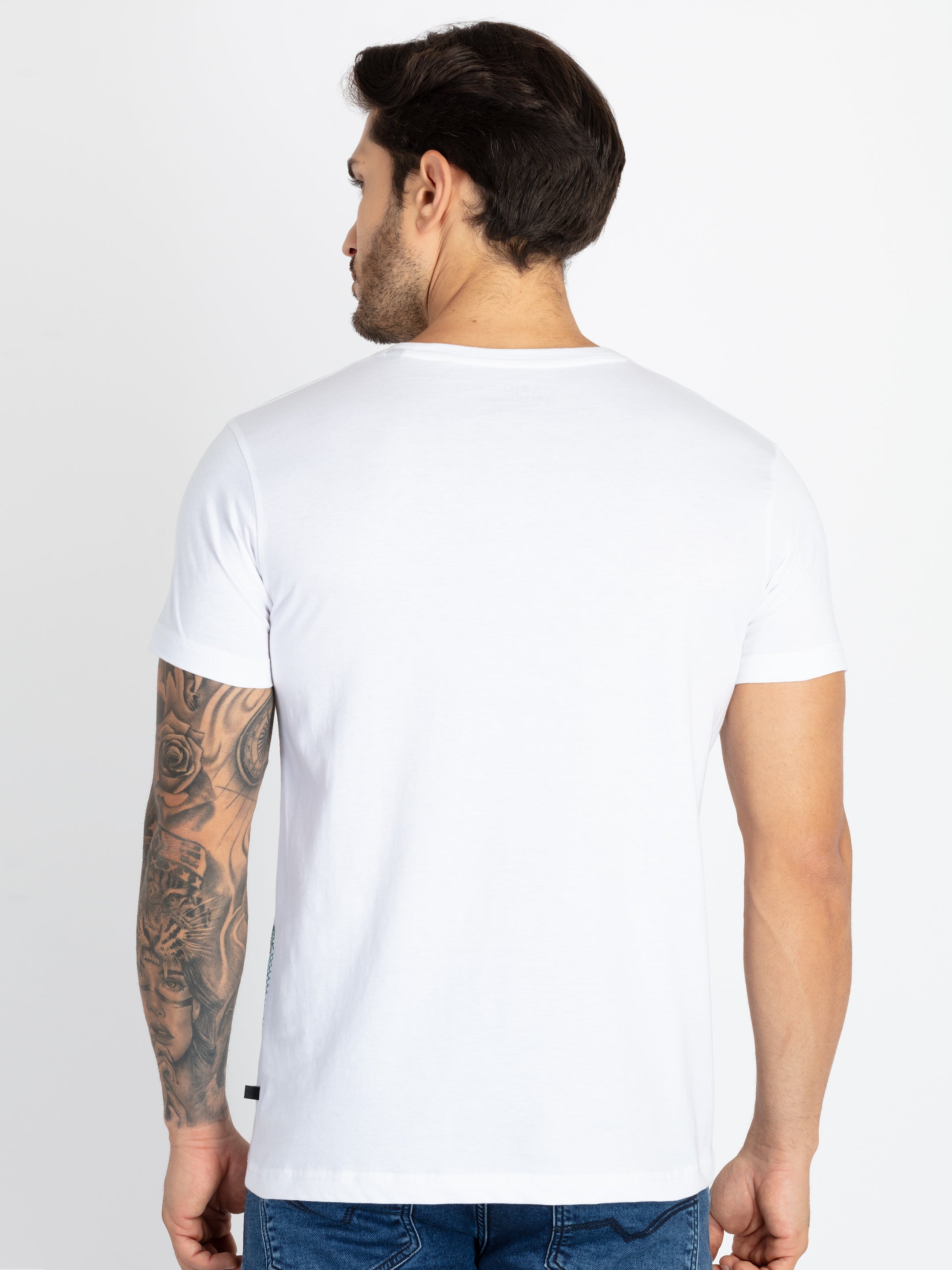 WHITE Printed T-Shirt Has Round Neck, Half Sleeves