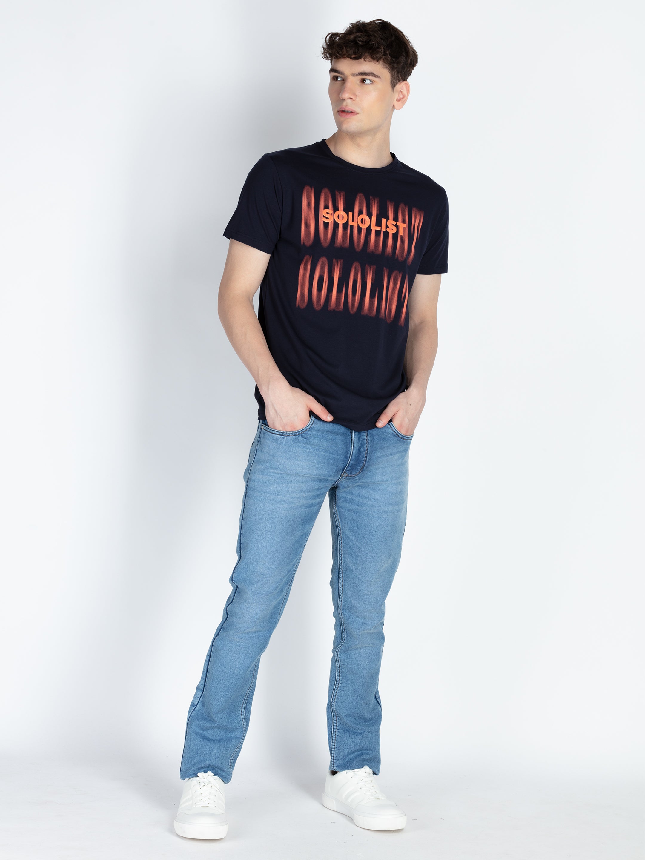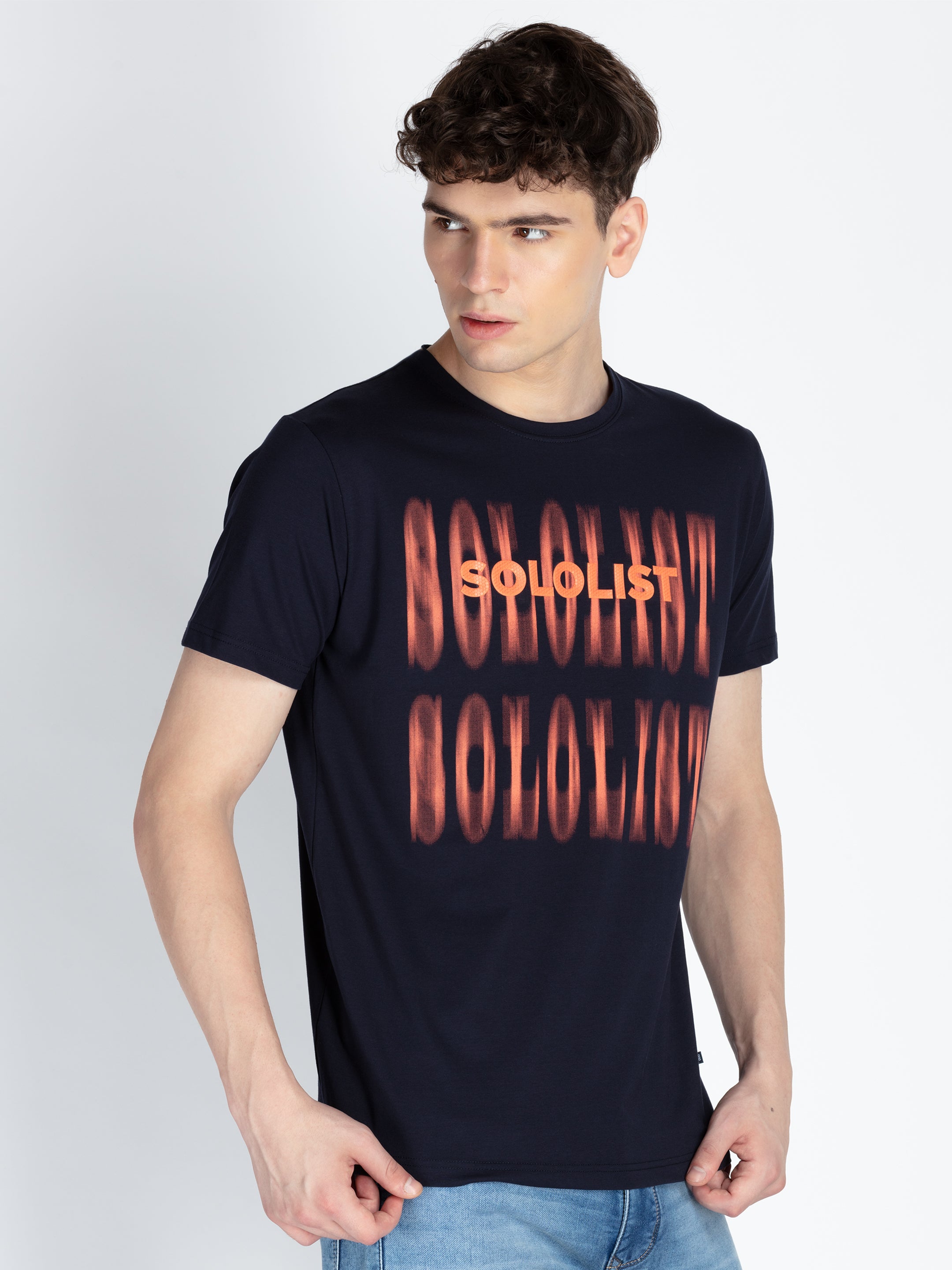 NAVY Printed T-Shirt Has Round Neck With Half Sleeves