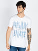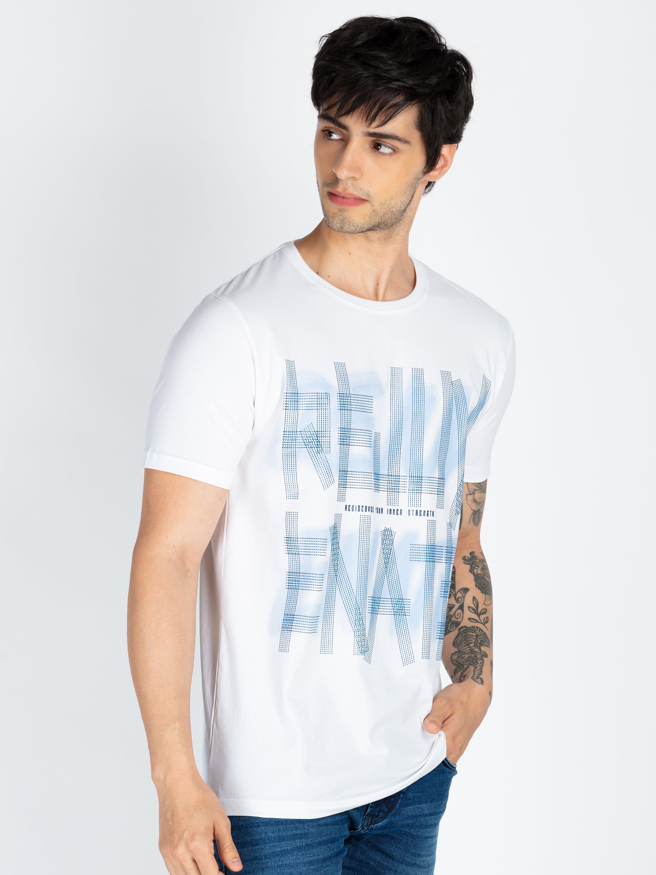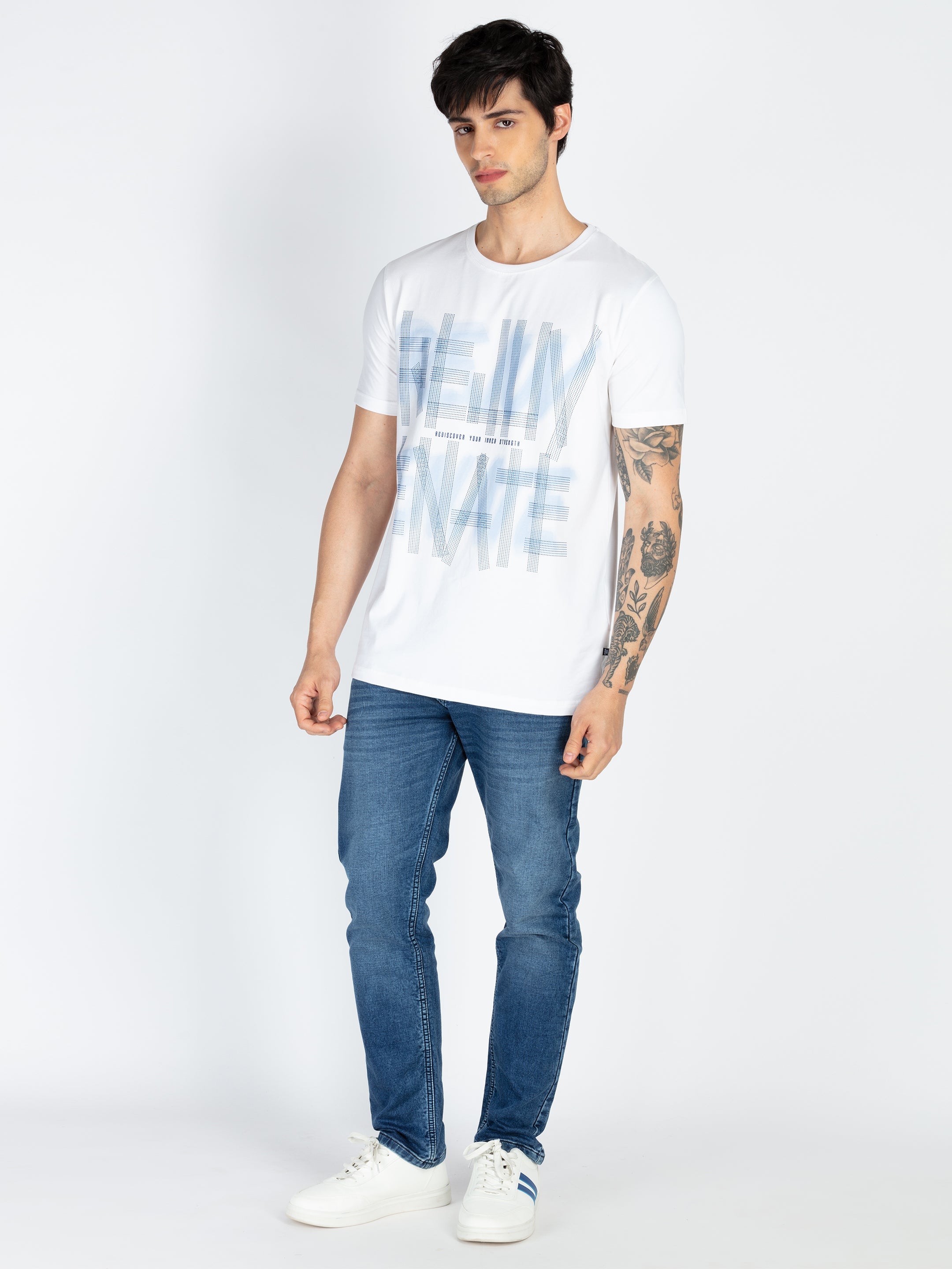 White Mens Printed Round Neck T-Shirt With Half Sleeves