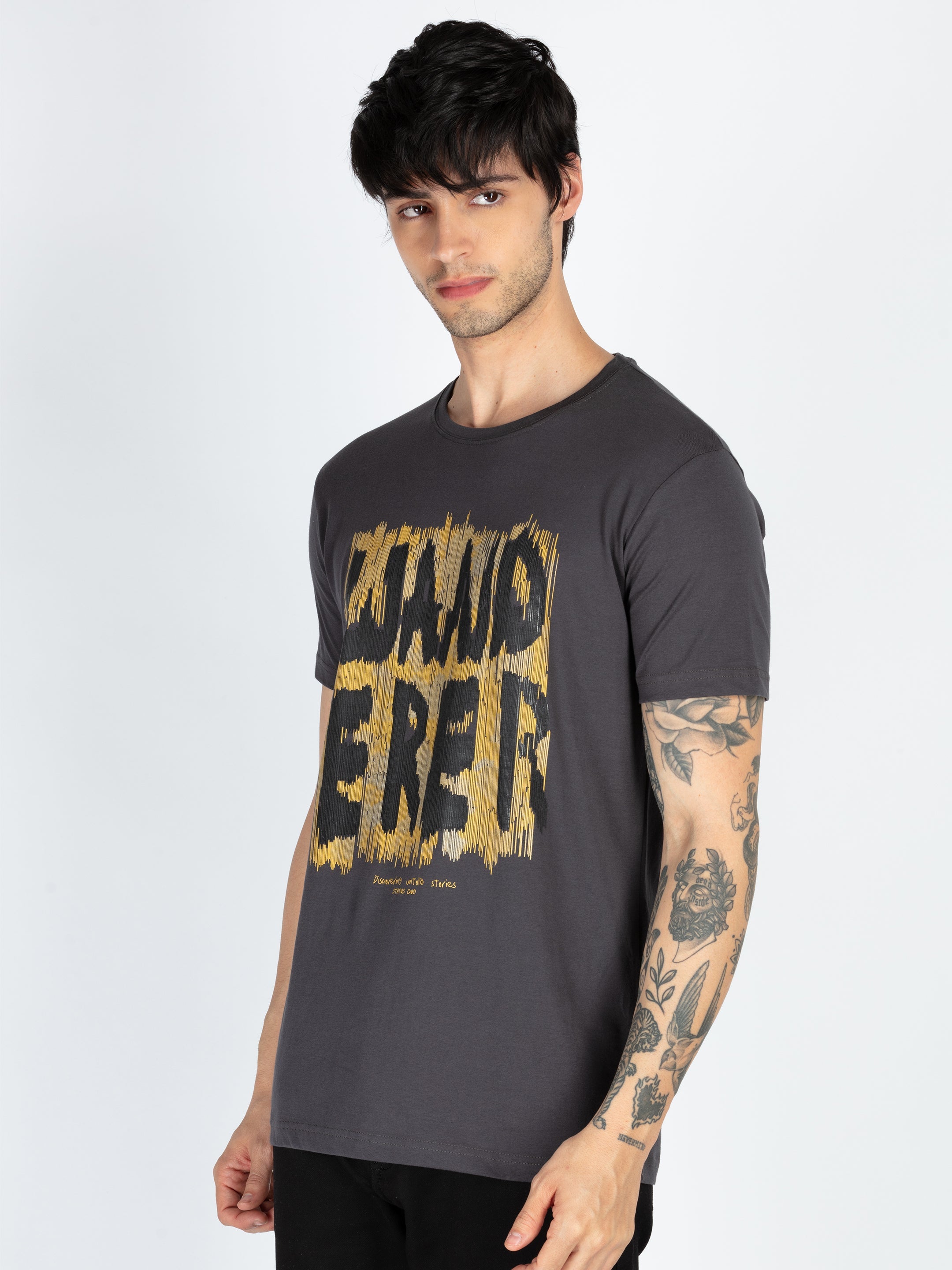 Charcoal Mens Printed Round Neck T-Shirt With Half Sleeves