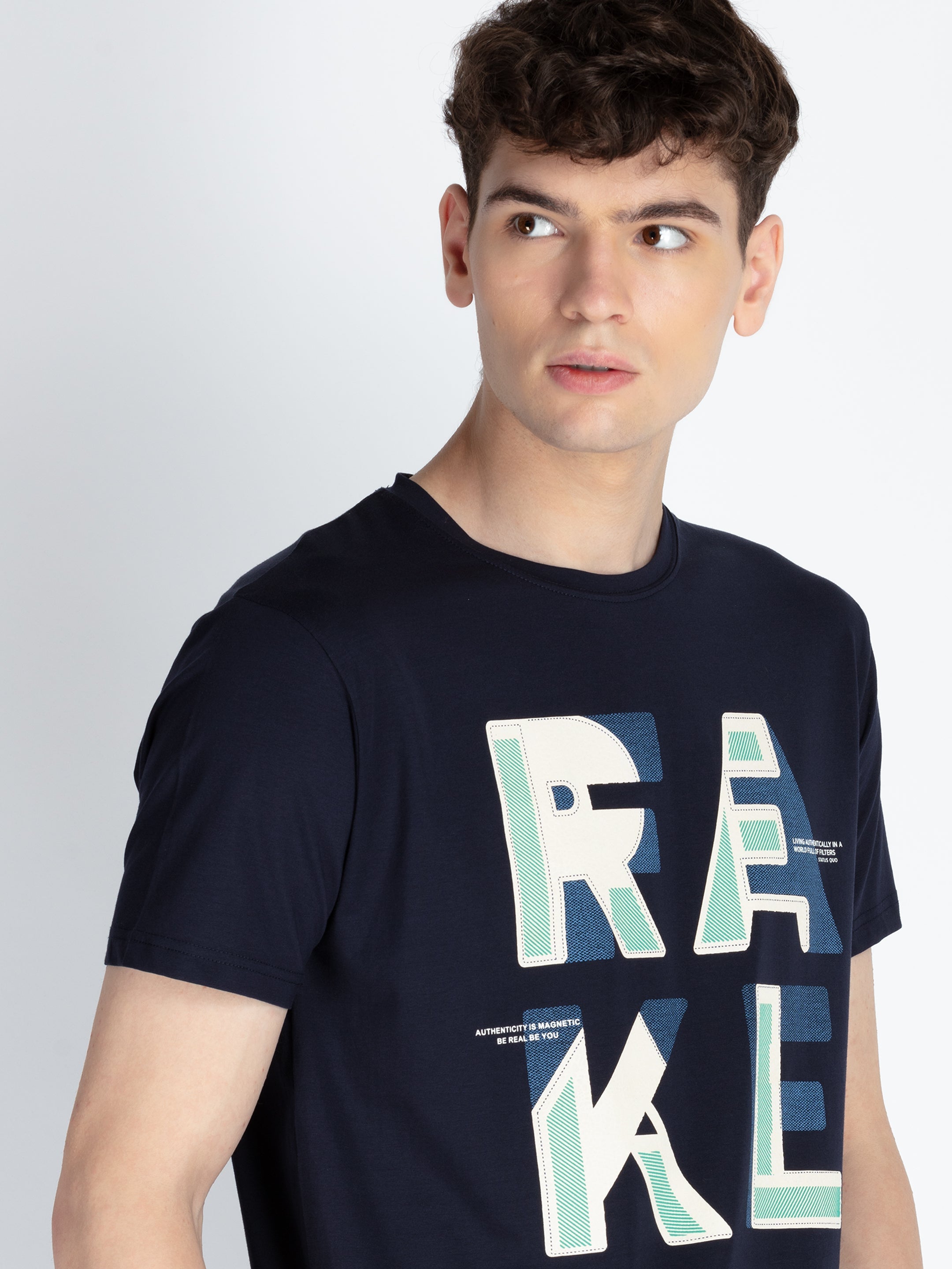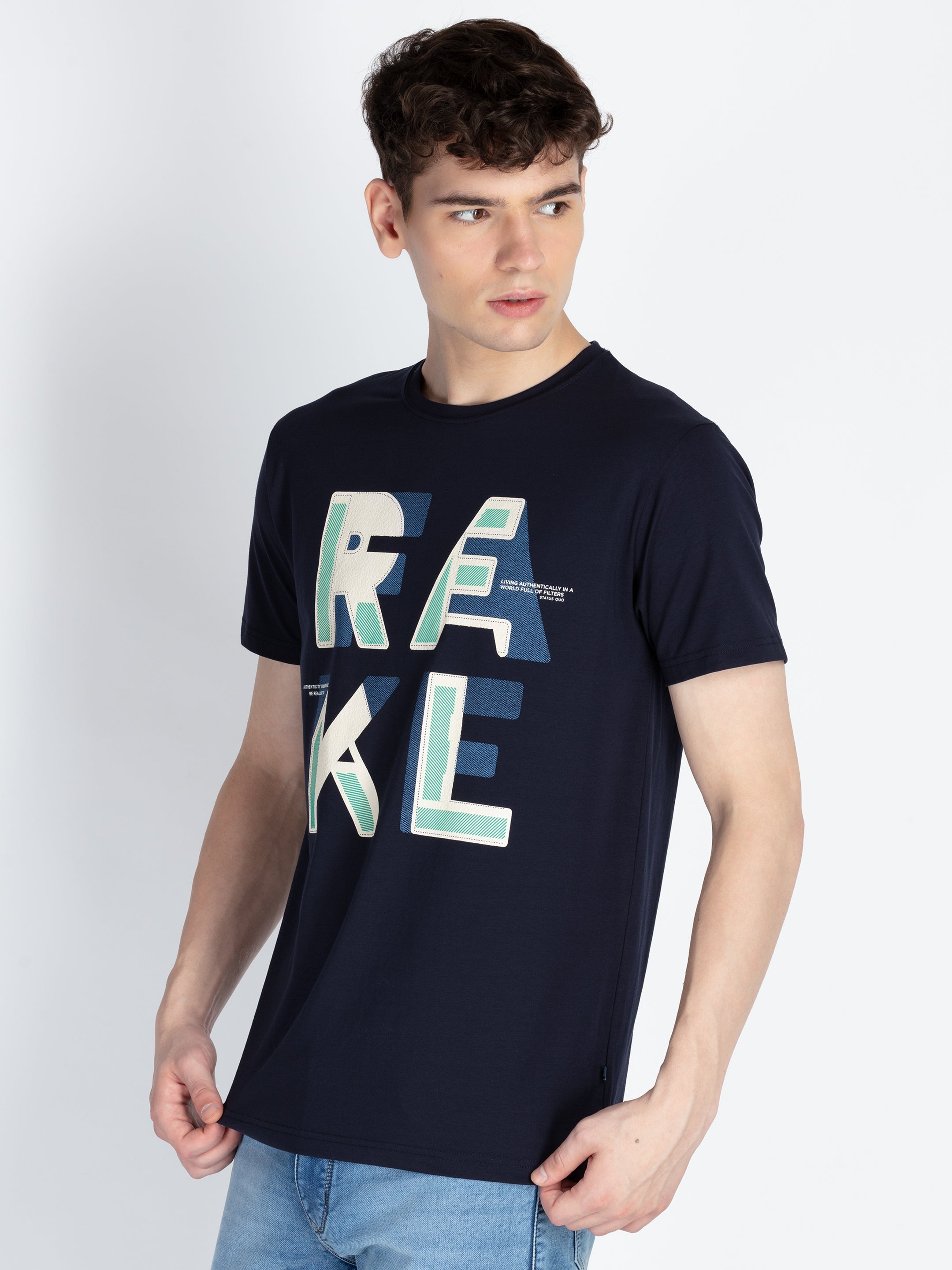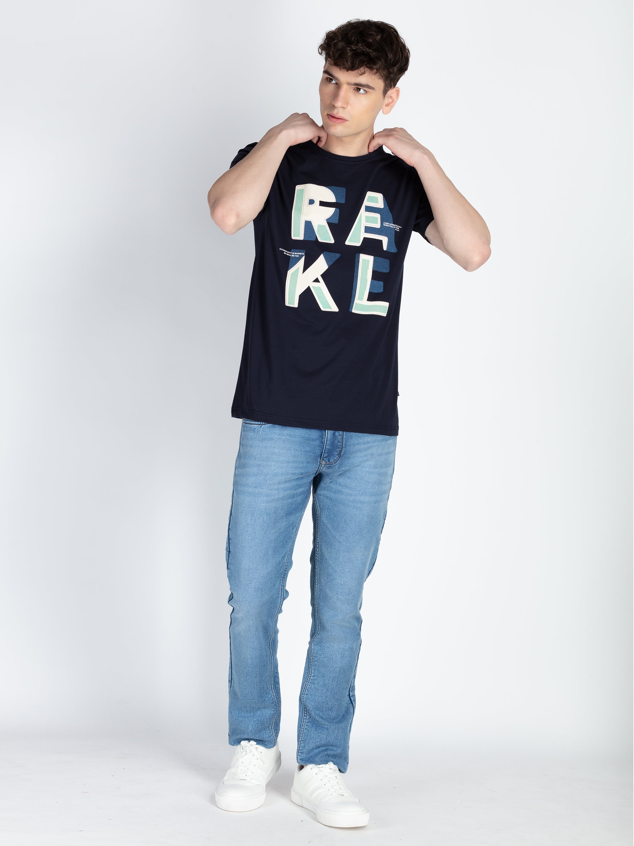 NAVY Printed T-Shirt Has Round Neck With Half Sleeves