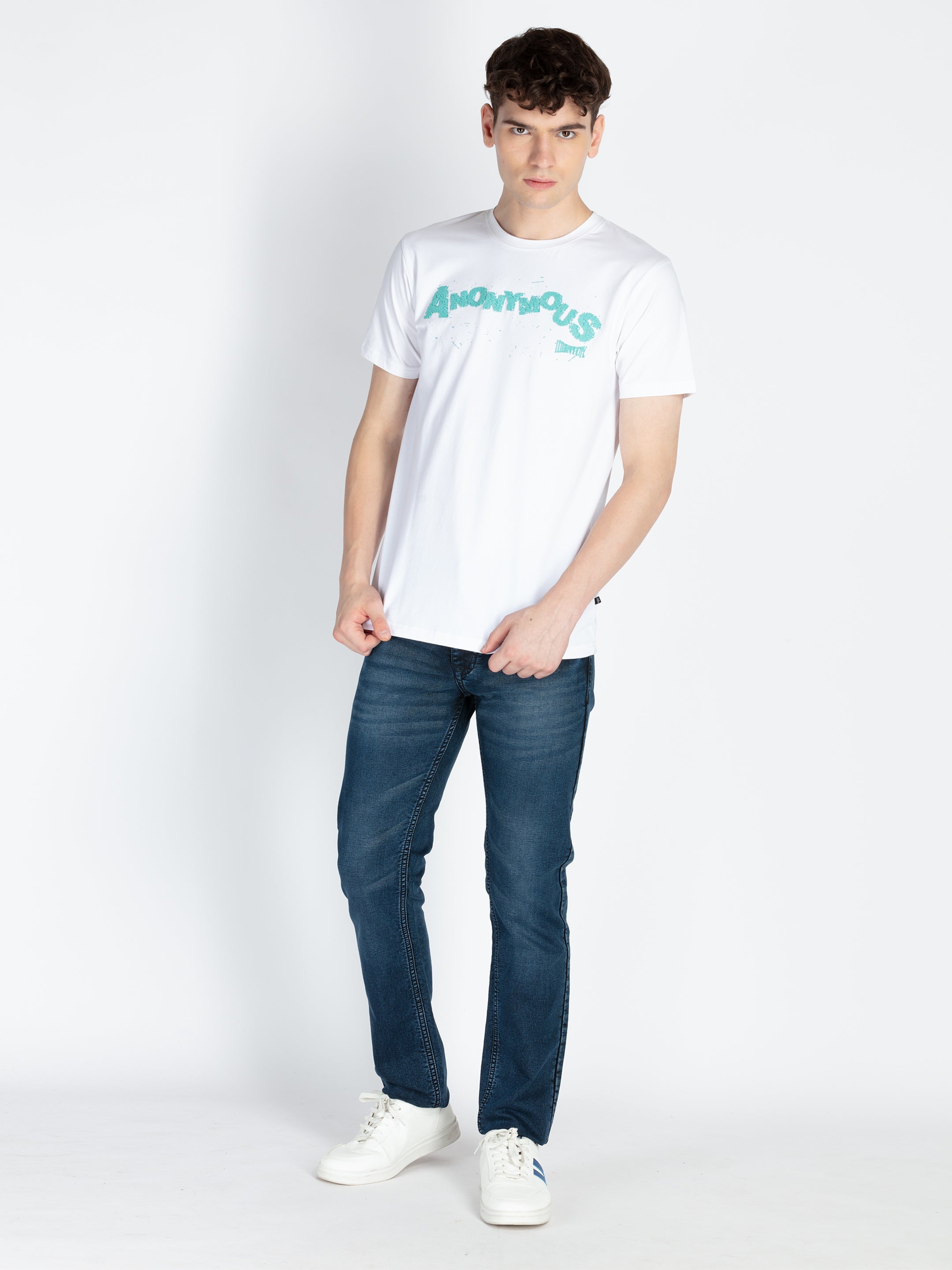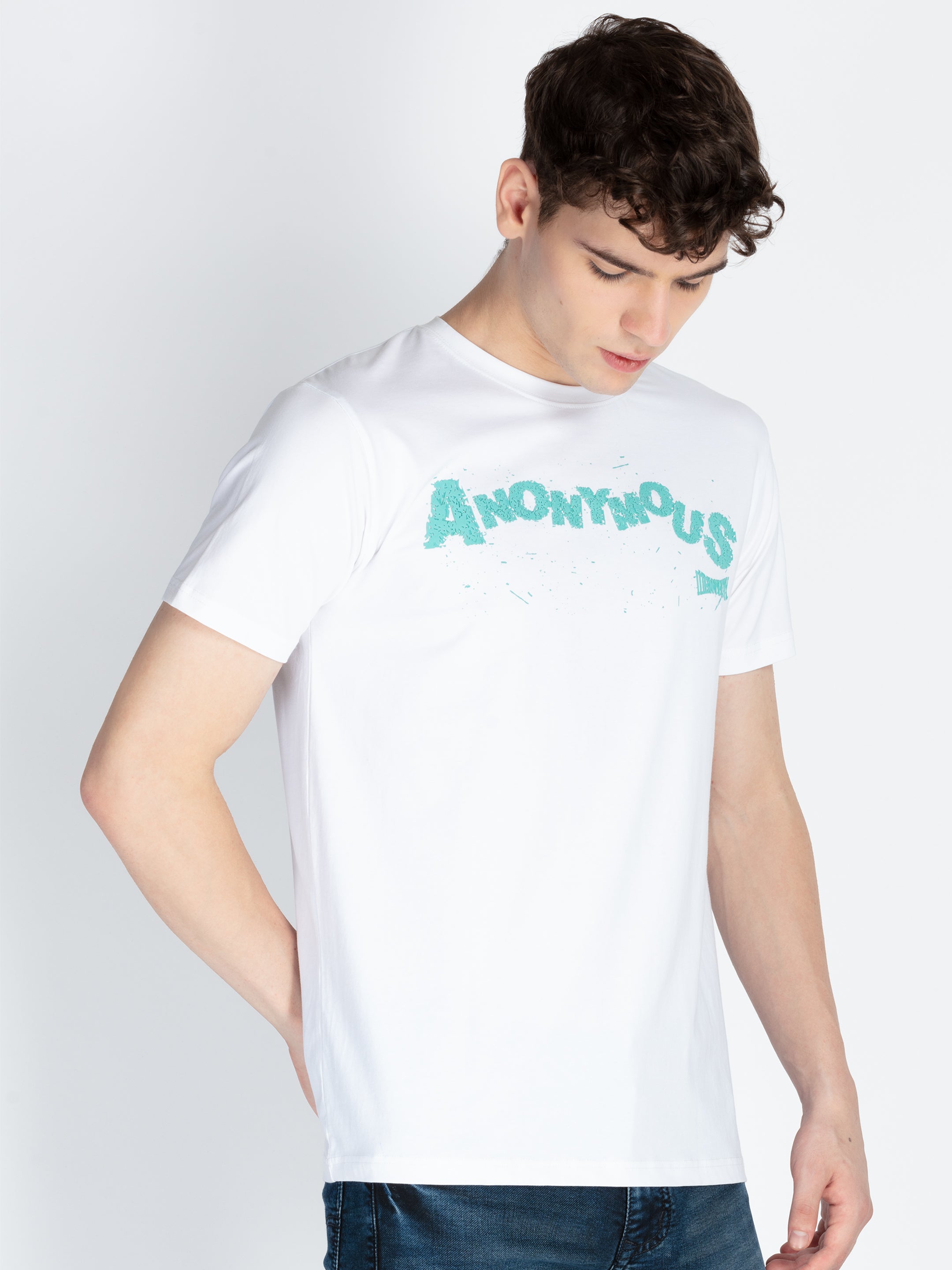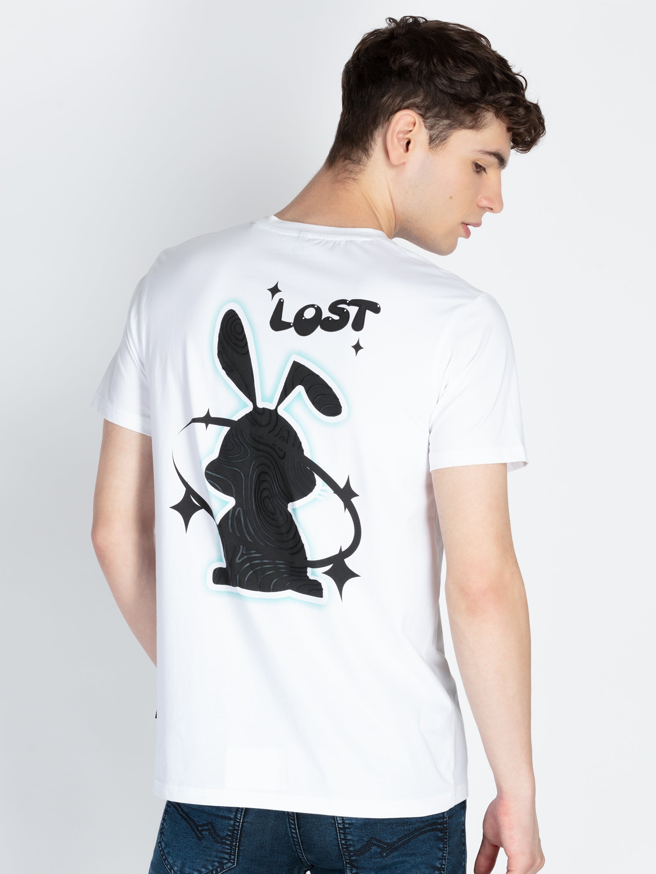 WHITE Printed T-Shirt Has Round Neck With Half Sleeves