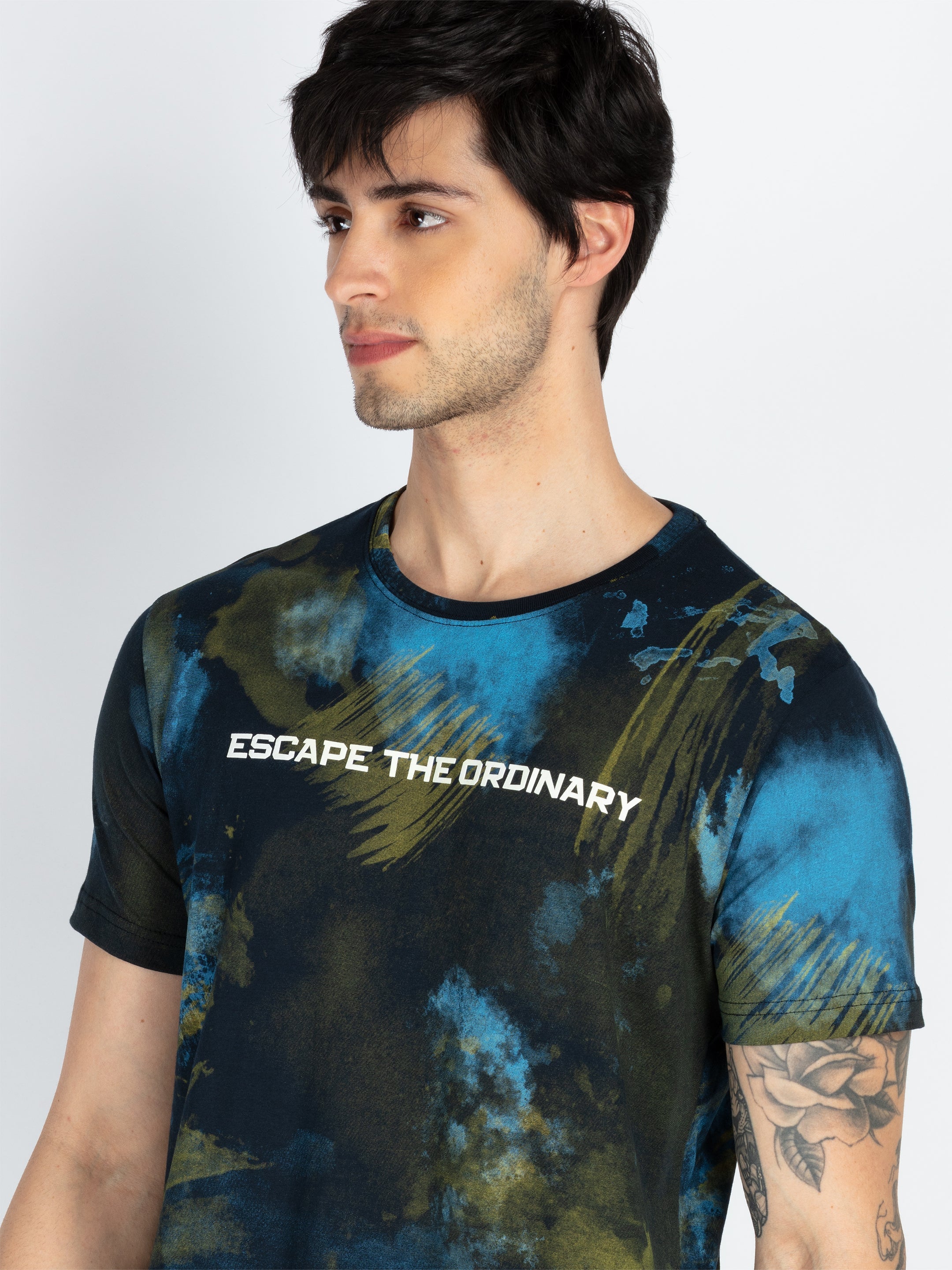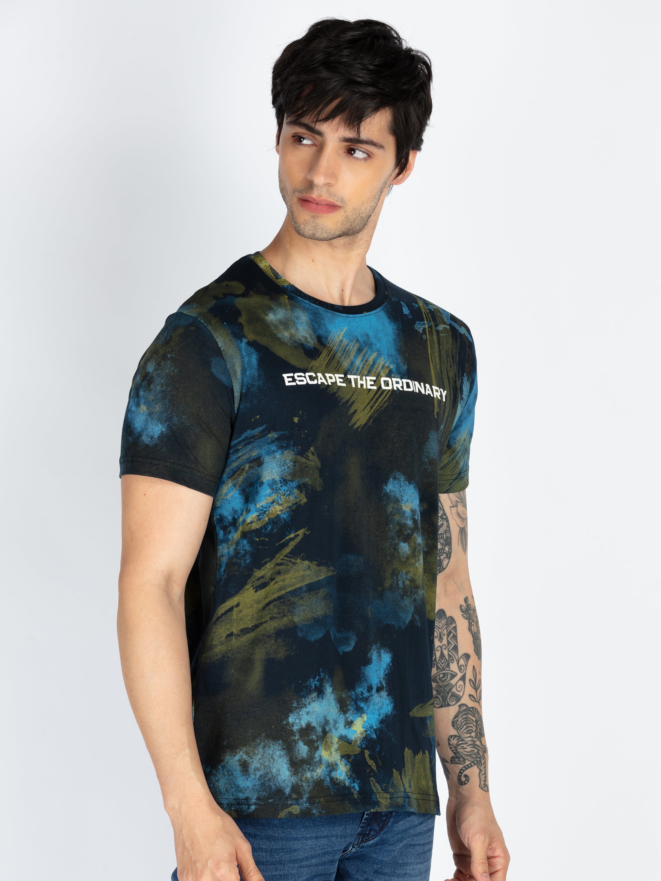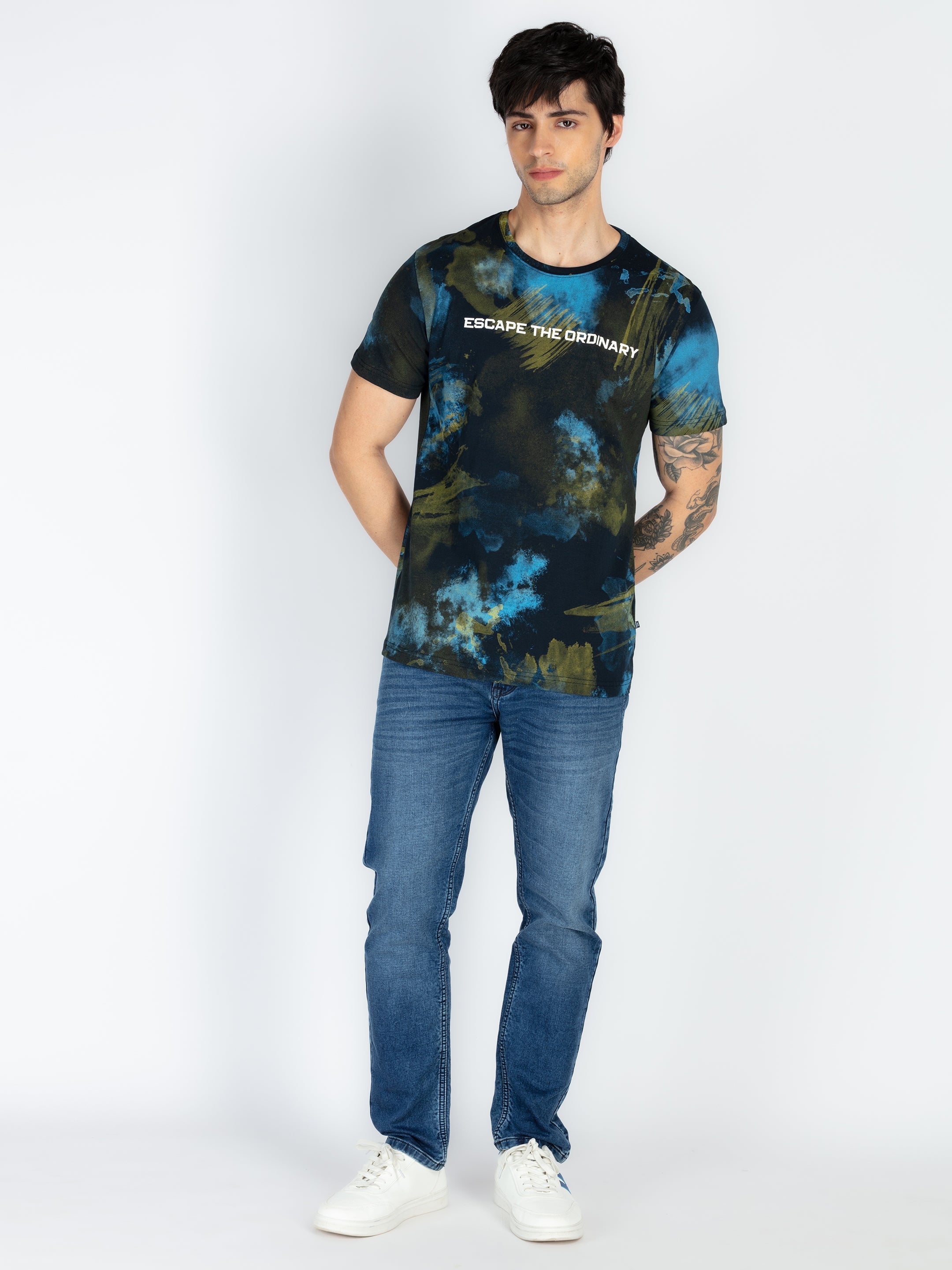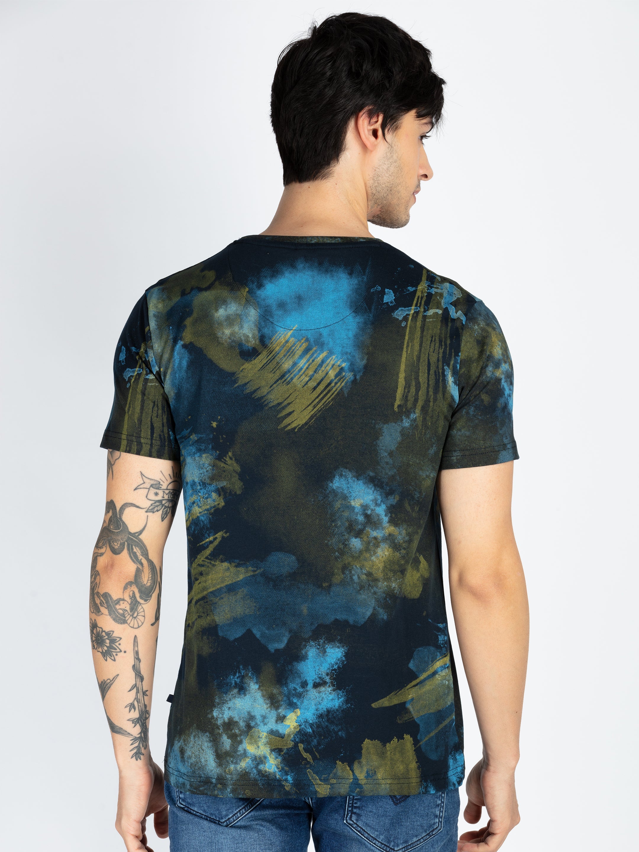 Navy Mens All Over Printed Round Neck T-Shirt With Half Sleeves
