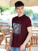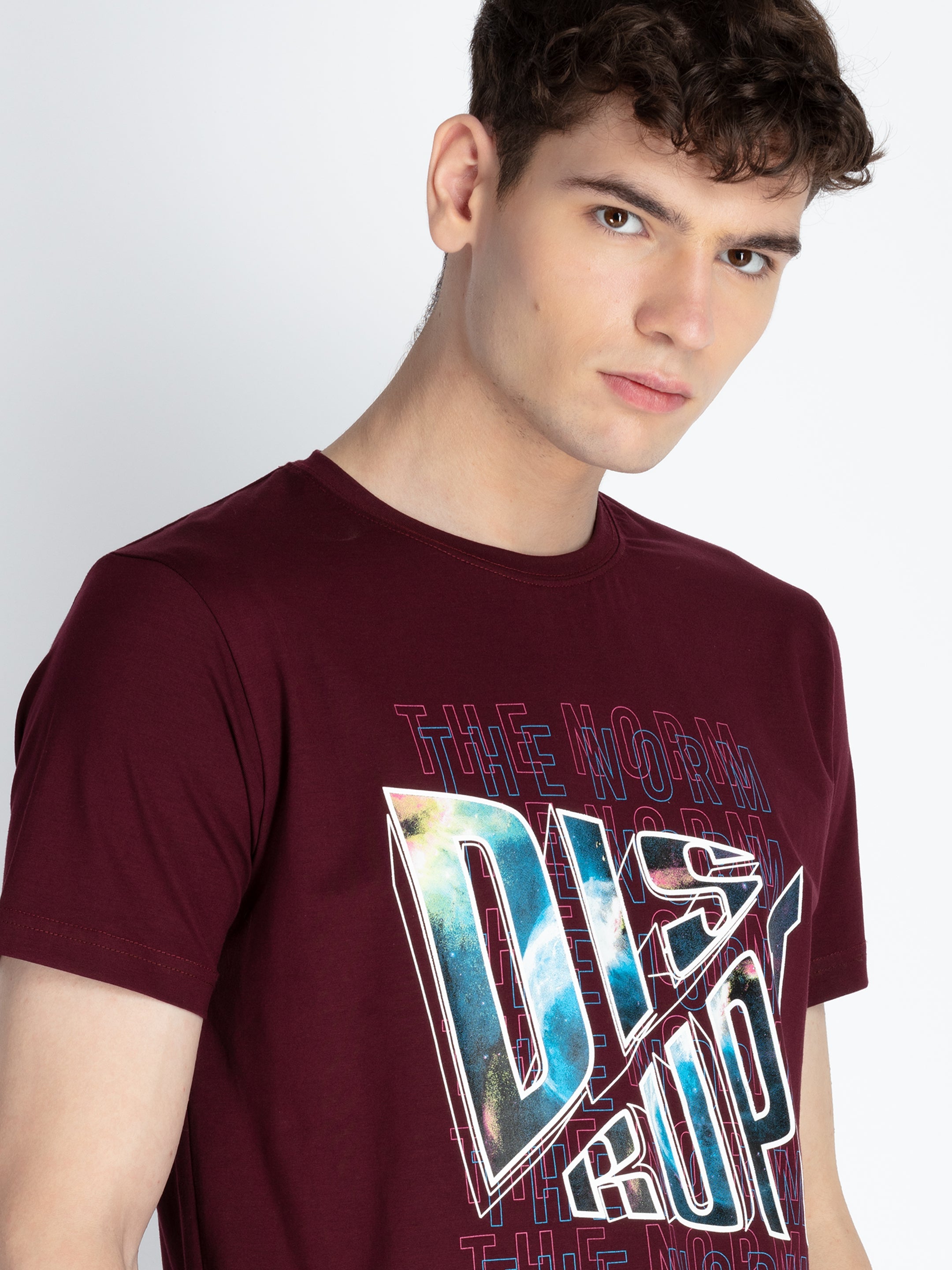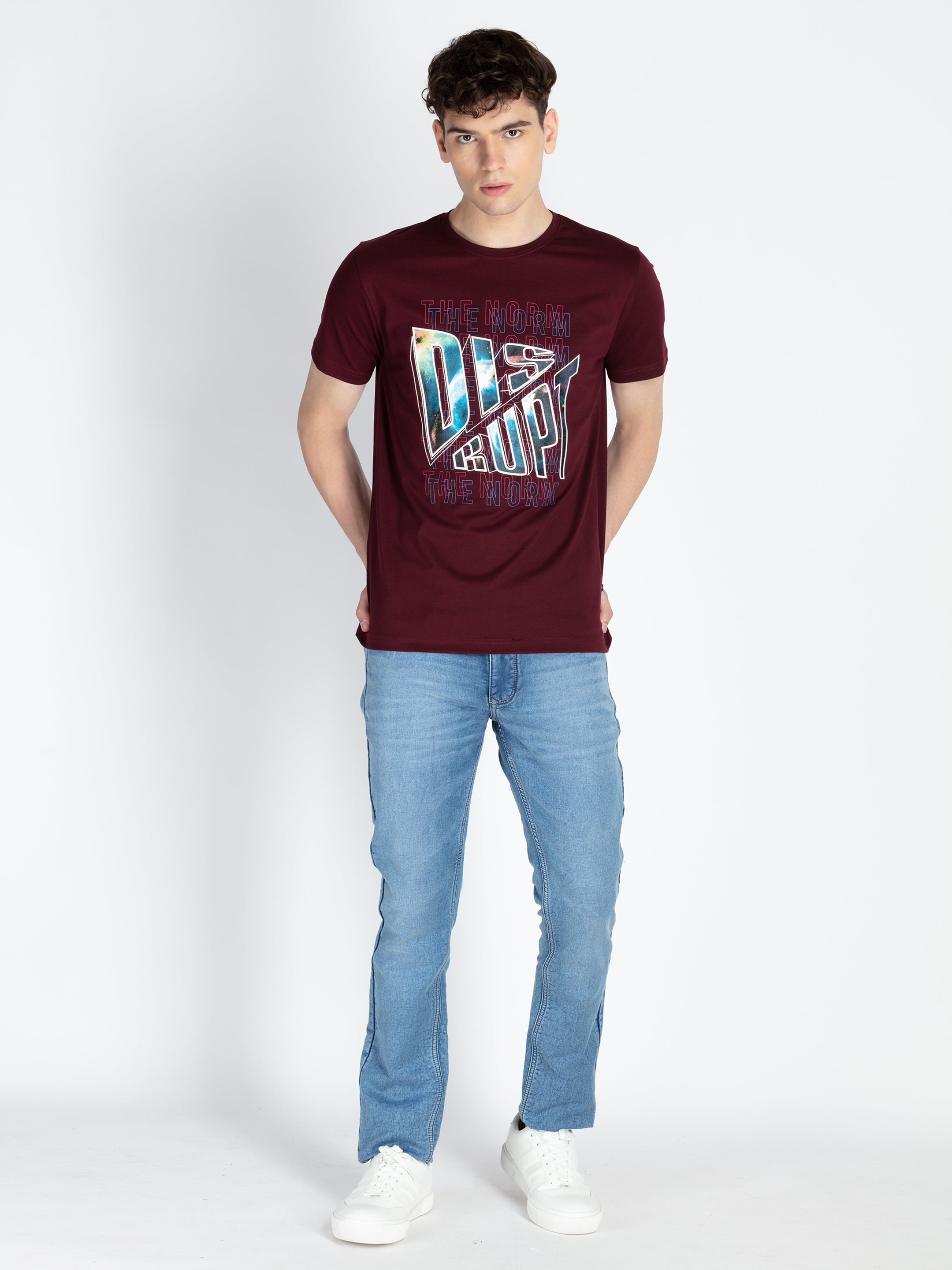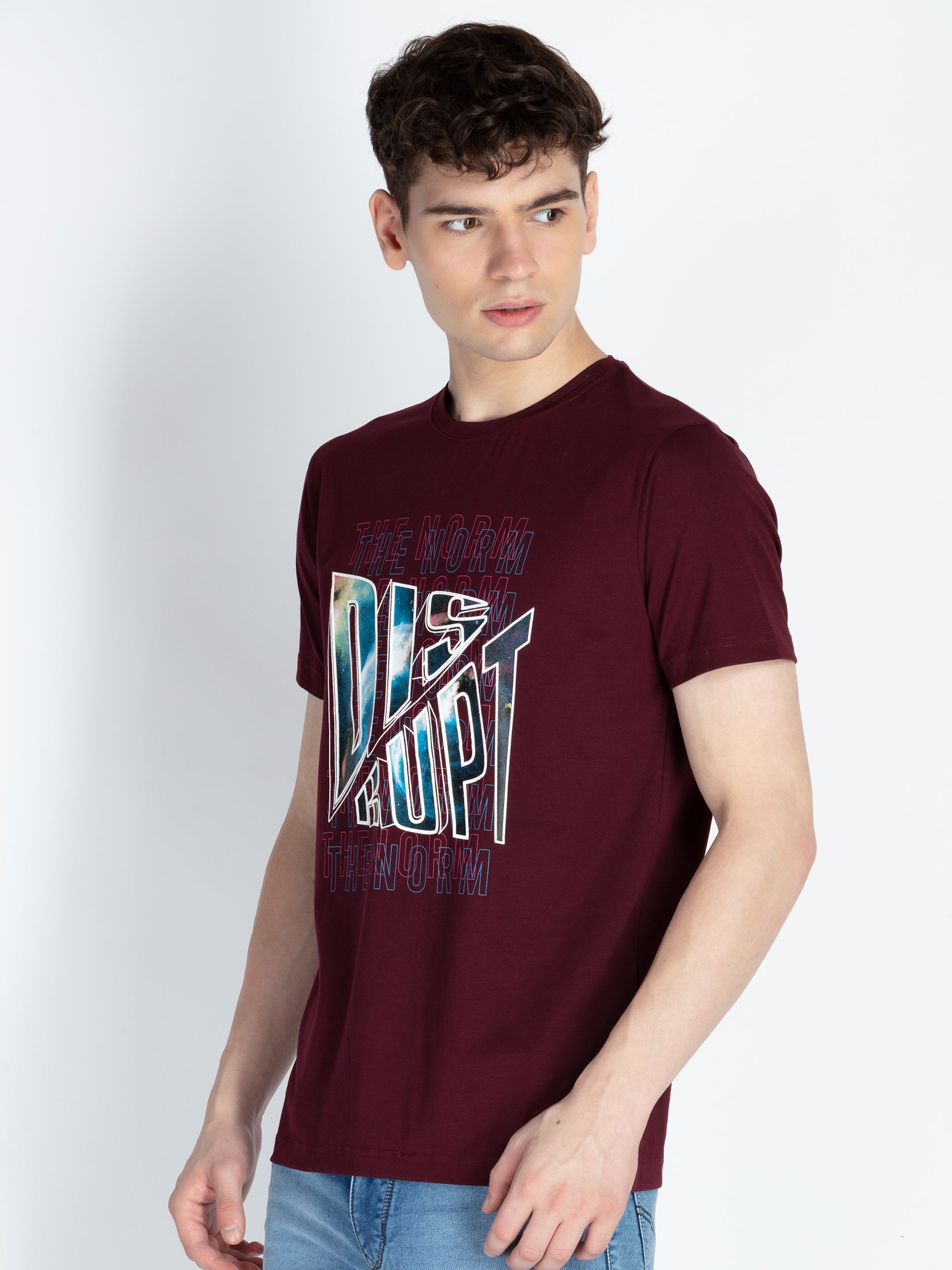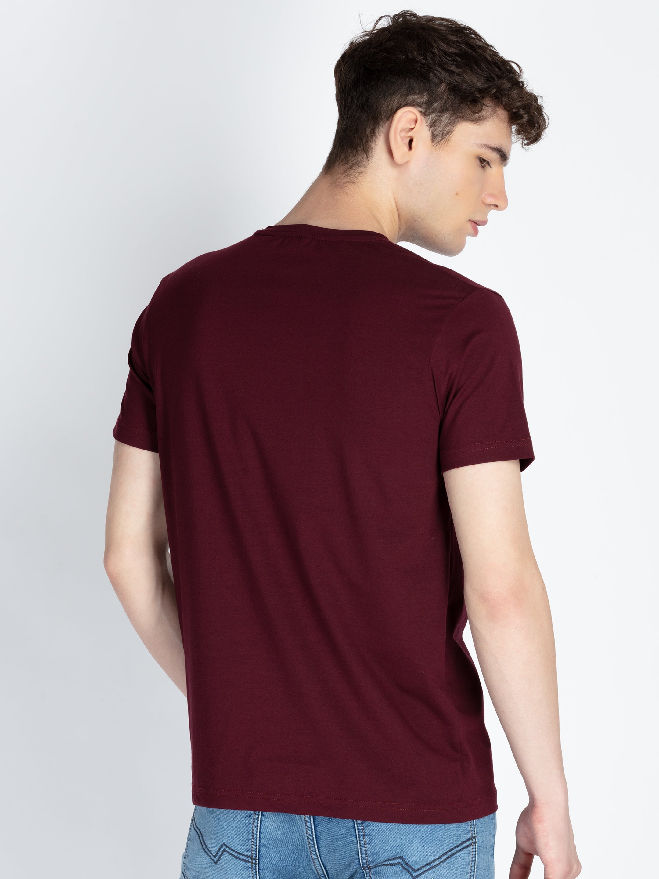 WINE Printed T-Shirt Has Round Neck With Half Sleeves