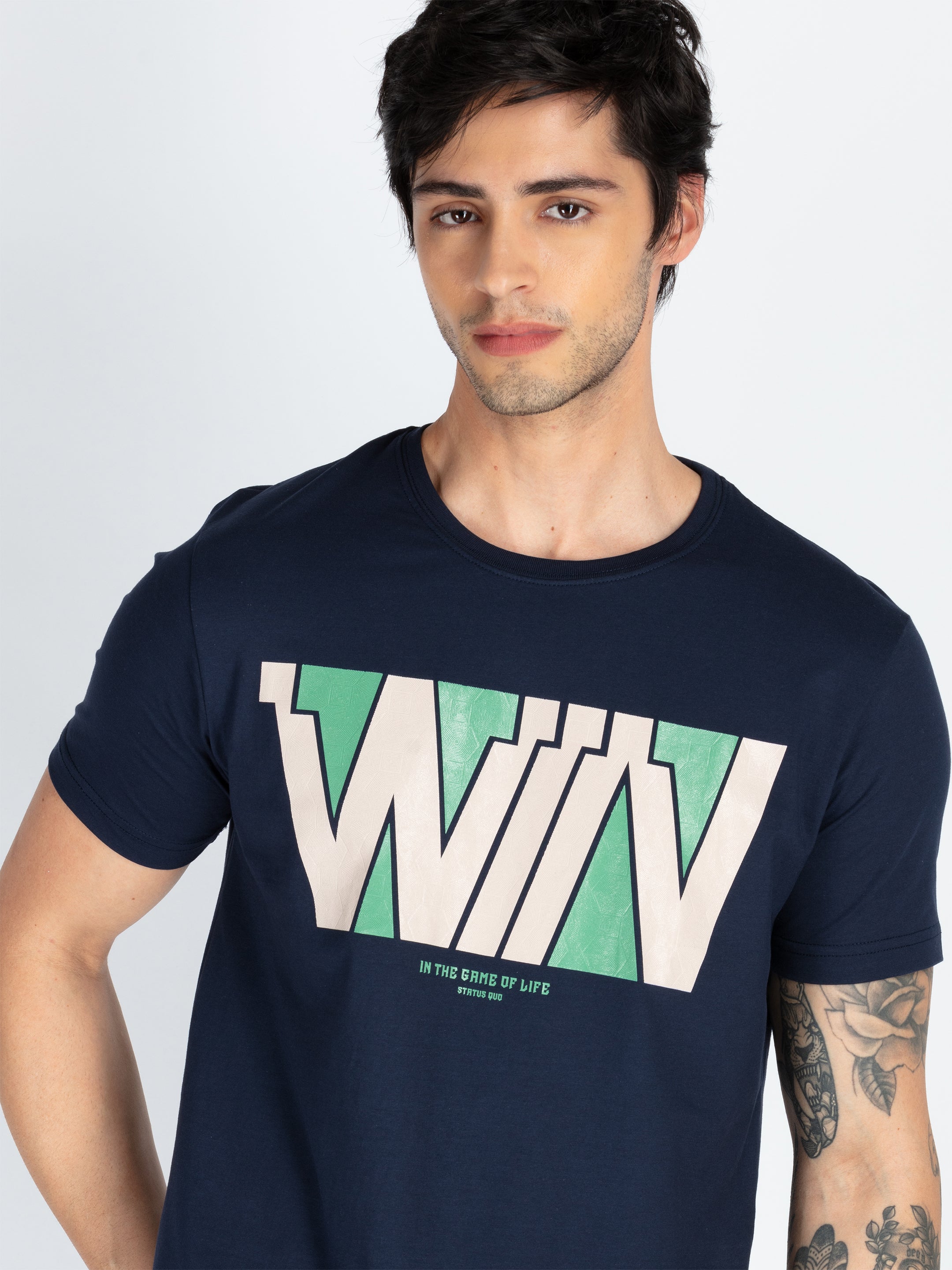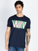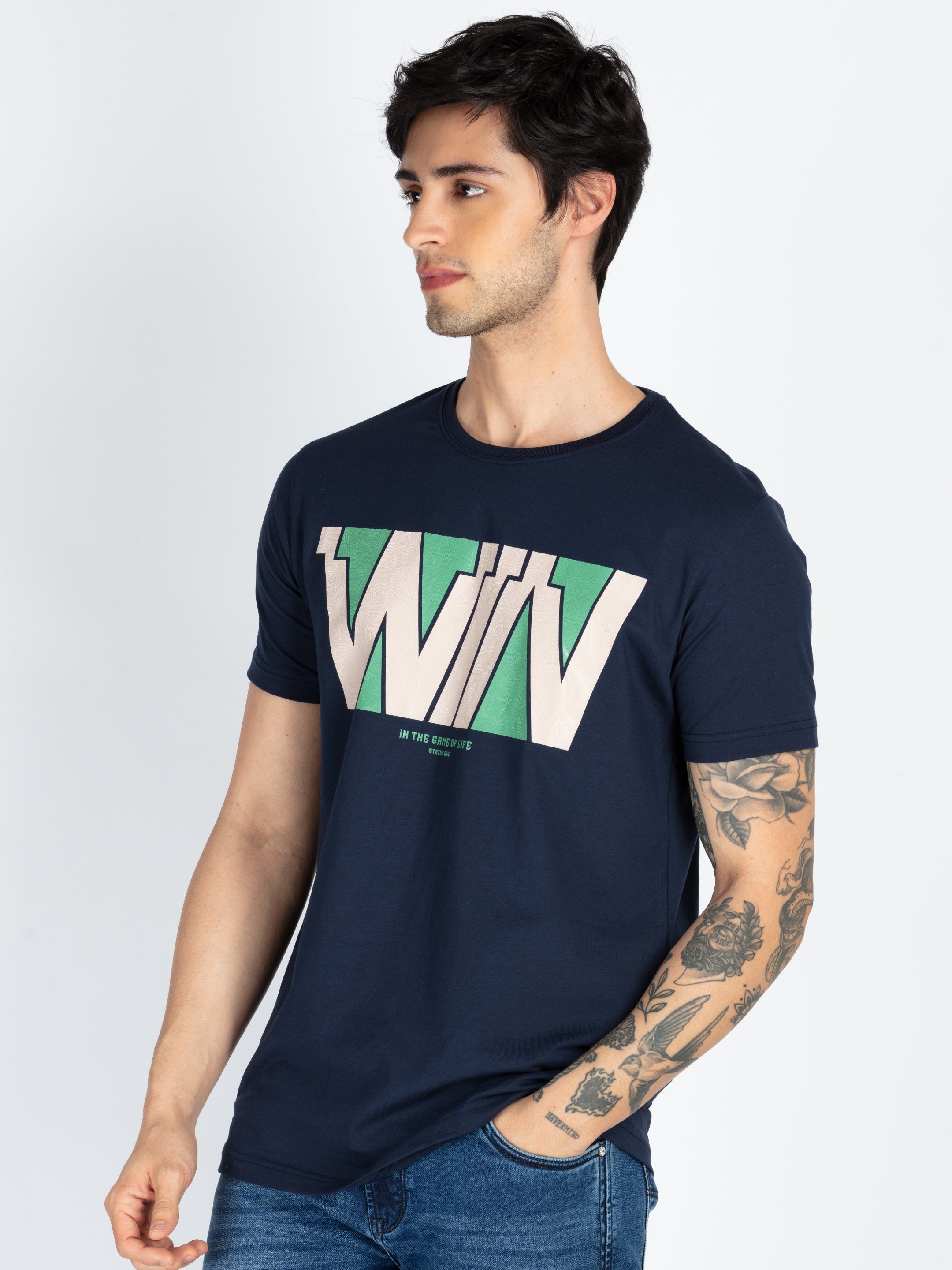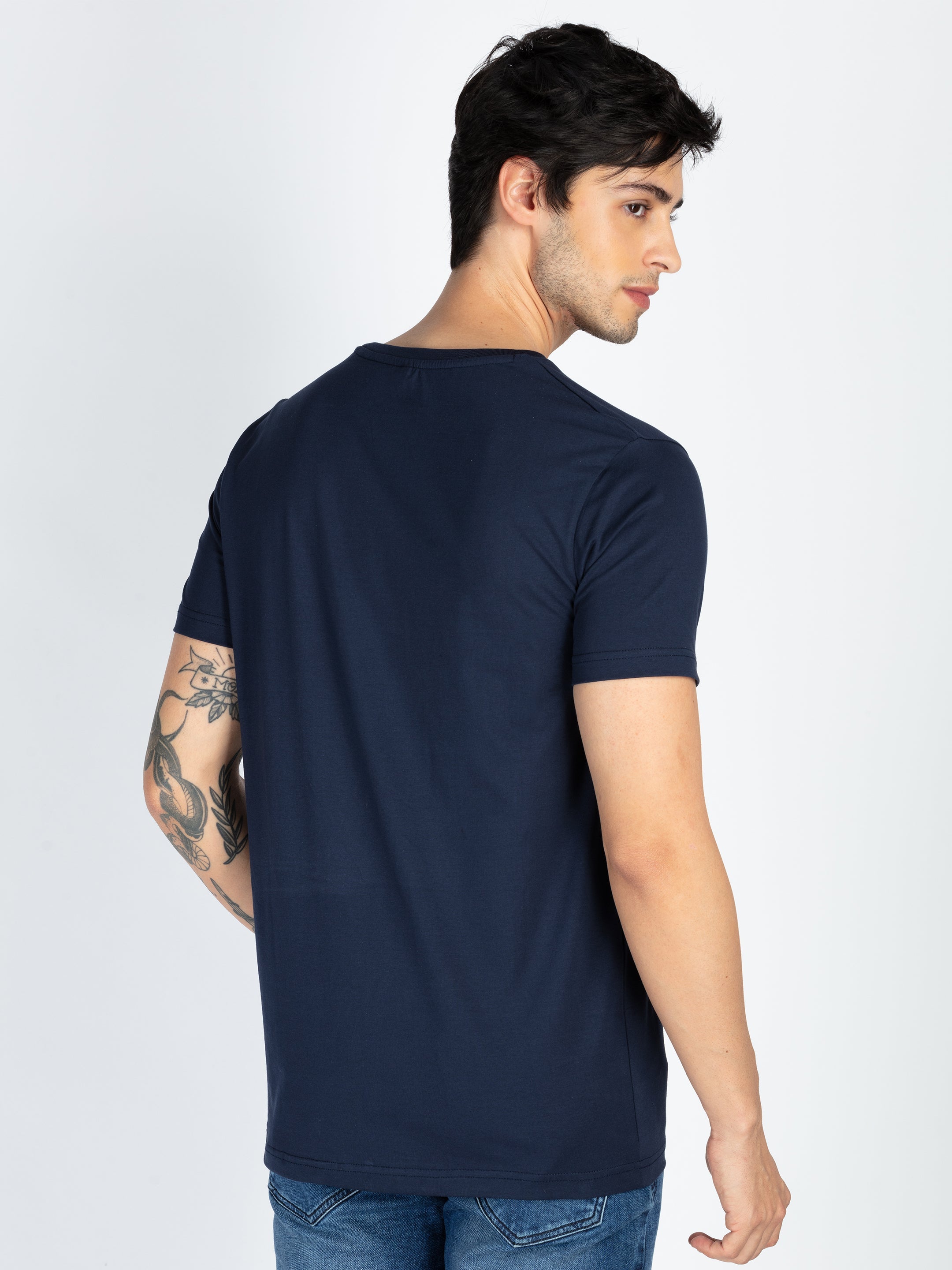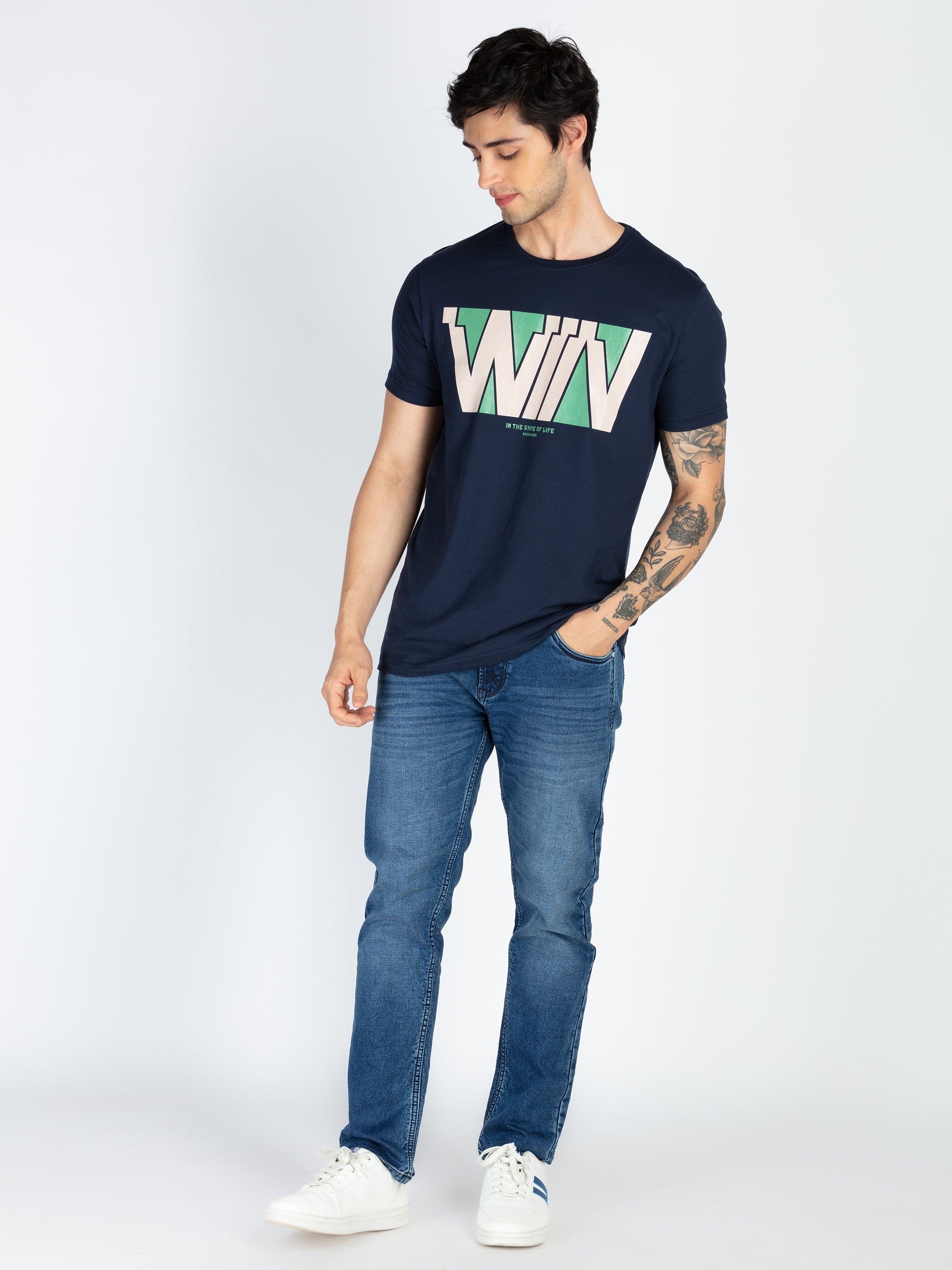 Navy Mens Printed Round Neck T-Shirt With Half Sleeves