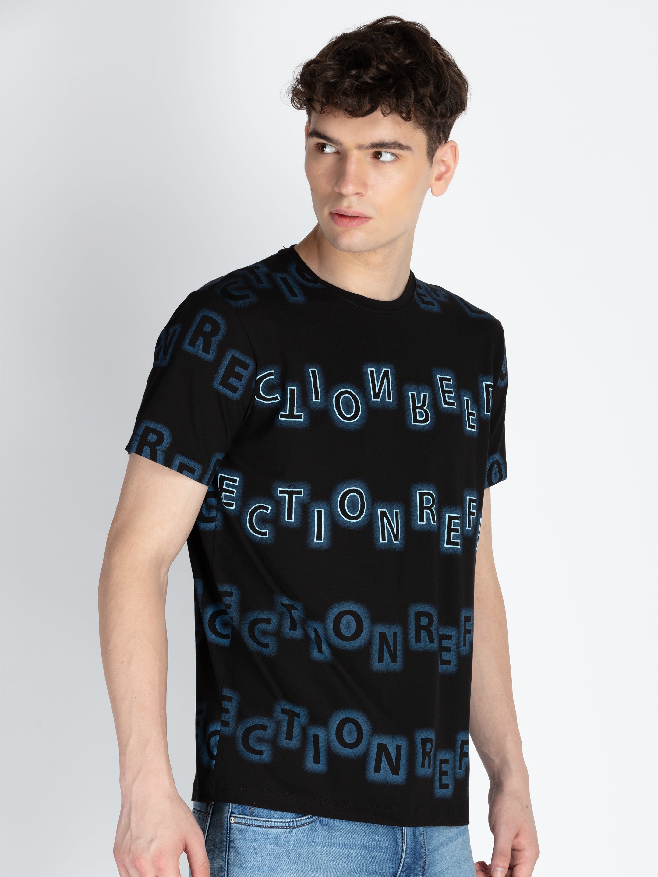 BLACK Printed T-Shirt Has Round Neck With Half Sleeves