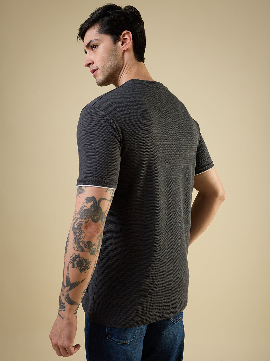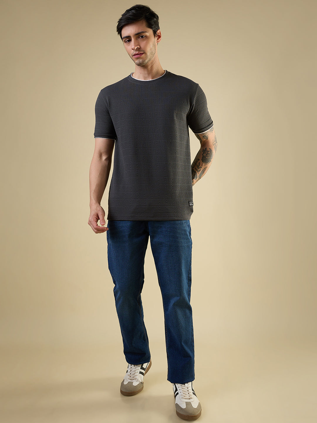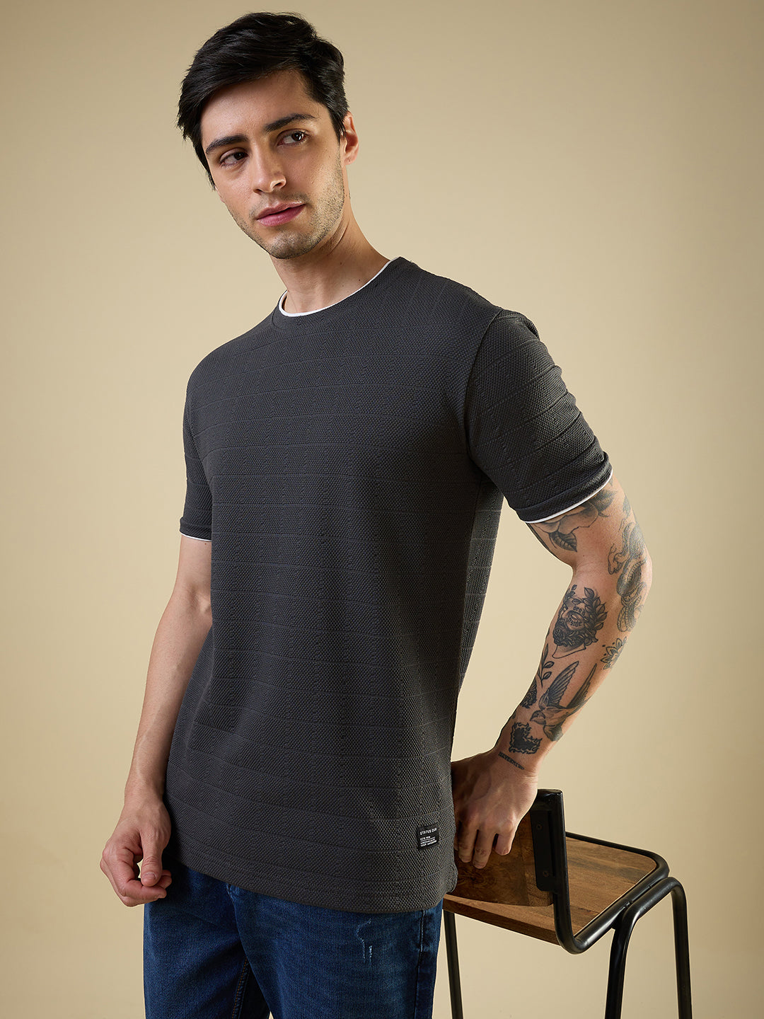 CHARCOAL Mens All-Over Solid Half Sleeves Regular Fit T-shirt