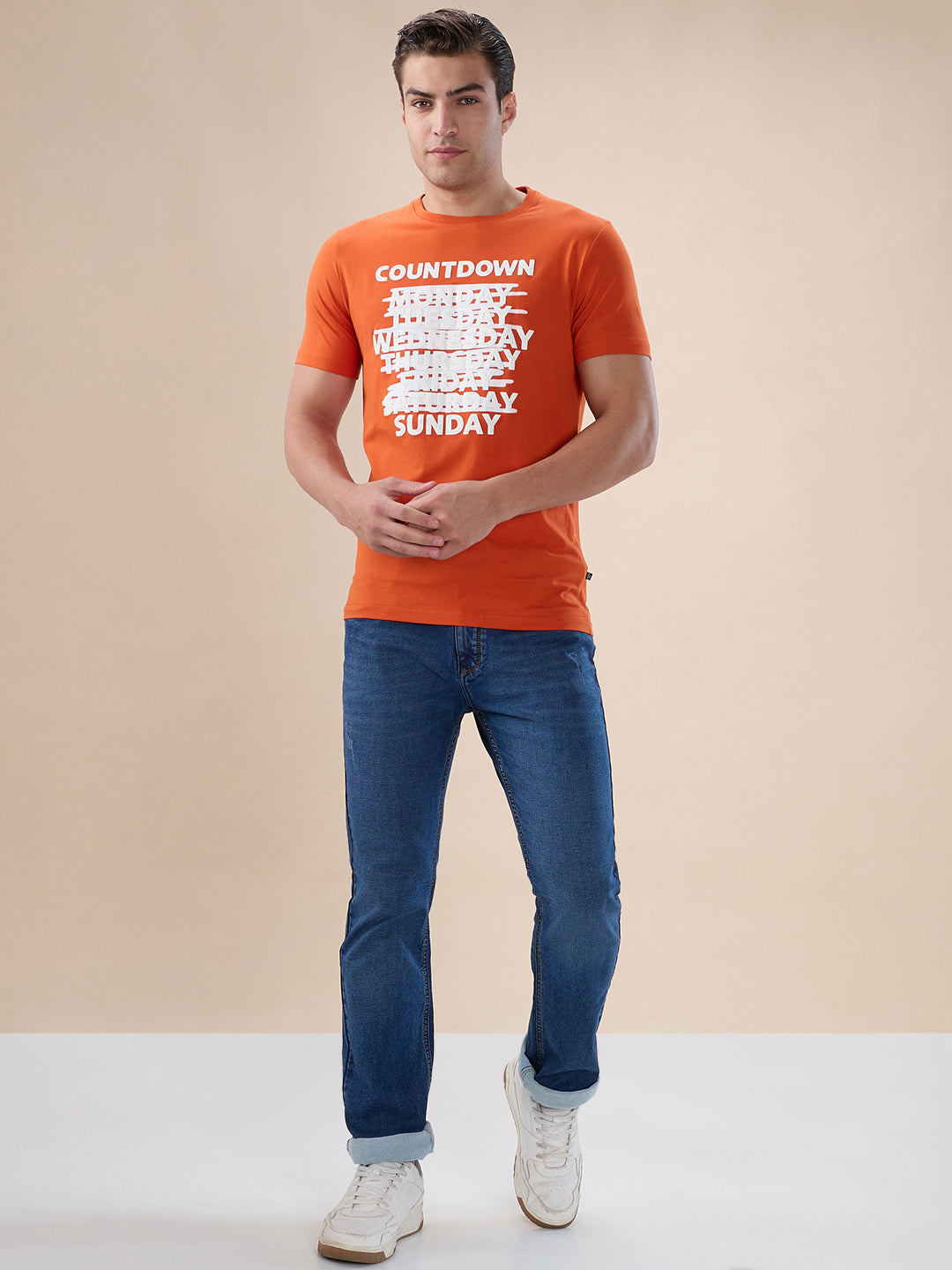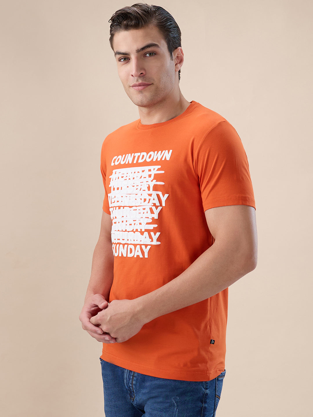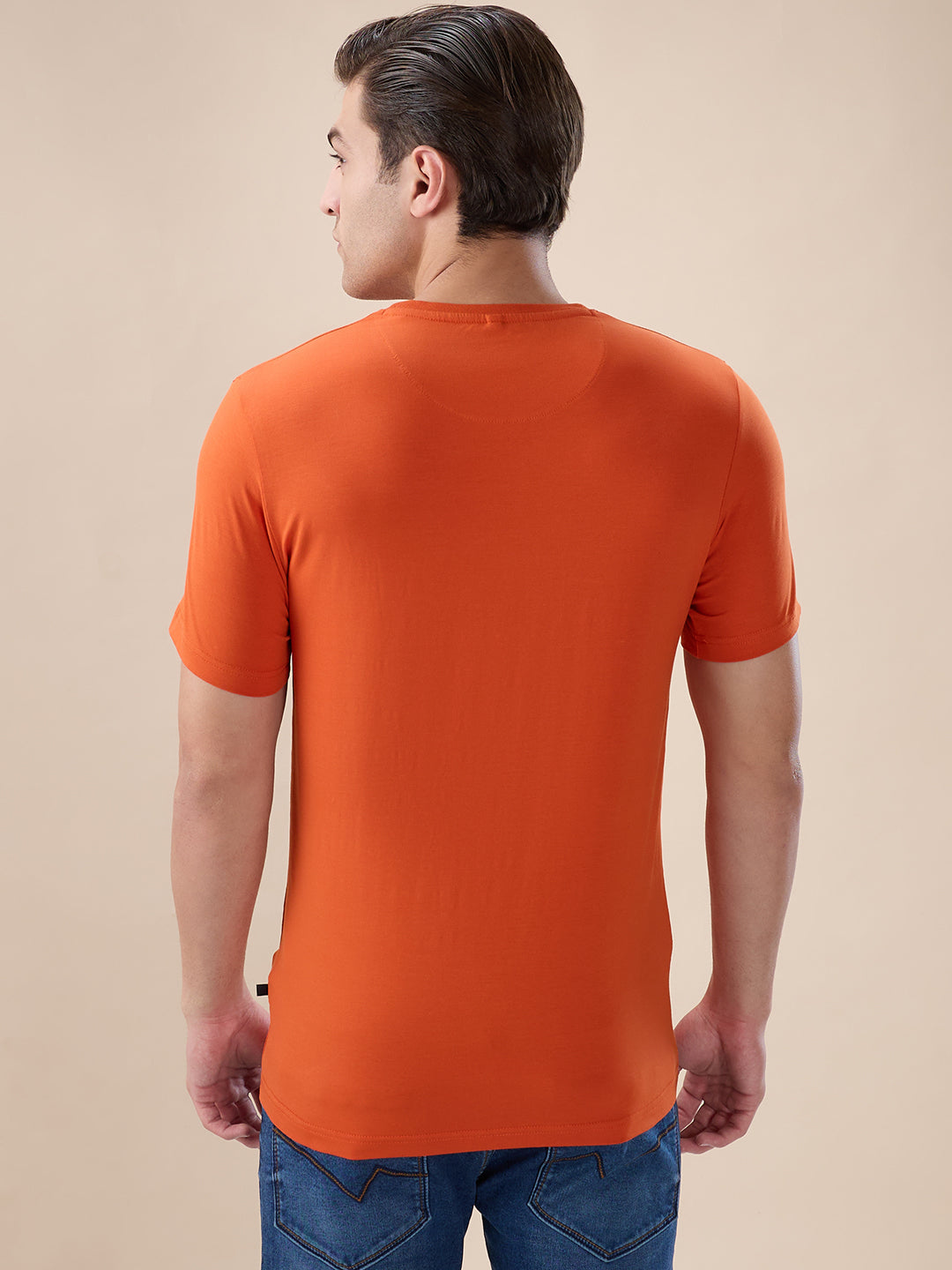 B.ORANGE Men's Abstract Print Round Neck Half Sleeves Regular Fit T-shirt