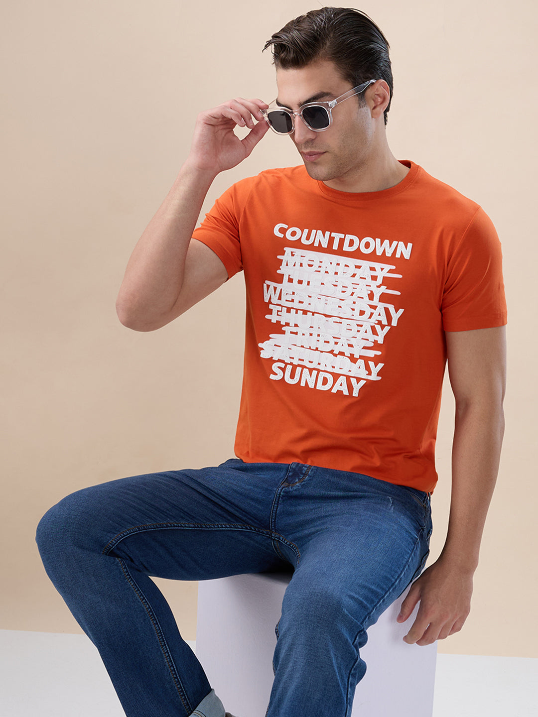 B.ORANGE Men's Abstract Print Round Neck Half Sleeves Regular Fit T-shirt