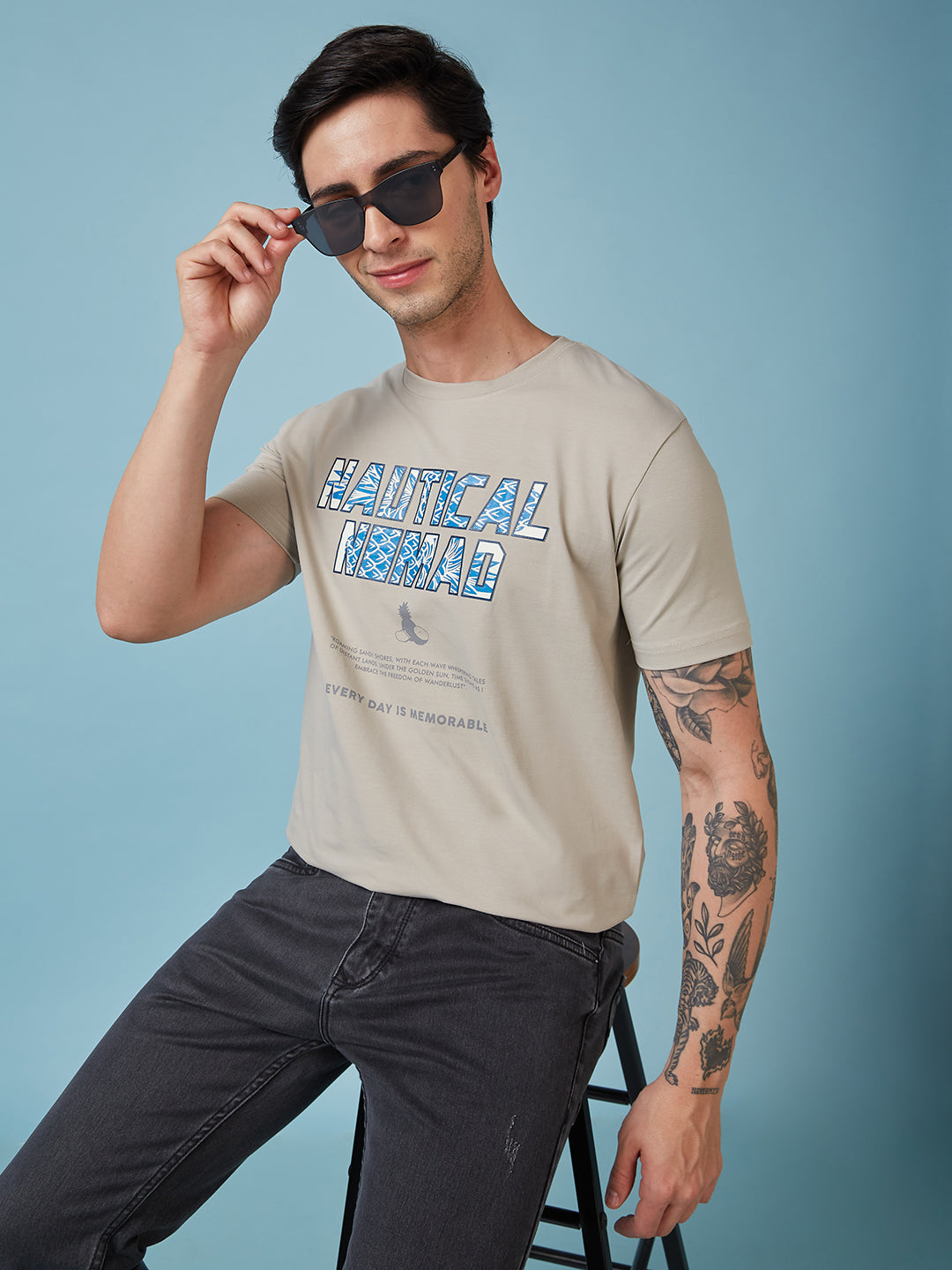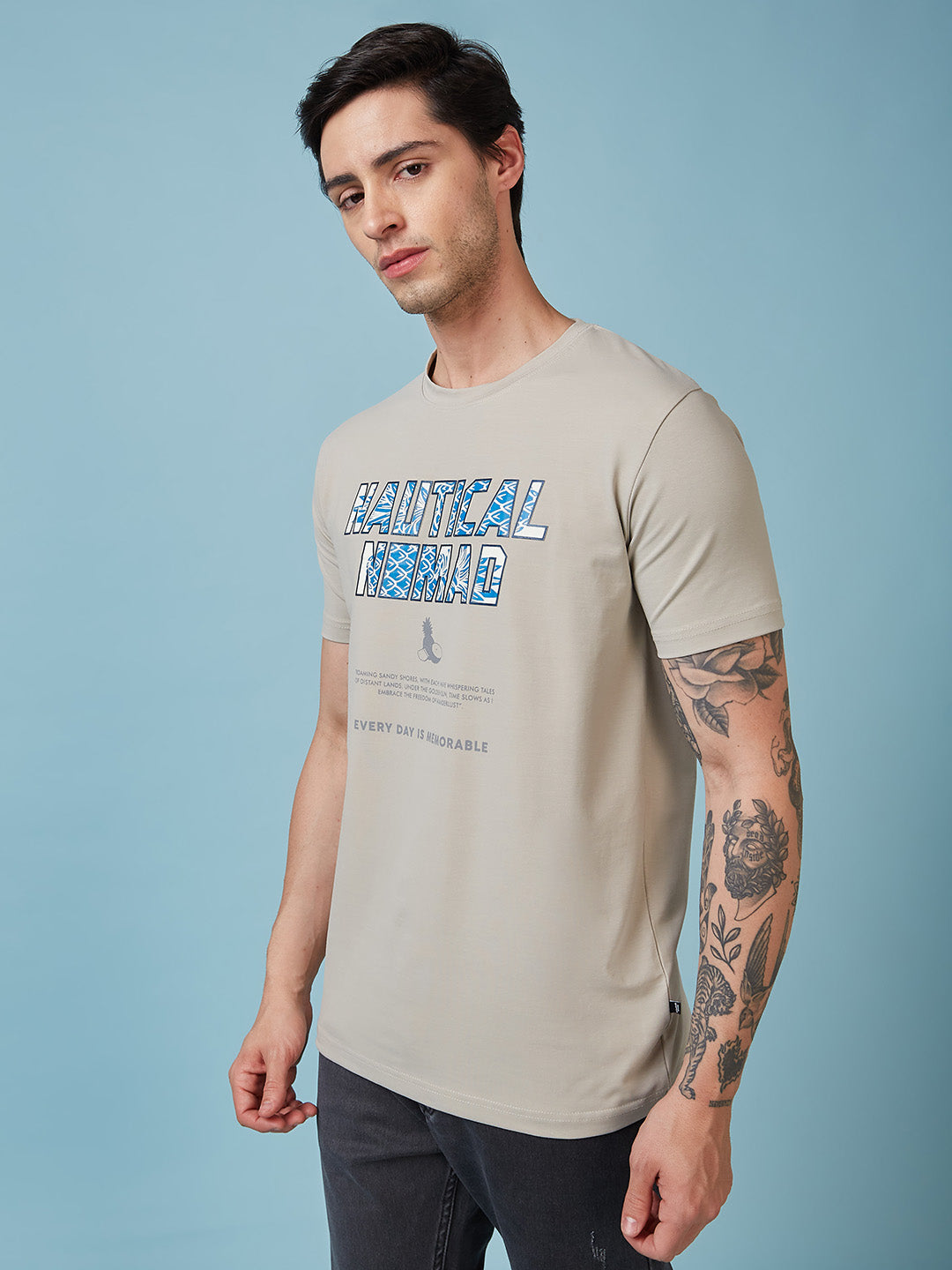 CEMENT Mens Printed Round Neck Half Sleeves T-shirt