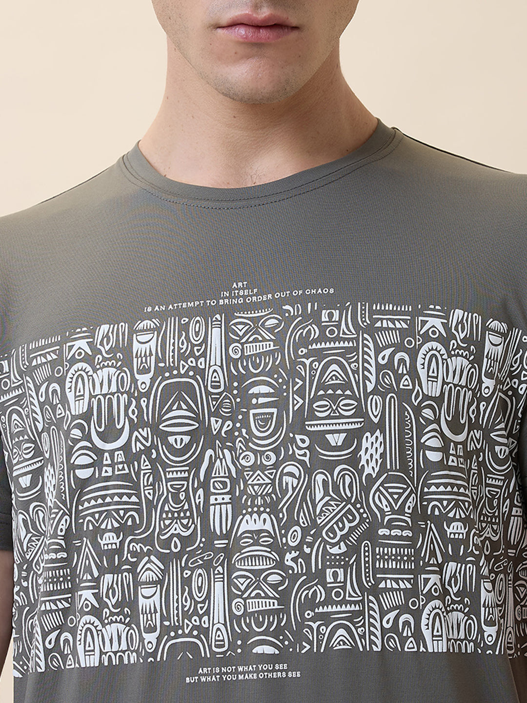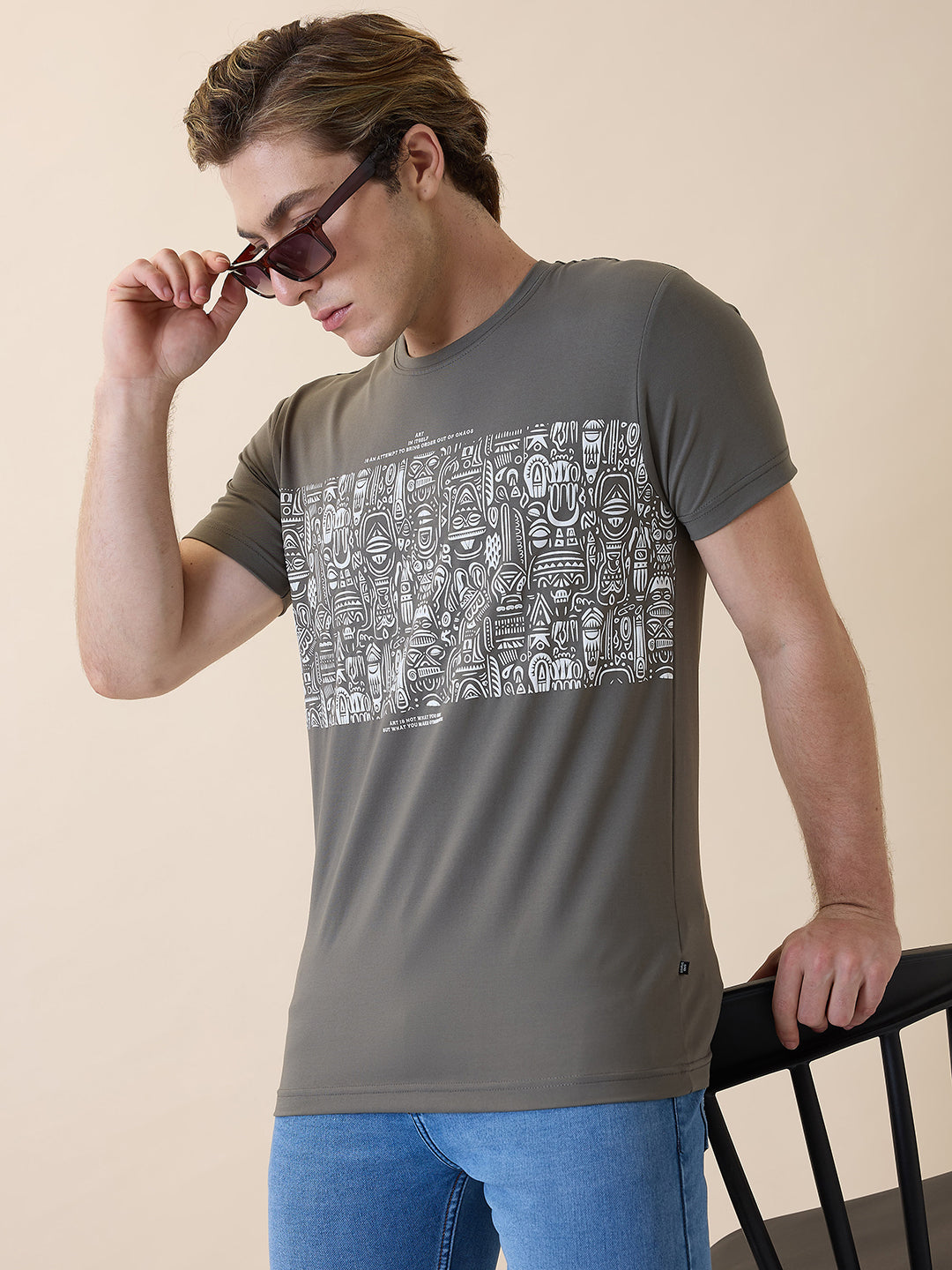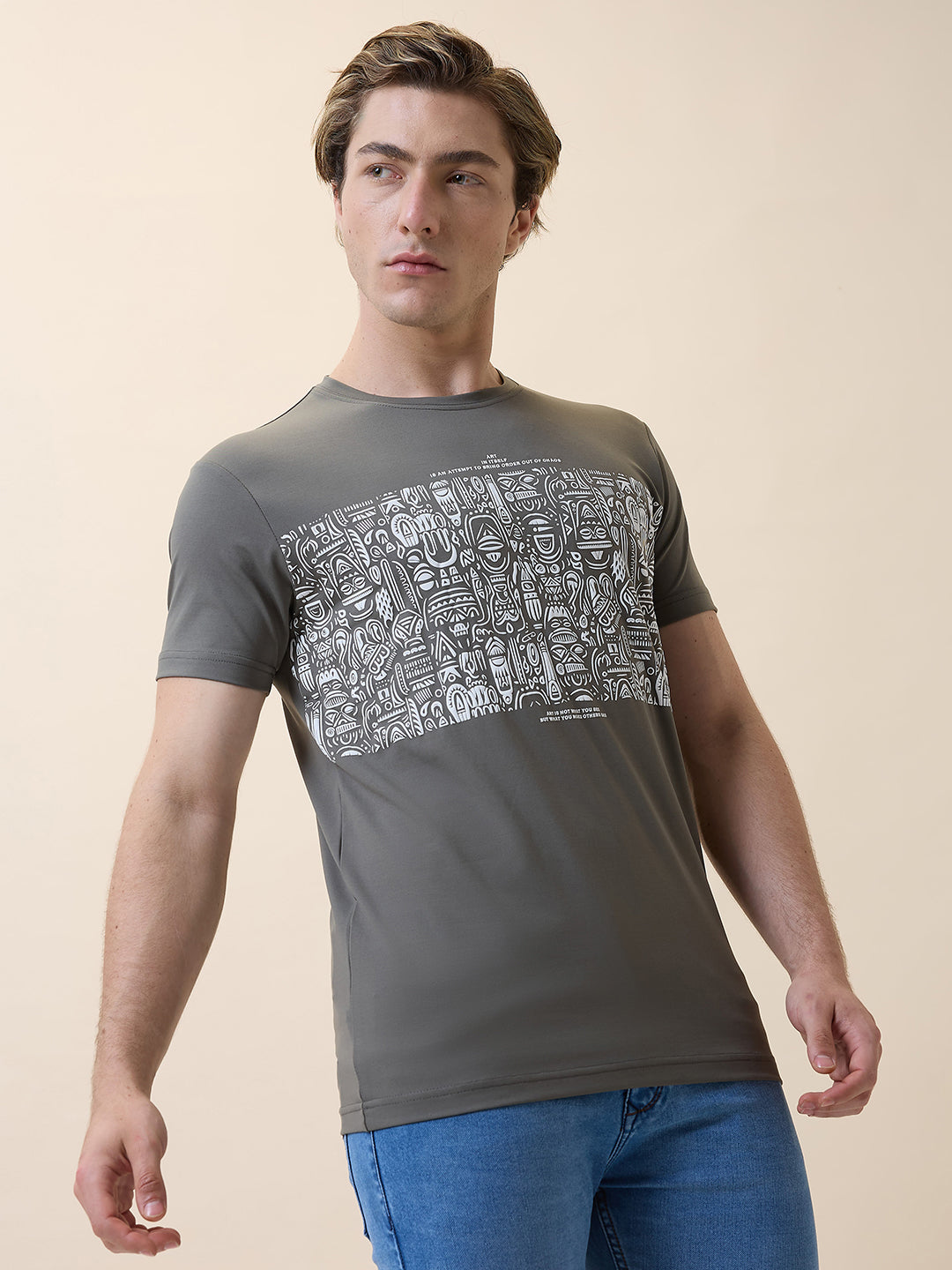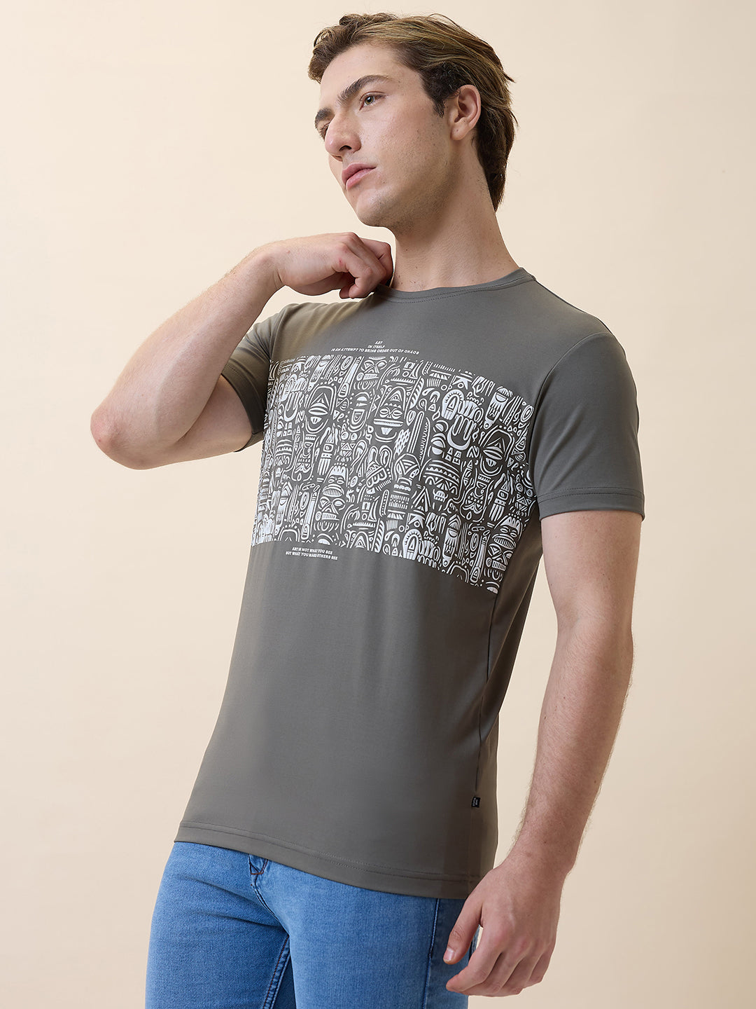 LT.OLIVE Status Quo Men's Printed Round Neck Half Sleeves Regular Fit T-shirt