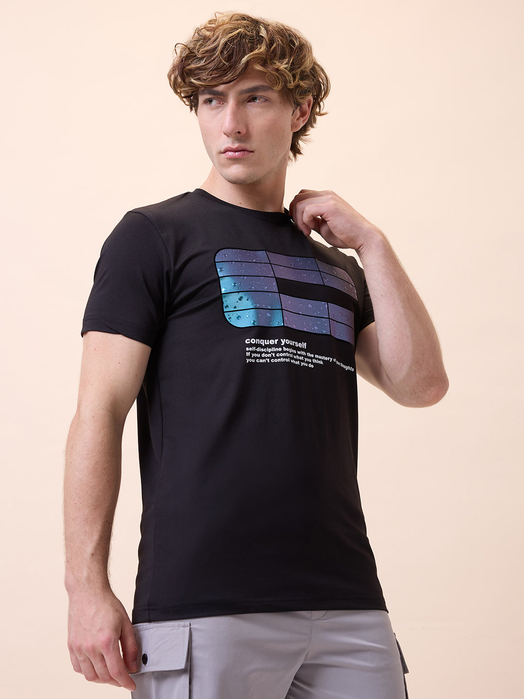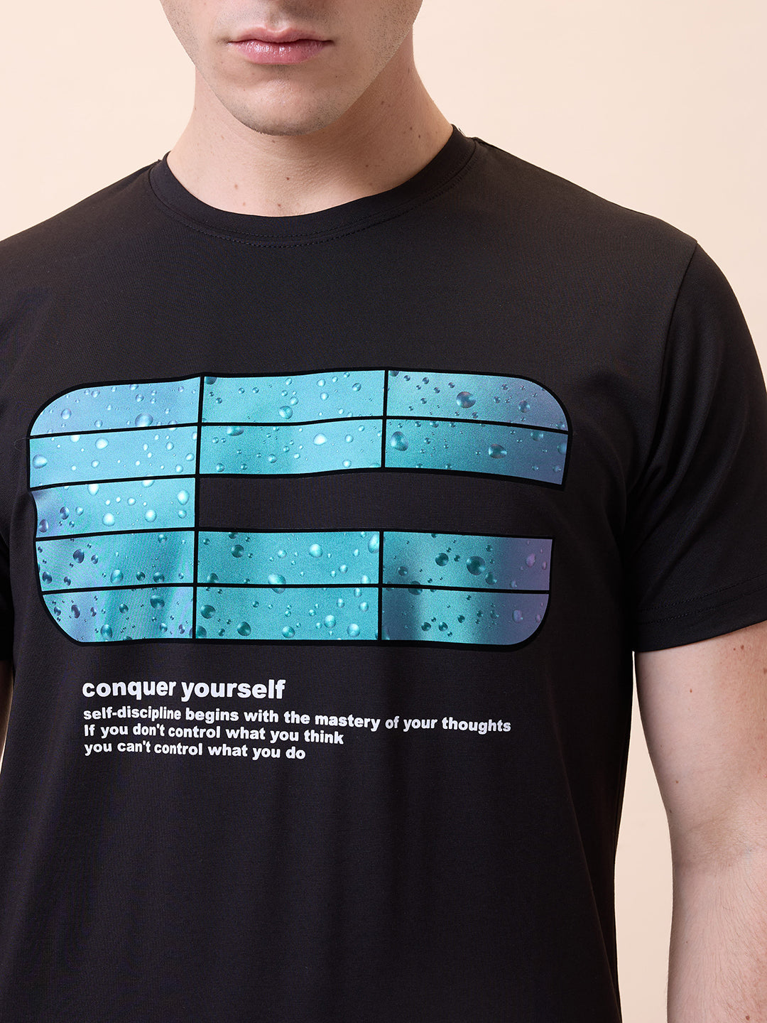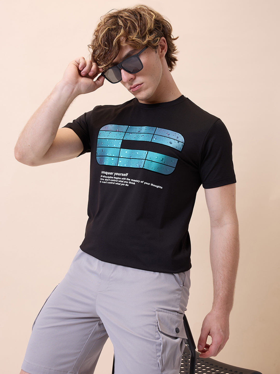 BLACK Status Quo Men's Printed Round Neck Half Sleeves Regular Fit T-shirt