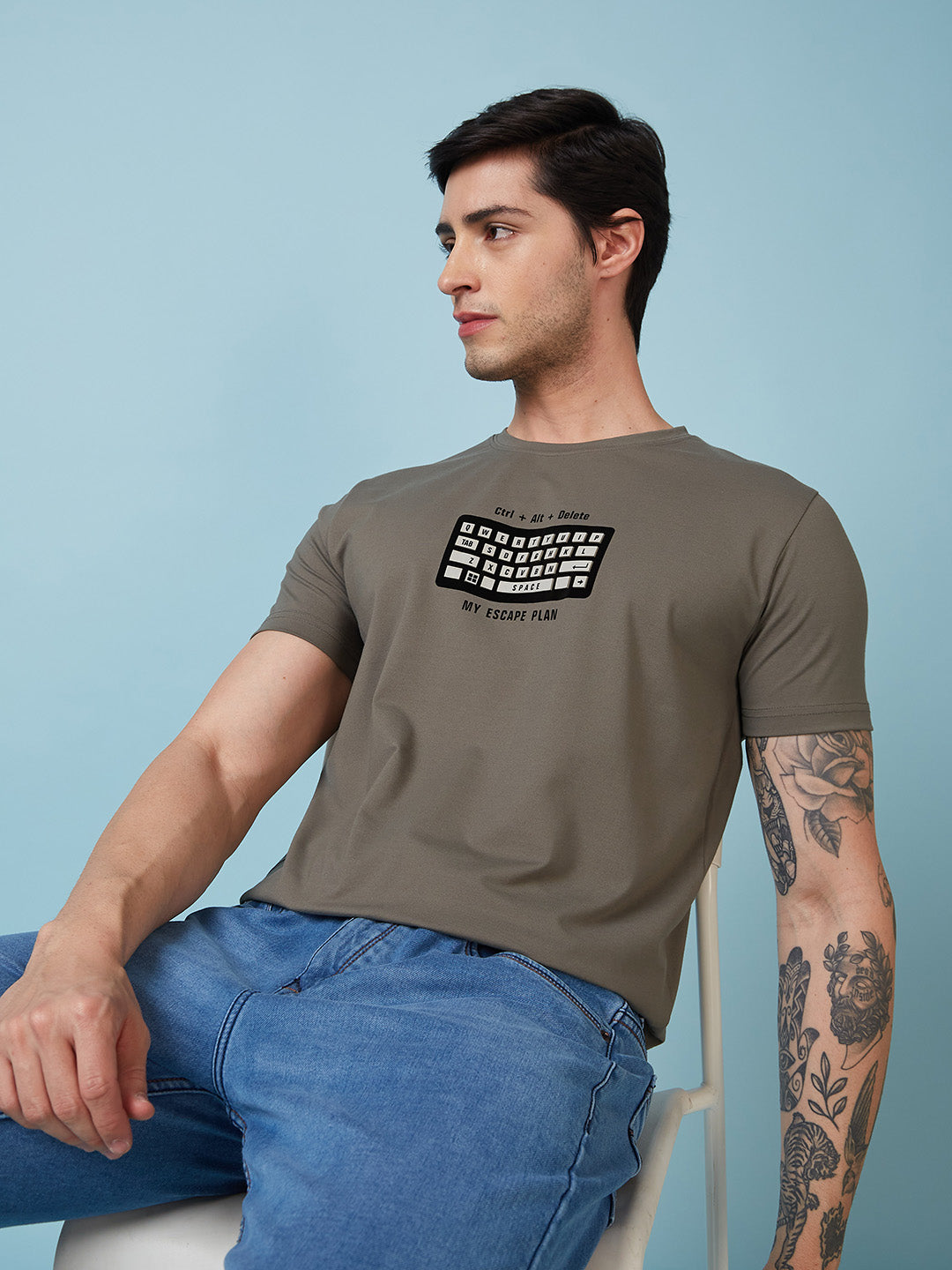 DK.OLIVE Mens Printed Round Neck Half Sleeves T-shirt
