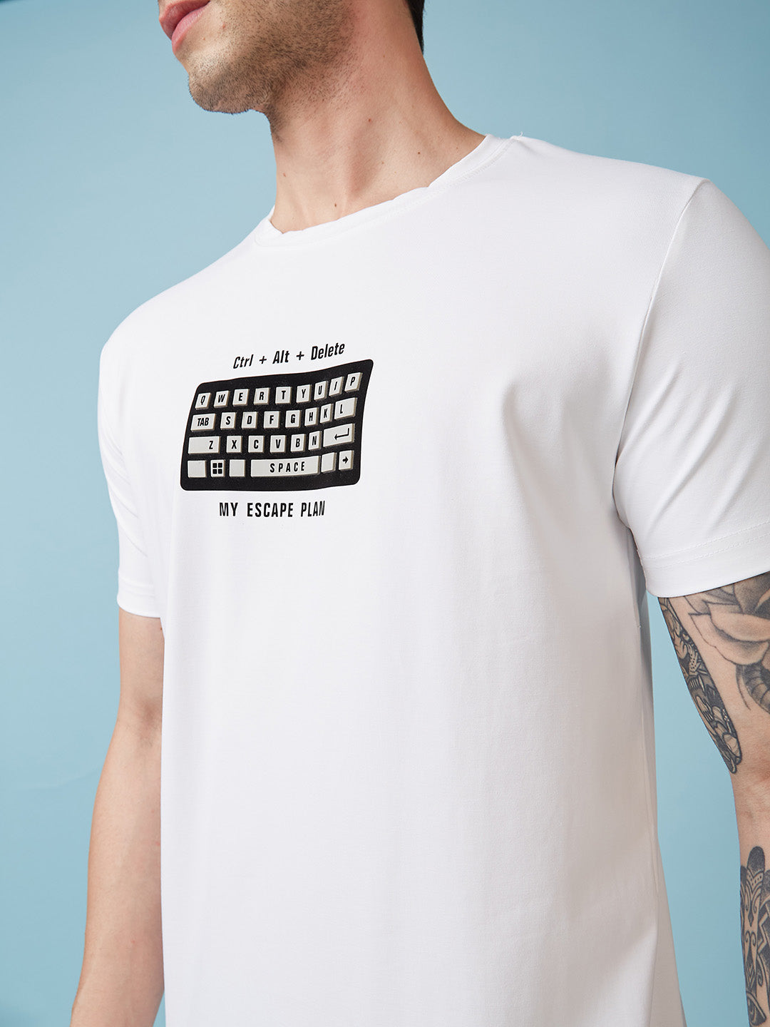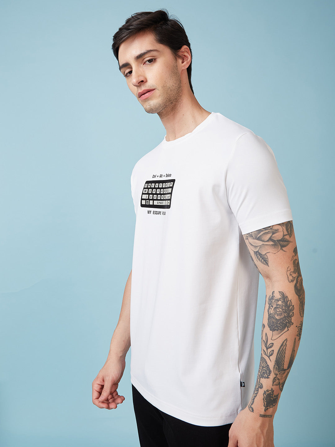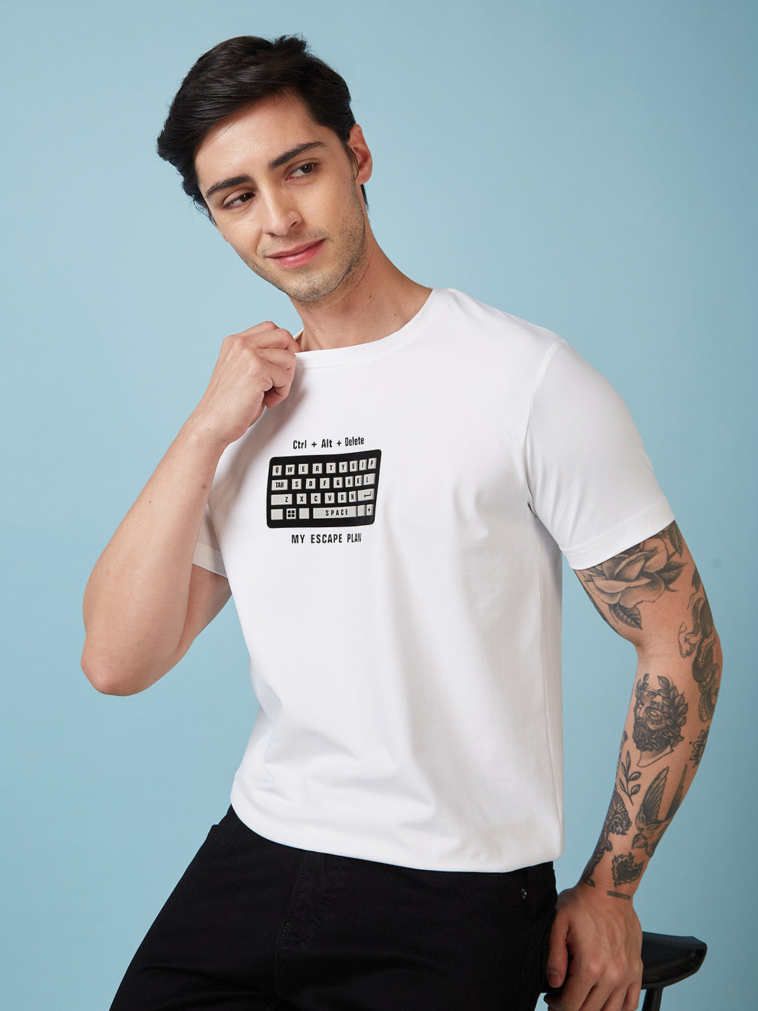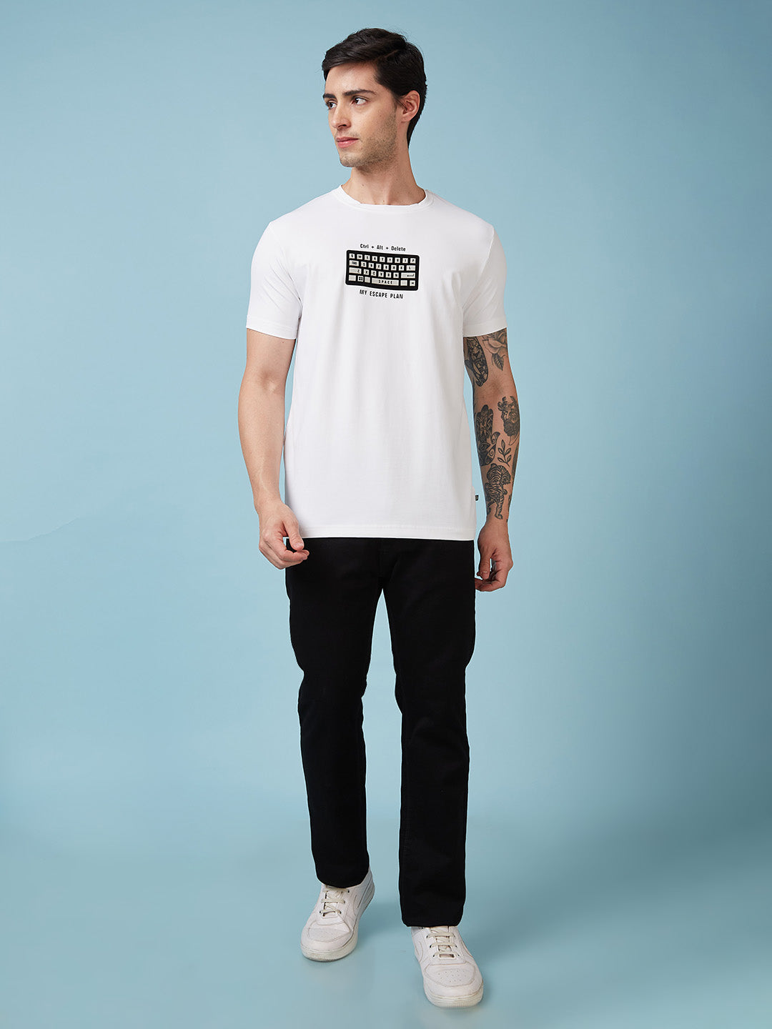 OFF WHITE Mens Printed Round Neck Half Sleeves T-shirt