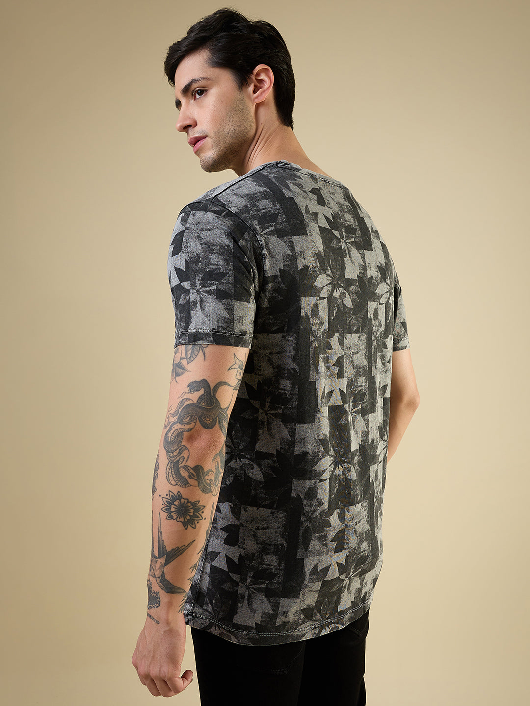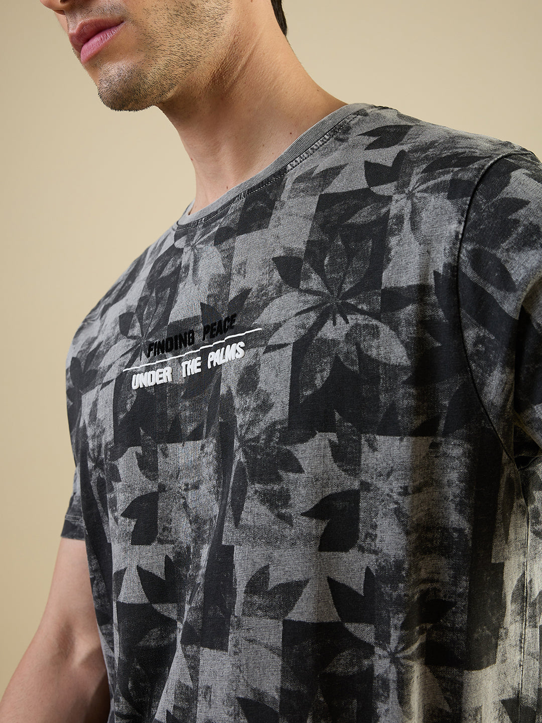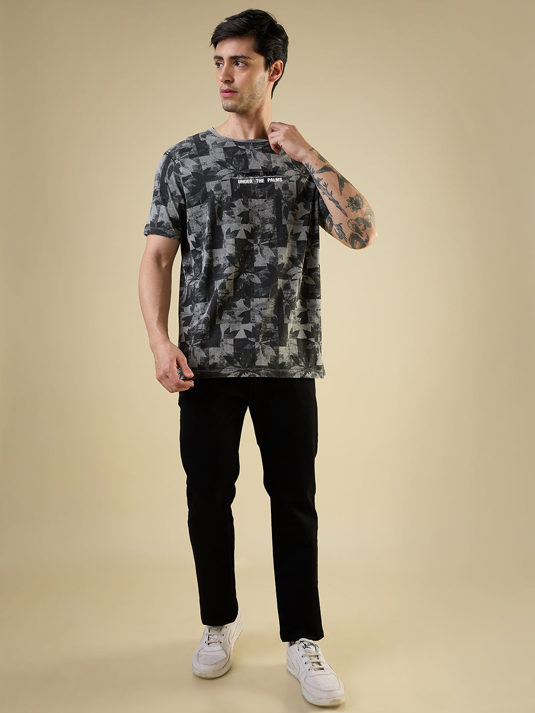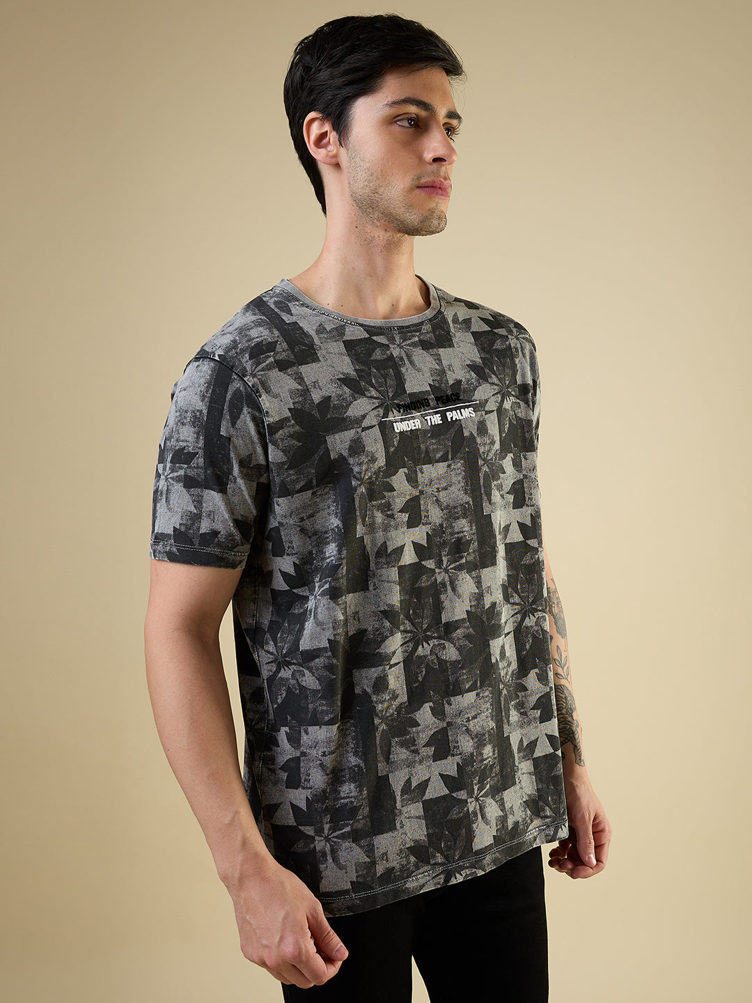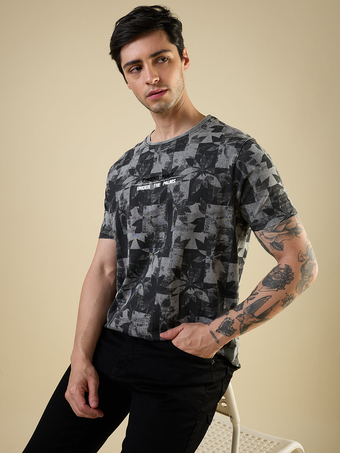 CHARCOAL Mens All-Over Abstract Printed Half Sleeves Regular Fit T-shirt