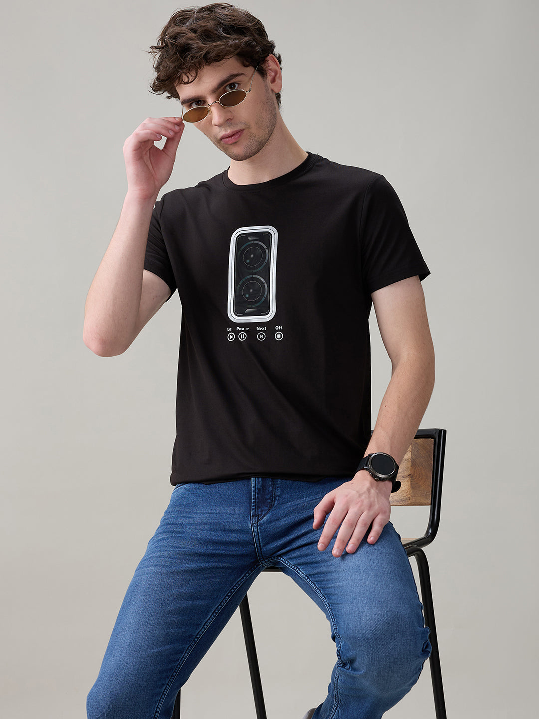 BLACK Status Quo Men's Chest Graphic Printed Round Neck Half Sleeve T-Shirt