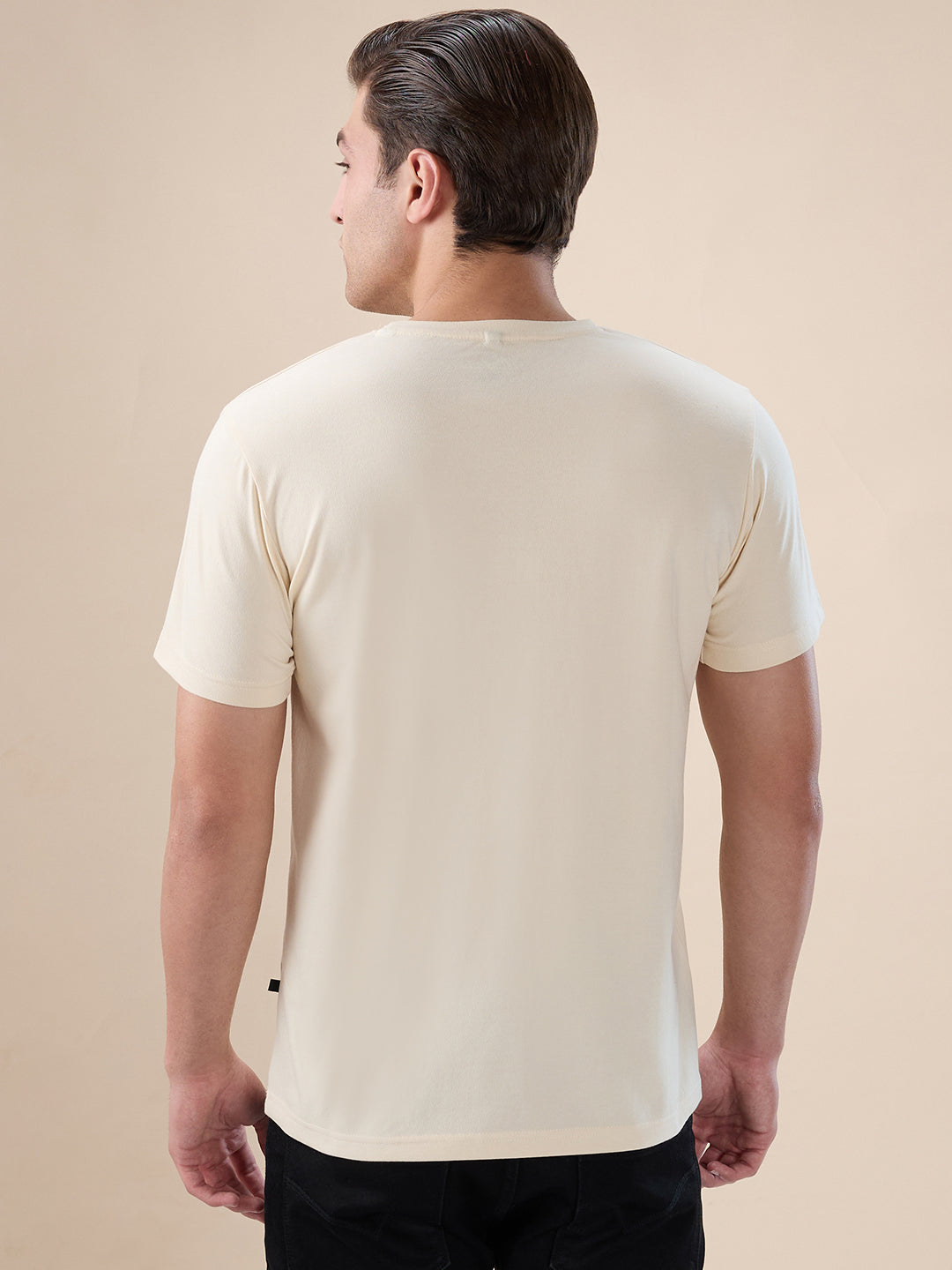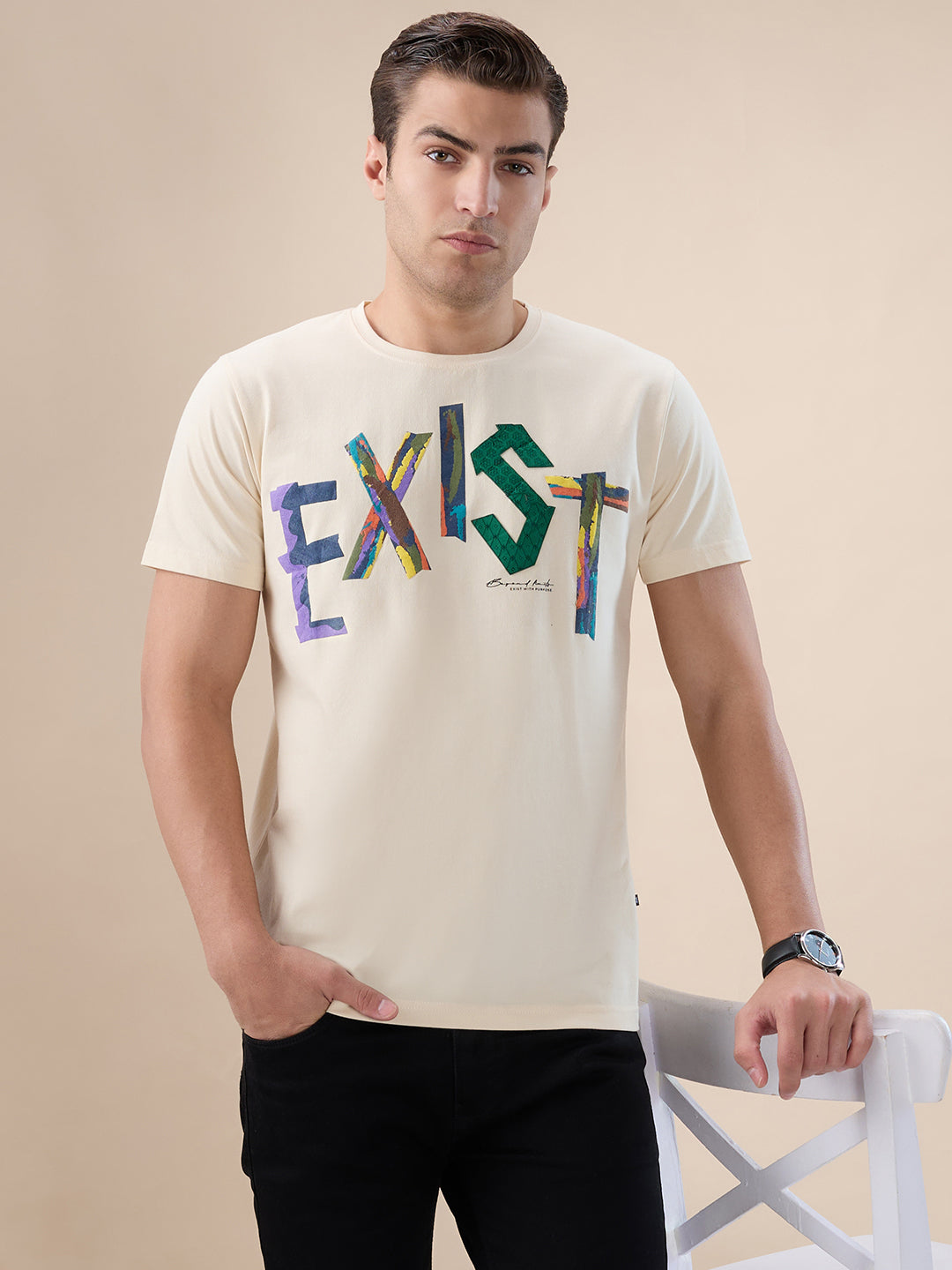 BEIGE Men's Typography Print Round Neck Half Sleeves Regular Fit T-shirt