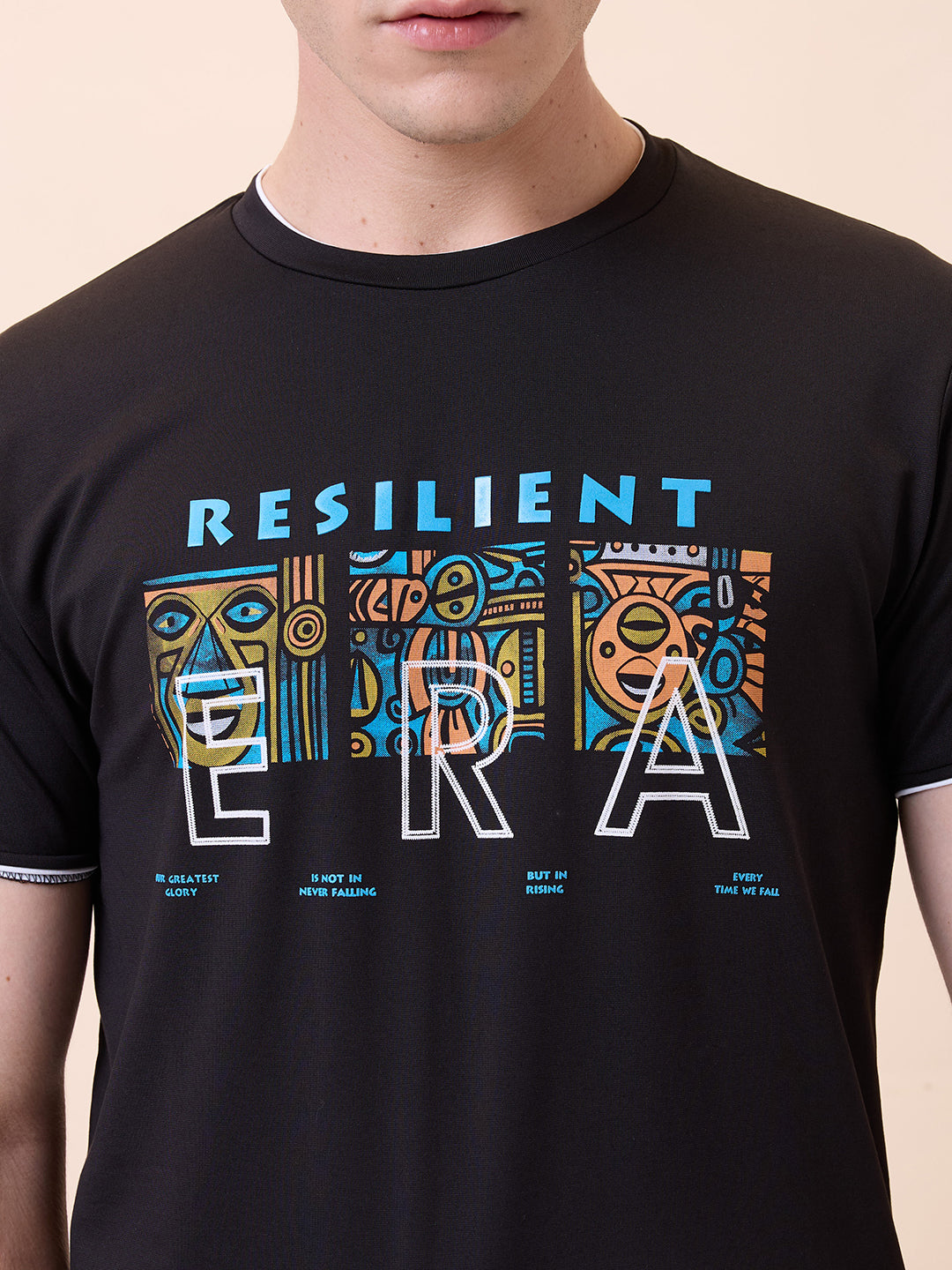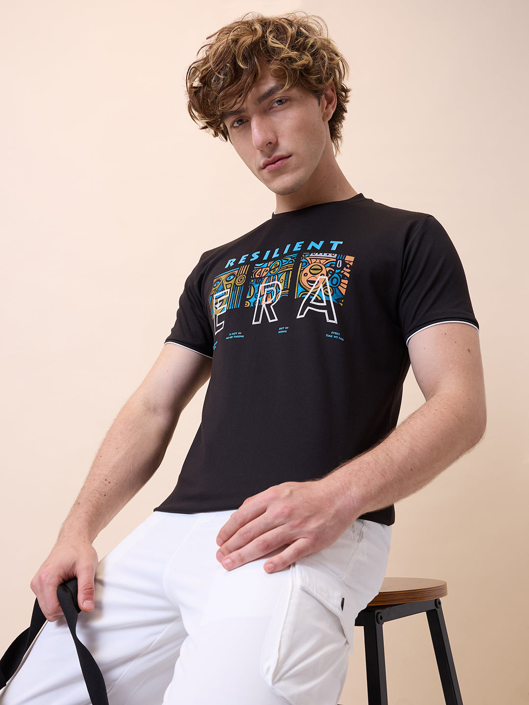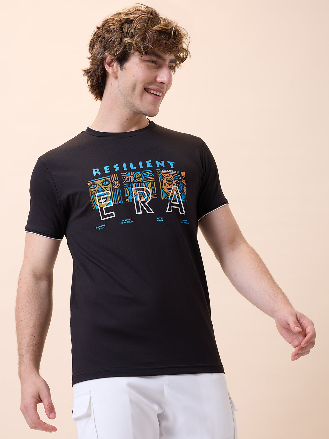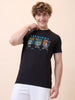 BLACK Mens Chest Typography Round Neck Half Sleeves Regular Fit T-Shirt
