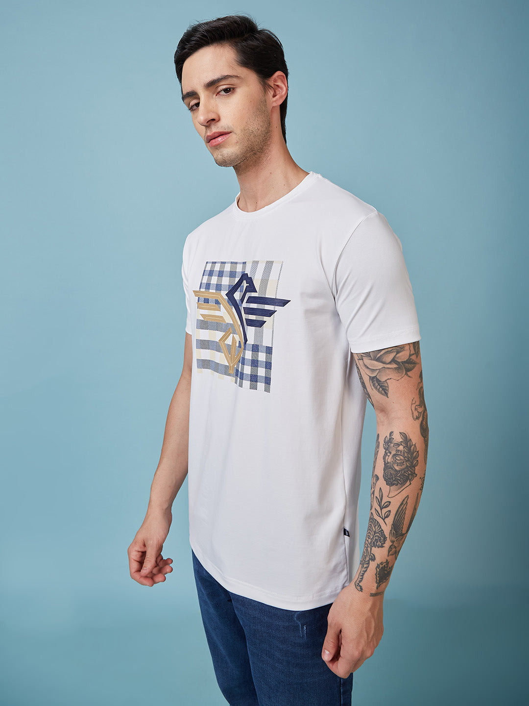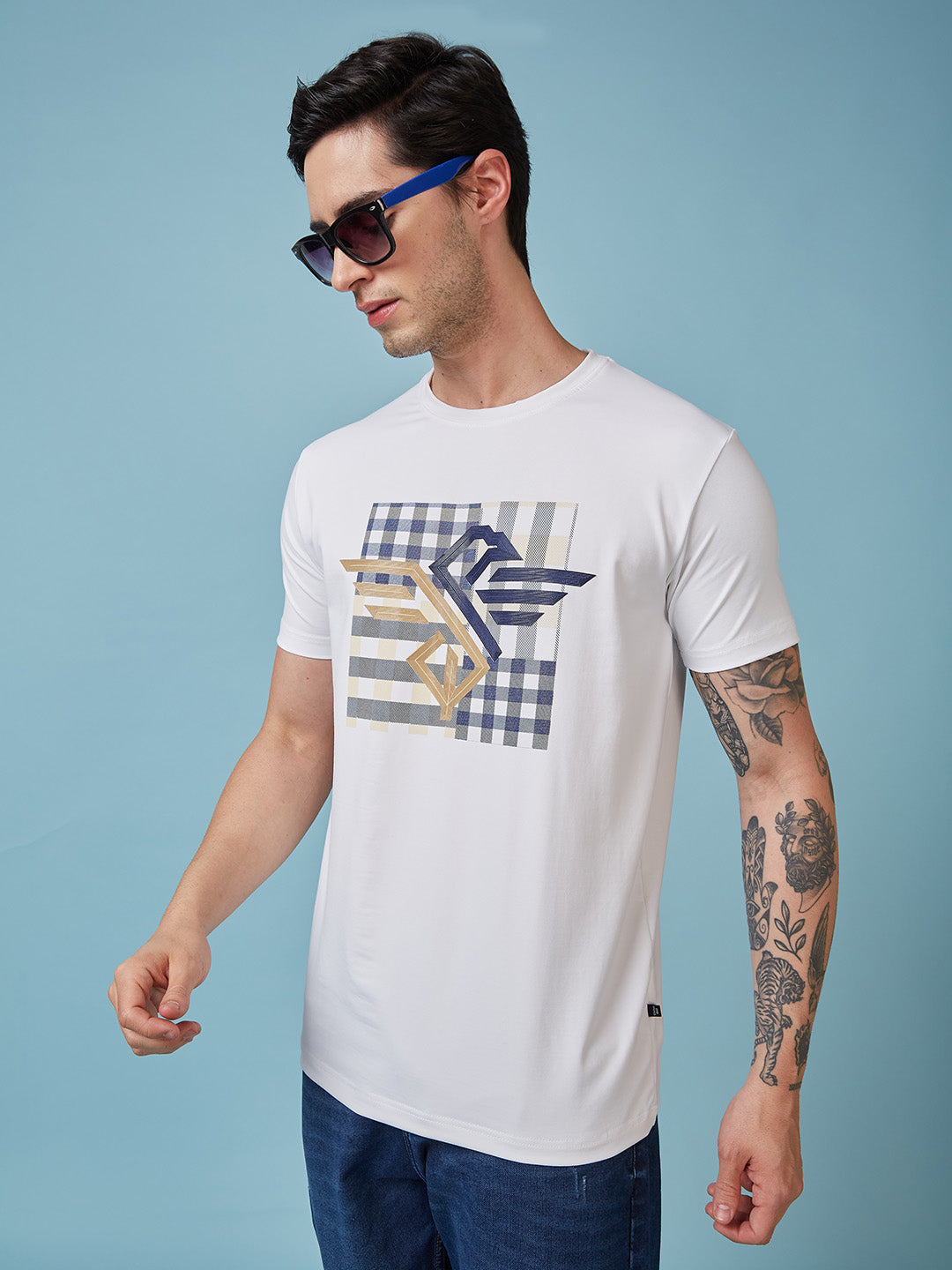 OFF WHITE Mens Printed Round Neck Half Sleeves T-shirt