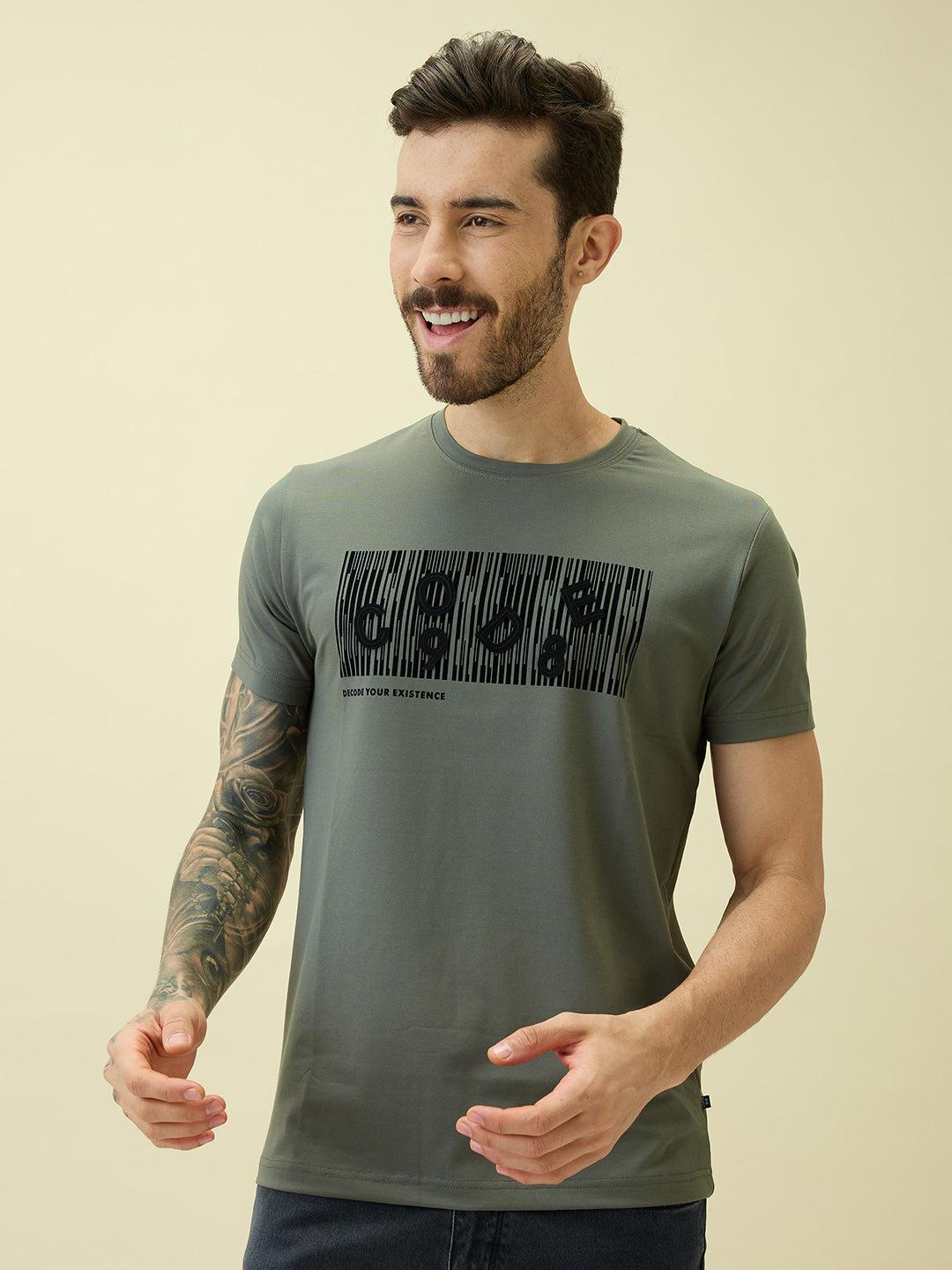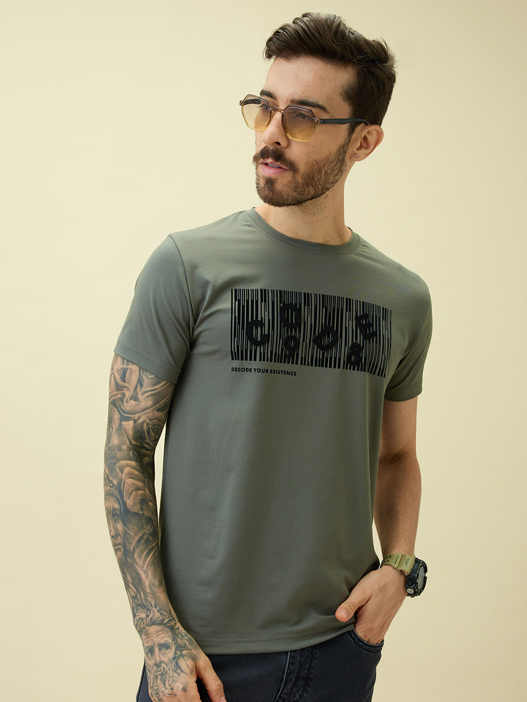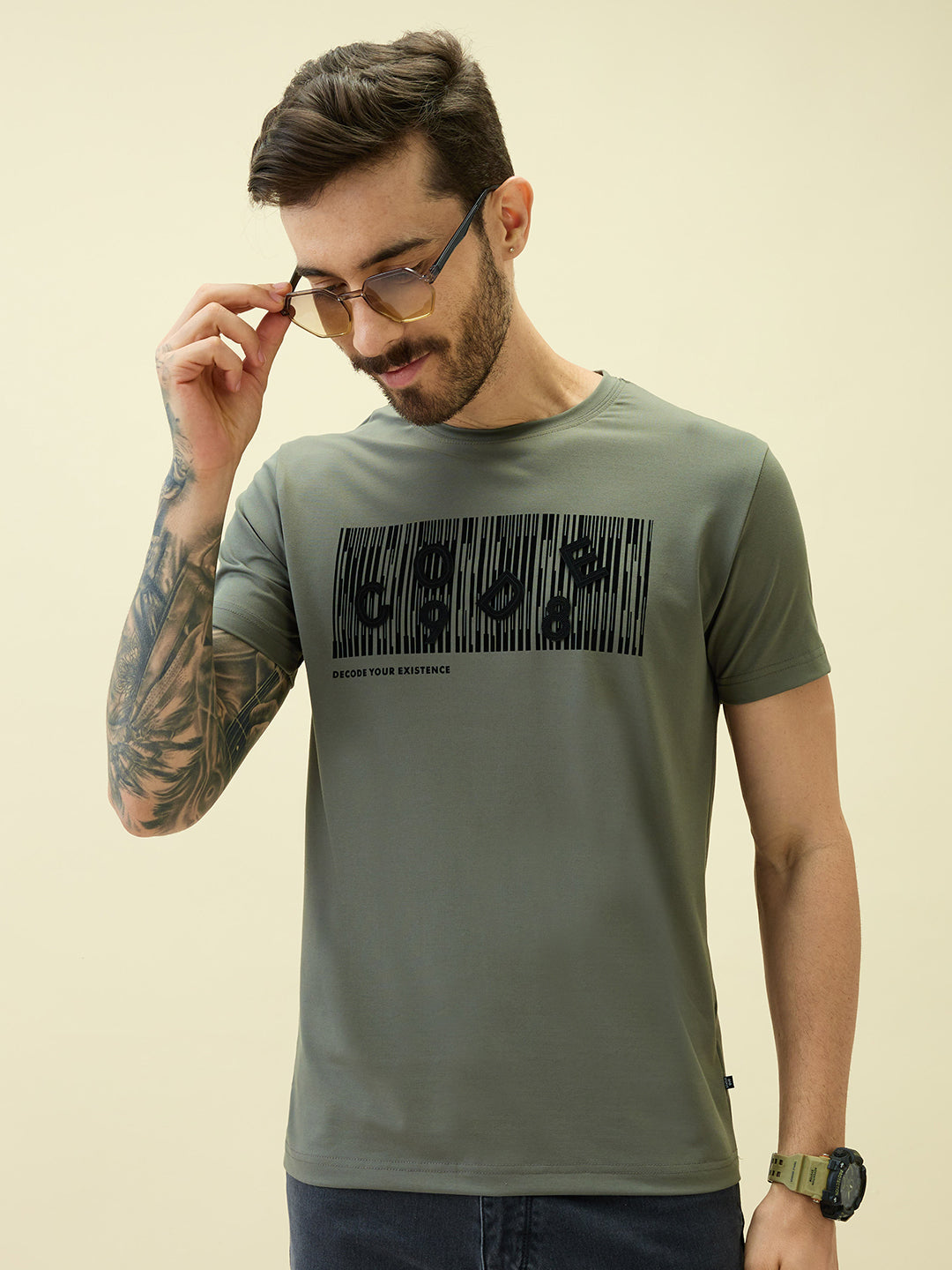 LT.OLIVE Men's Printed Round Neck Half Sleeves Regular Fit Tshirt