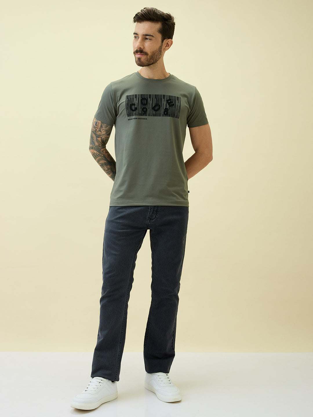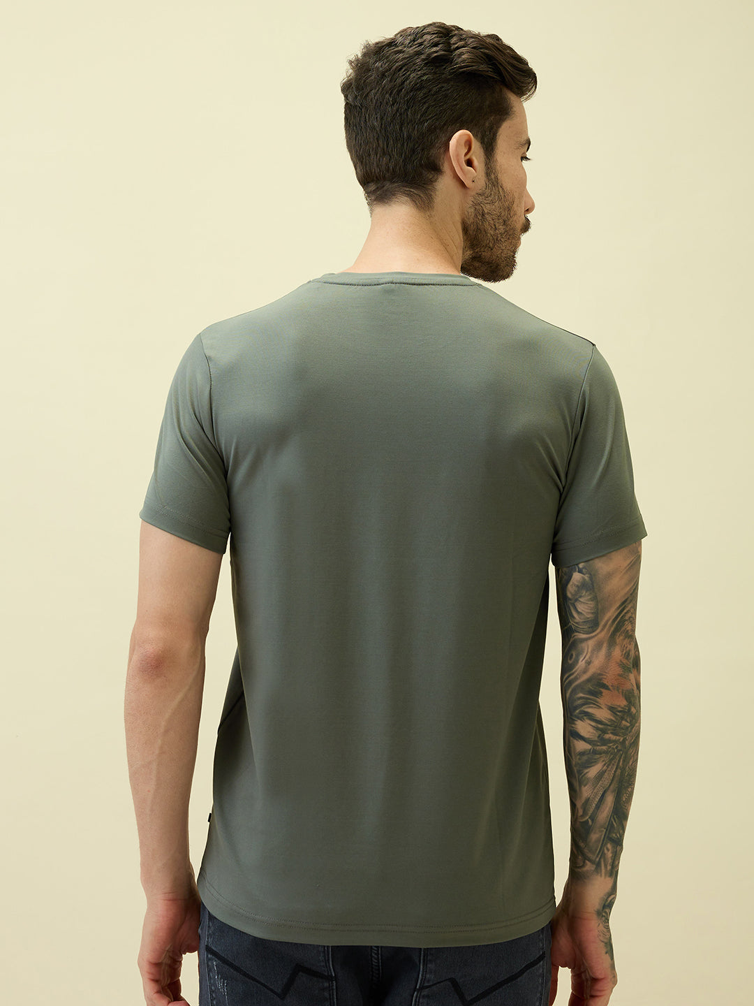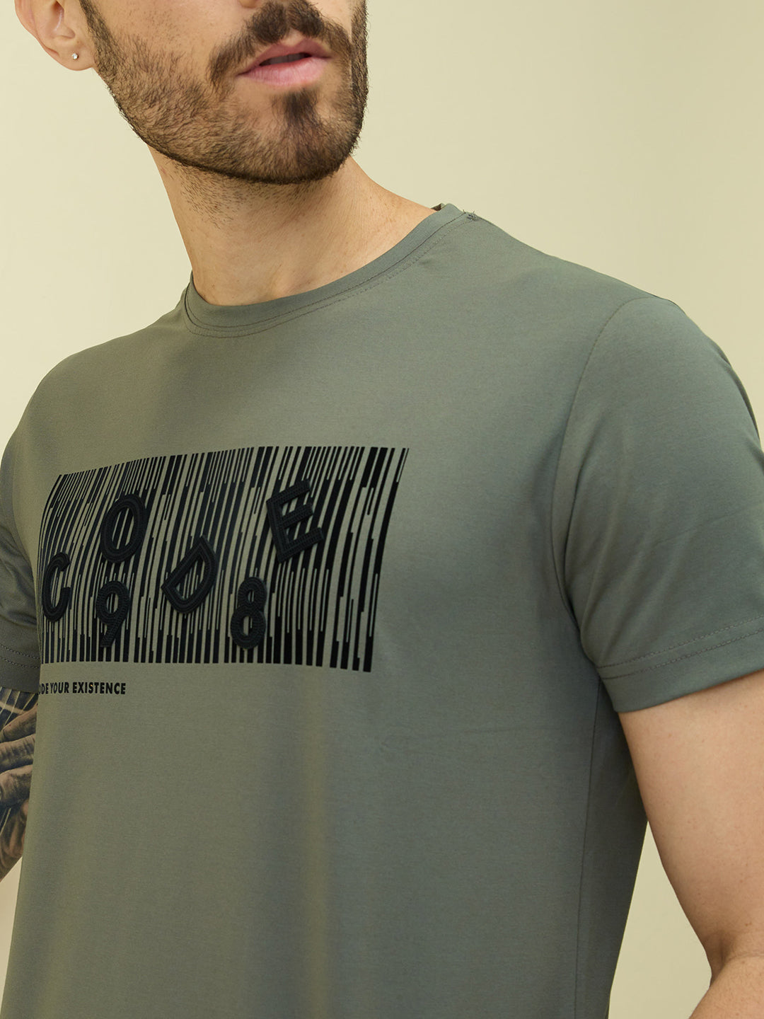 LT.OLIVE Men's Printed Round Neck Half Sleeves Regular Fit Tshirt