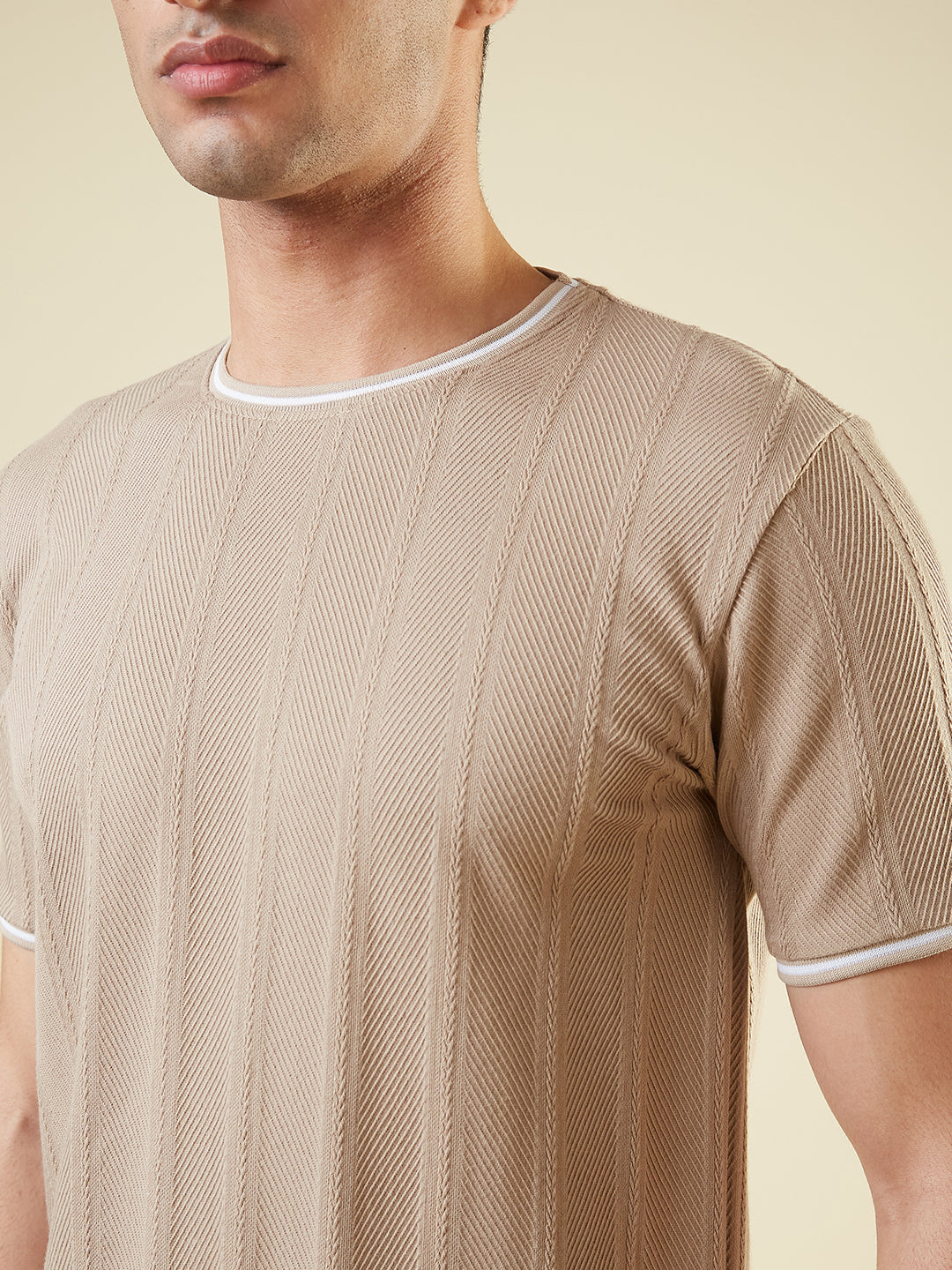 BEIGE Mens All-Over Solid Half Sleeves Regular Fit T-shirt