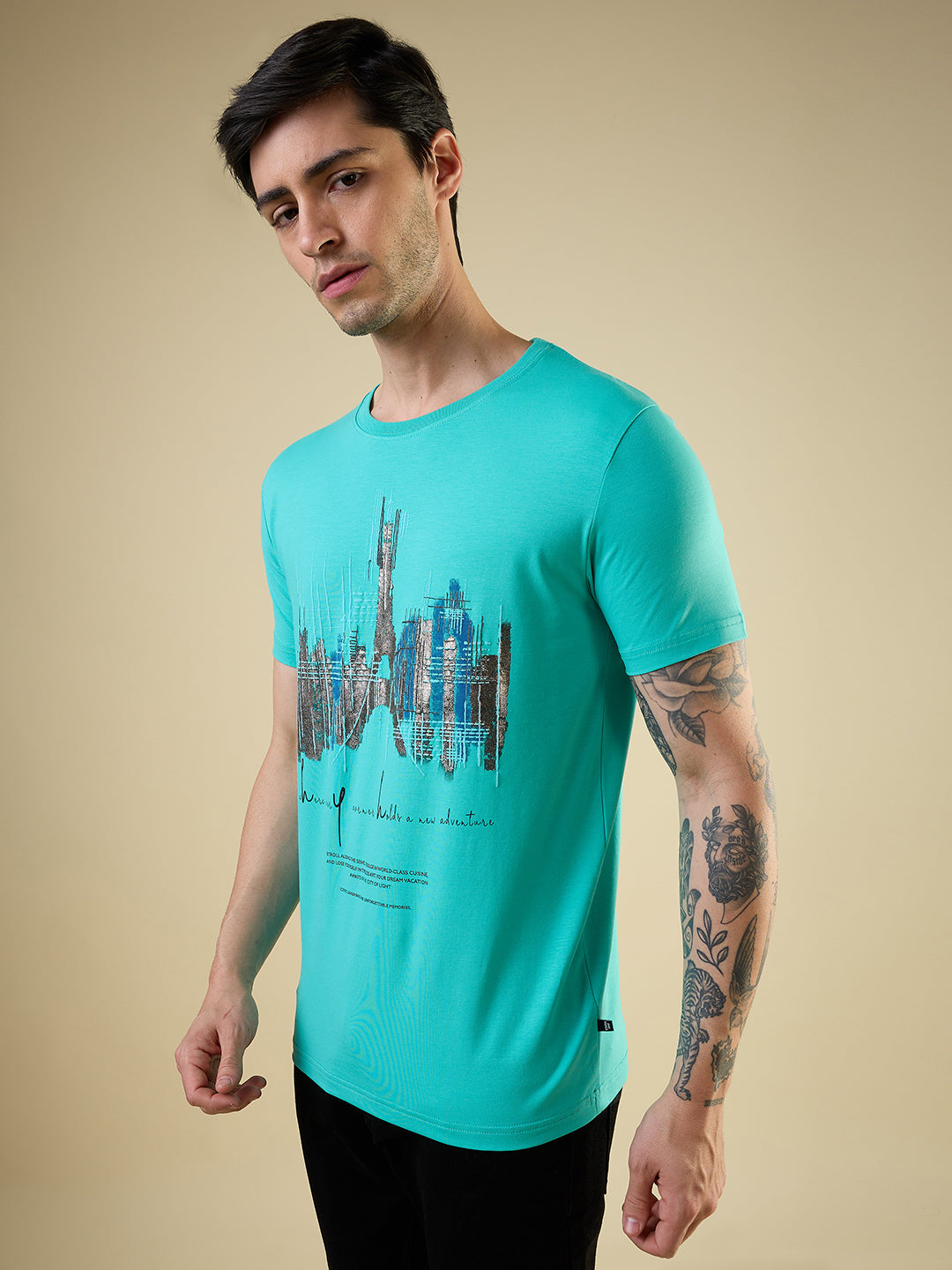 SEA GREEN Mens Full-Front Graphic Printed Half Sleeves Regular Fit T-shirt