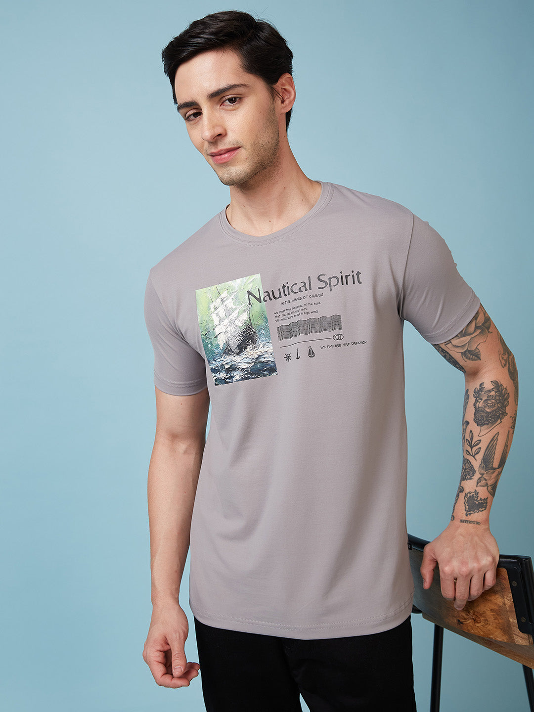 GREY Mens Printed Round Neck Half Sleeves T-shirt