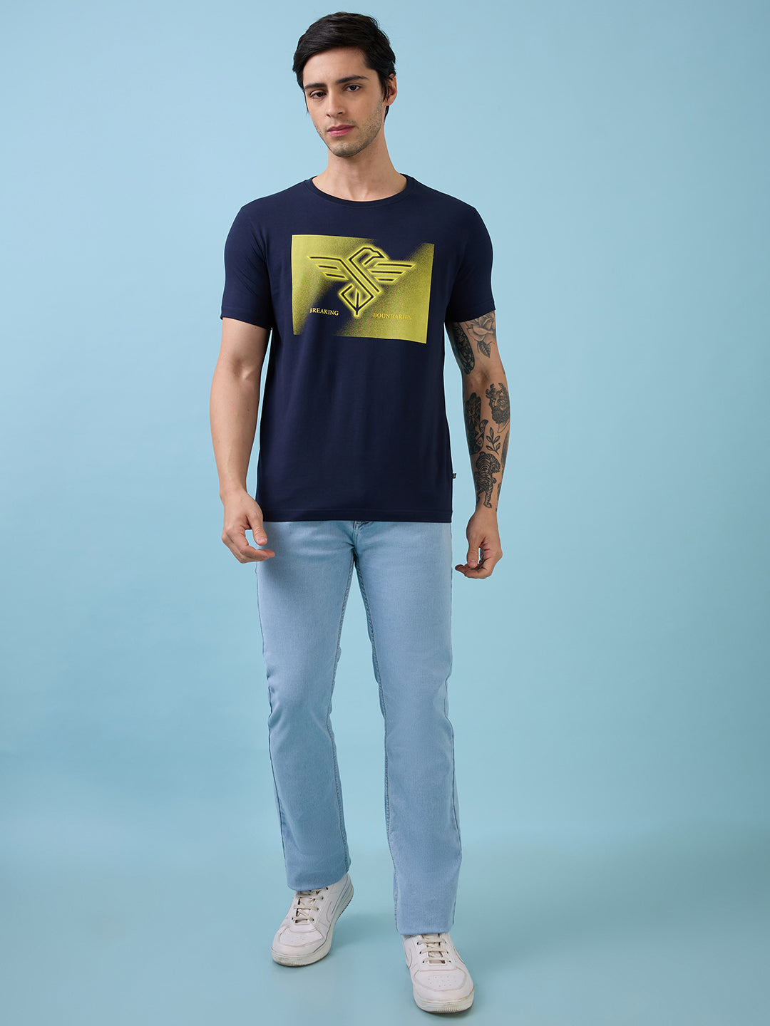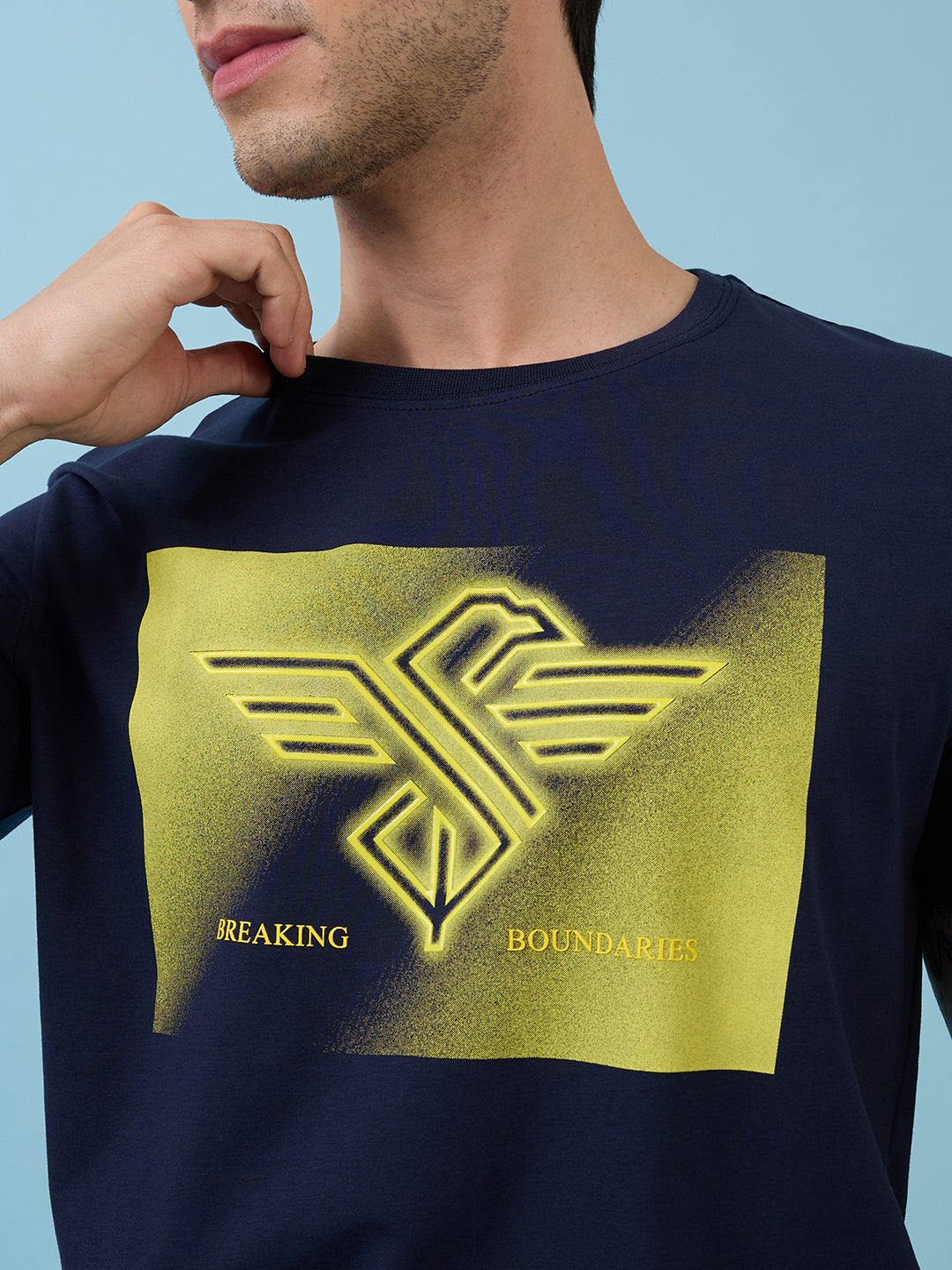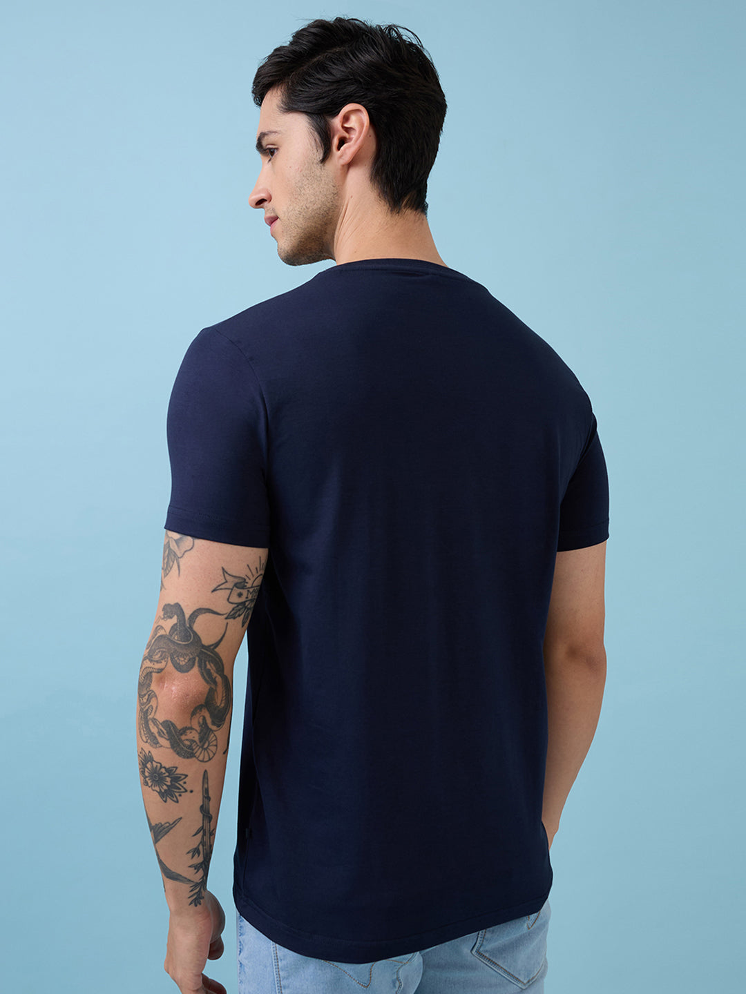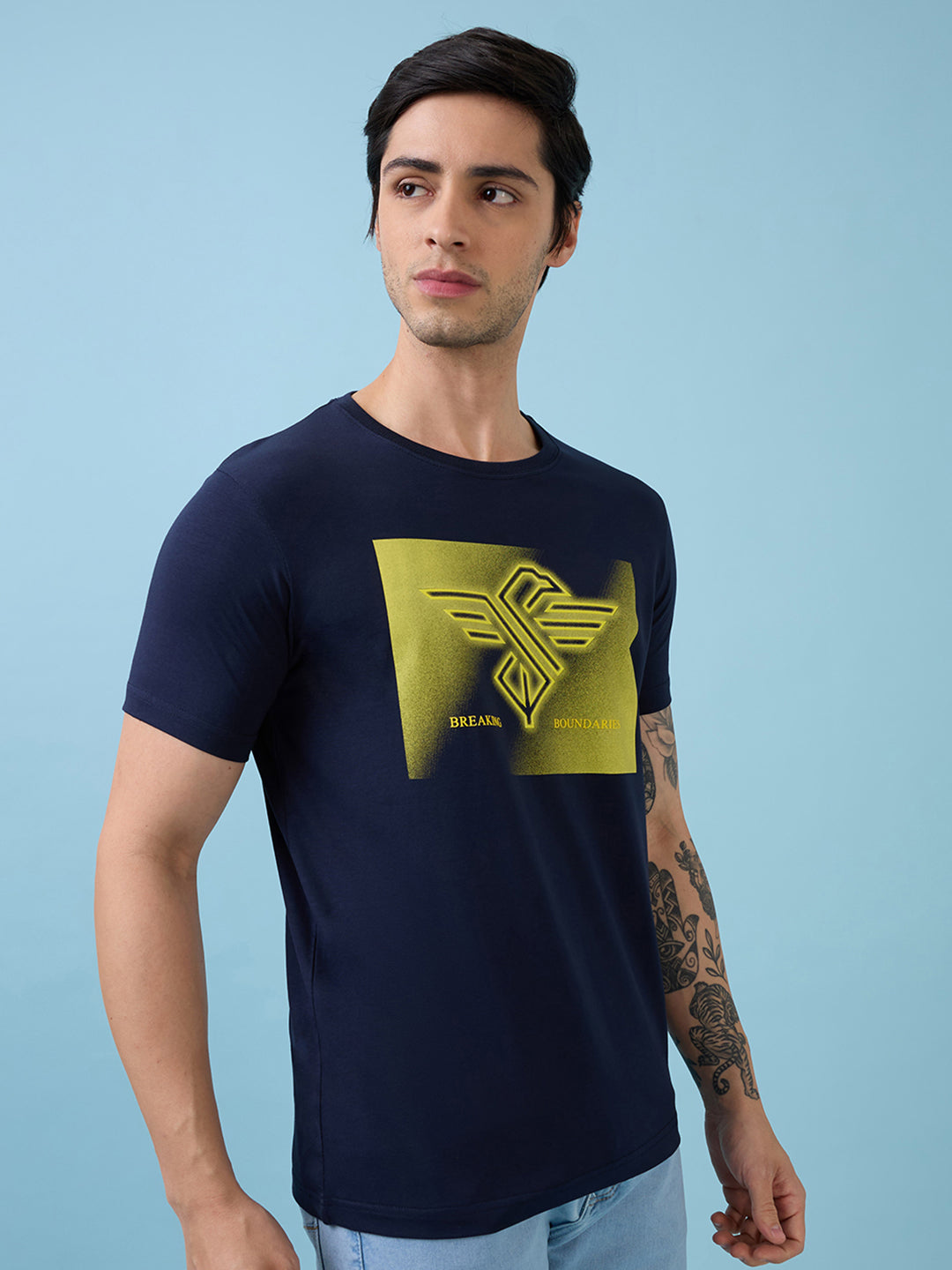NAVY Mens Printed Round Neck Half Sleeves T-shirt