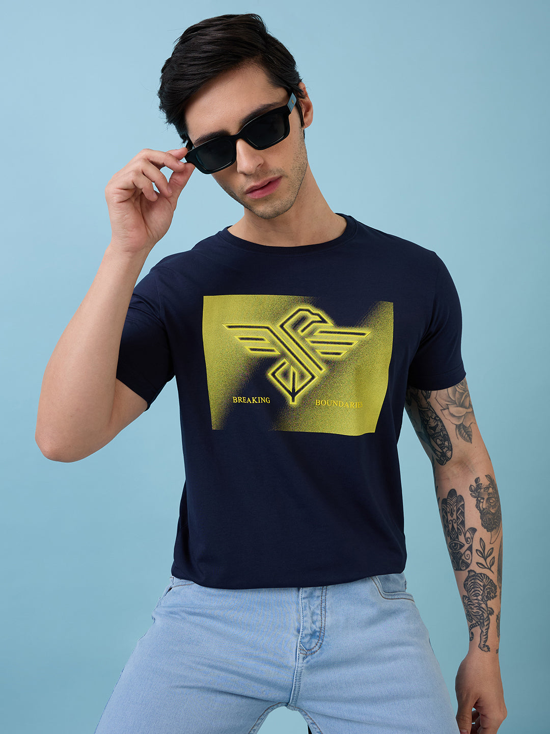 NAVY Mens Printed Round Neck Half Sleeves T-shirt