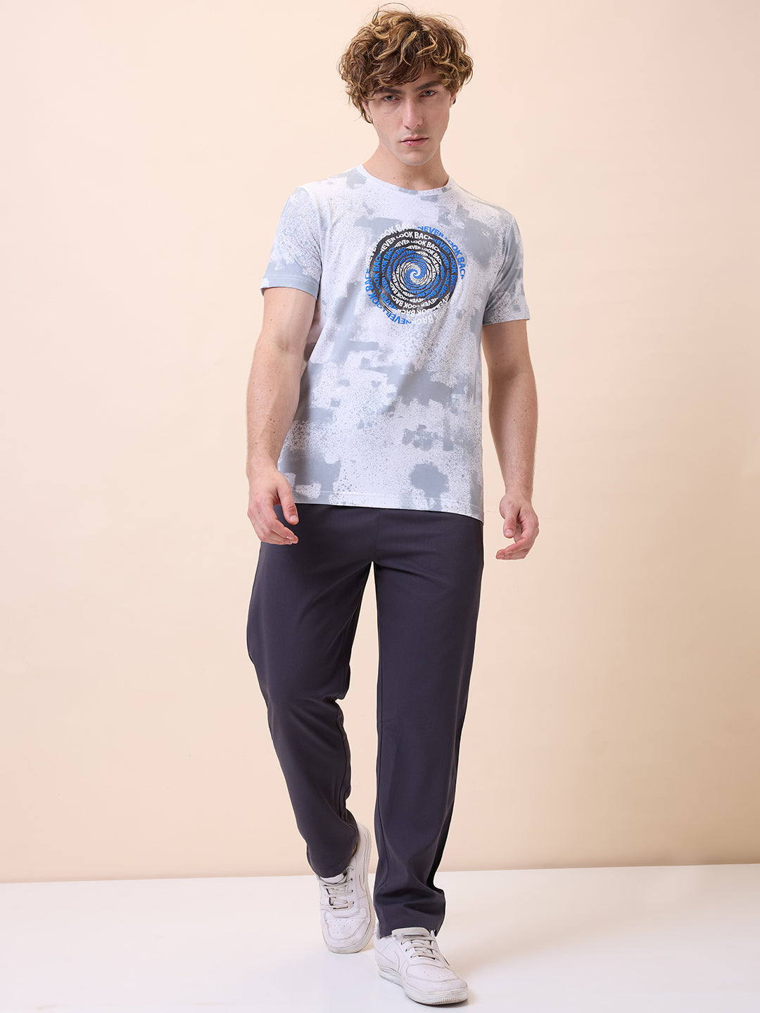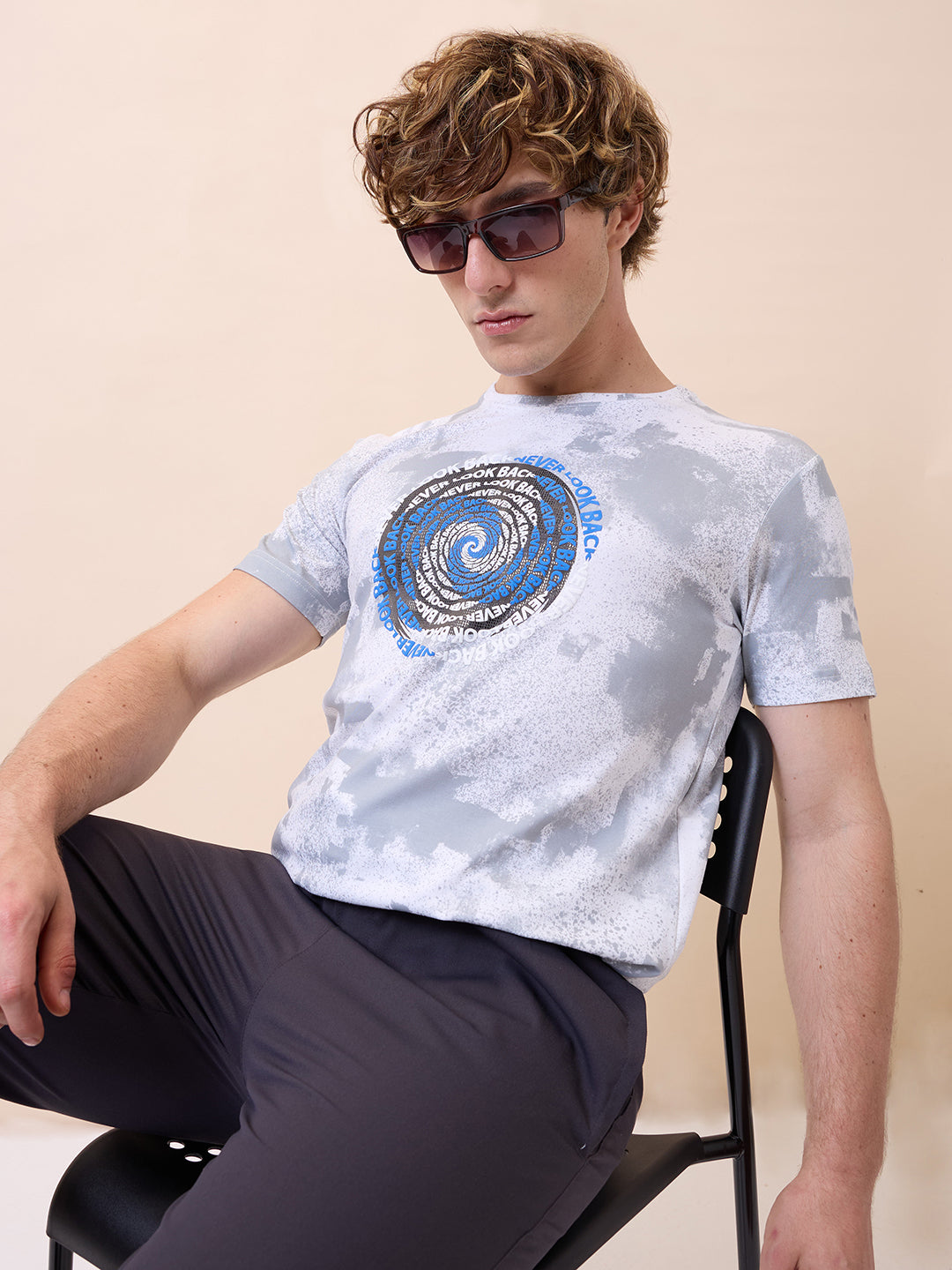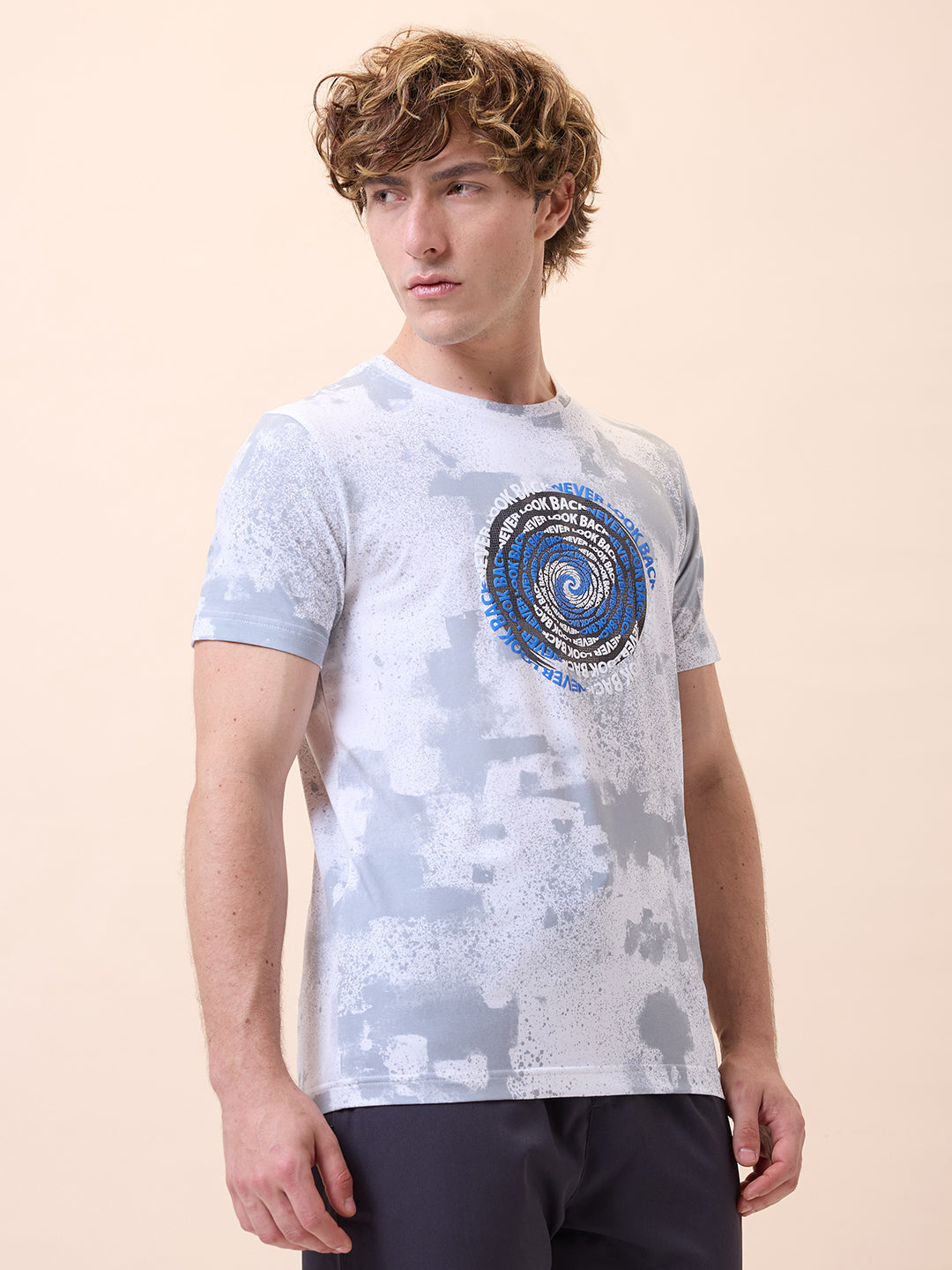WHITE Mens All-Over Typography Round Neck Half Sleeves Regular Fit T-Shirt