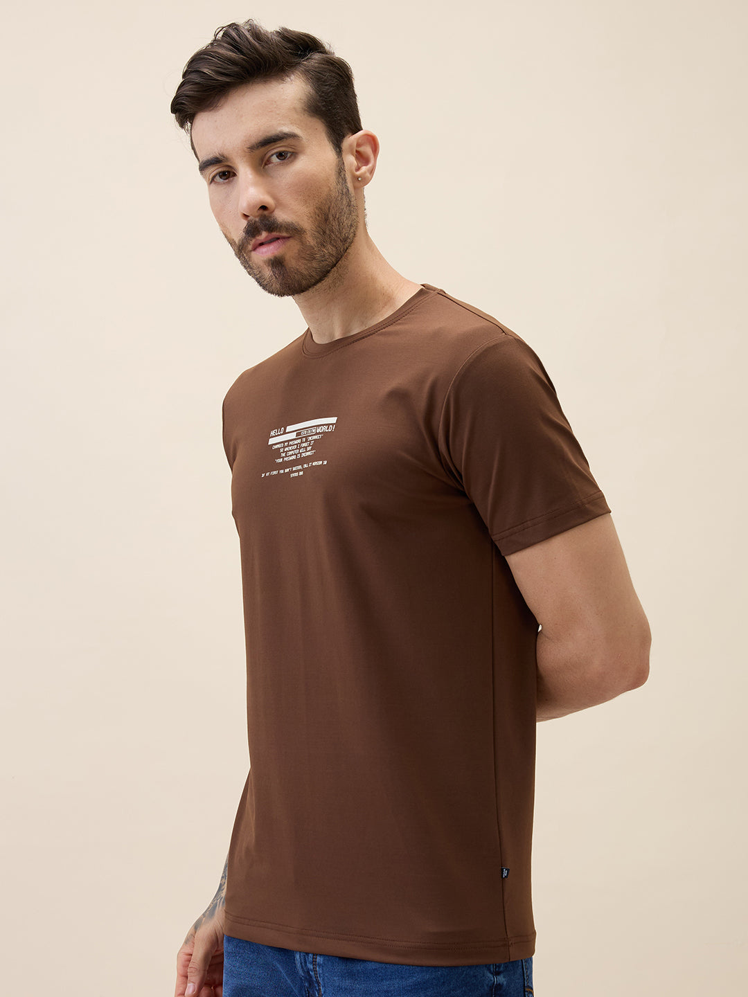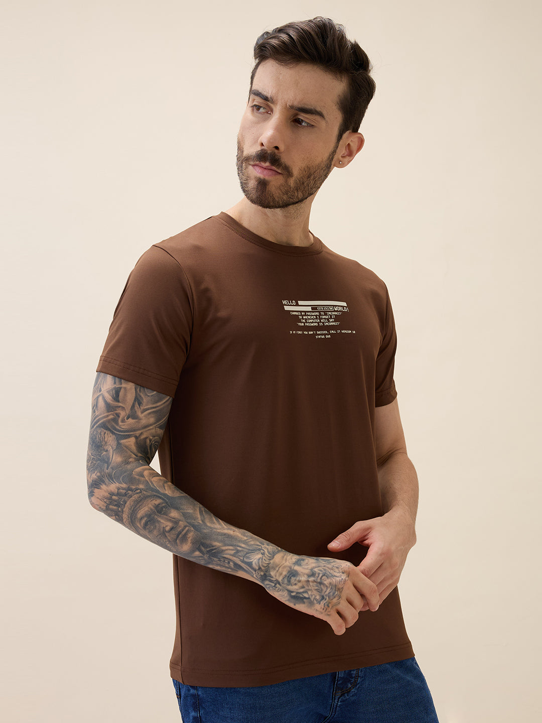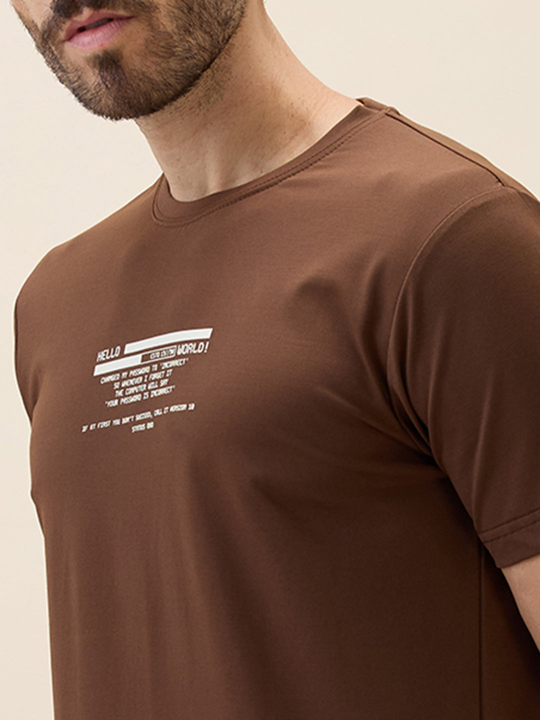 BROWN Men's Printed Round Neck Half Sleeves Regular Fit Tshirt