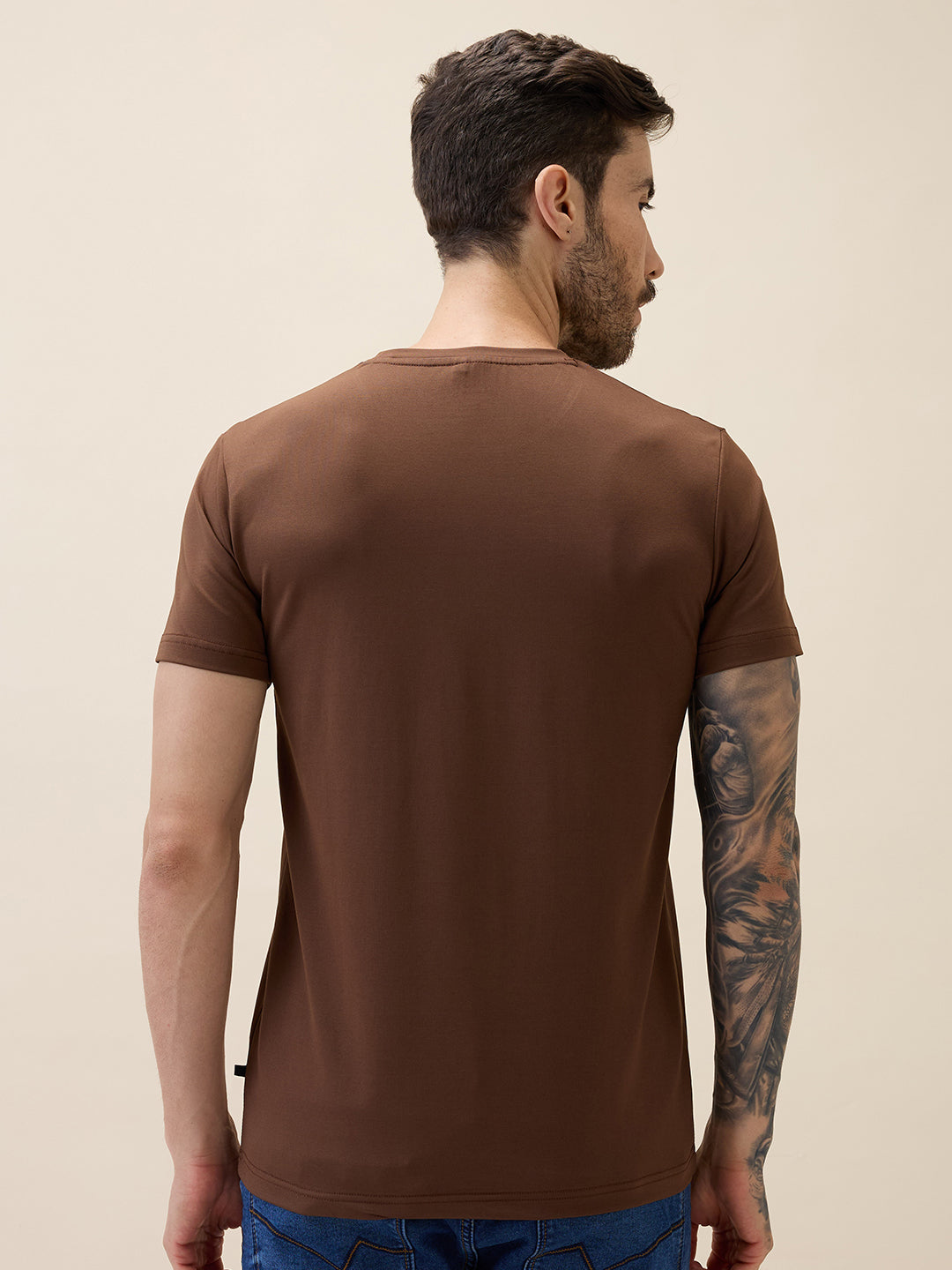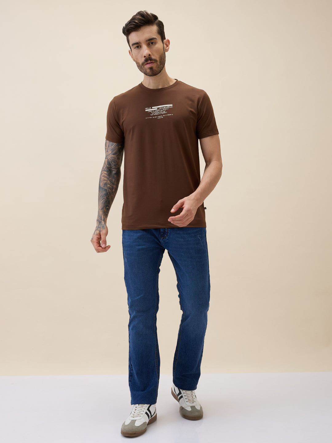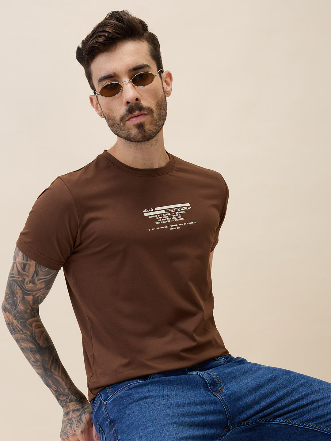 BROWN Men's Printed Round Neck Half Sleeves Regular Fit Tshirt