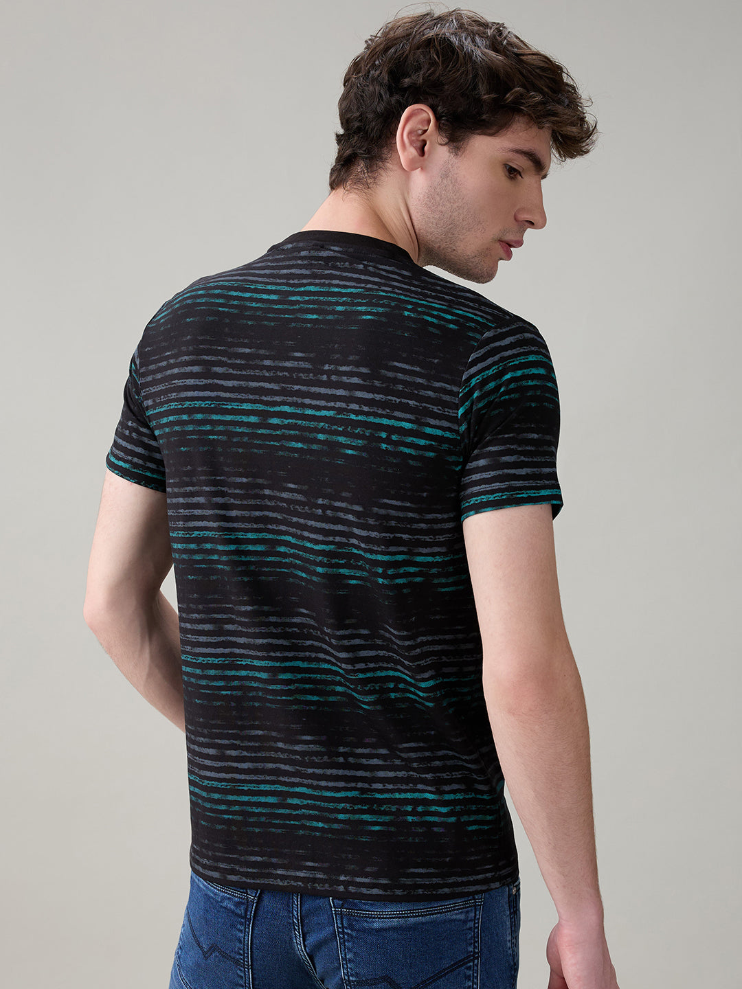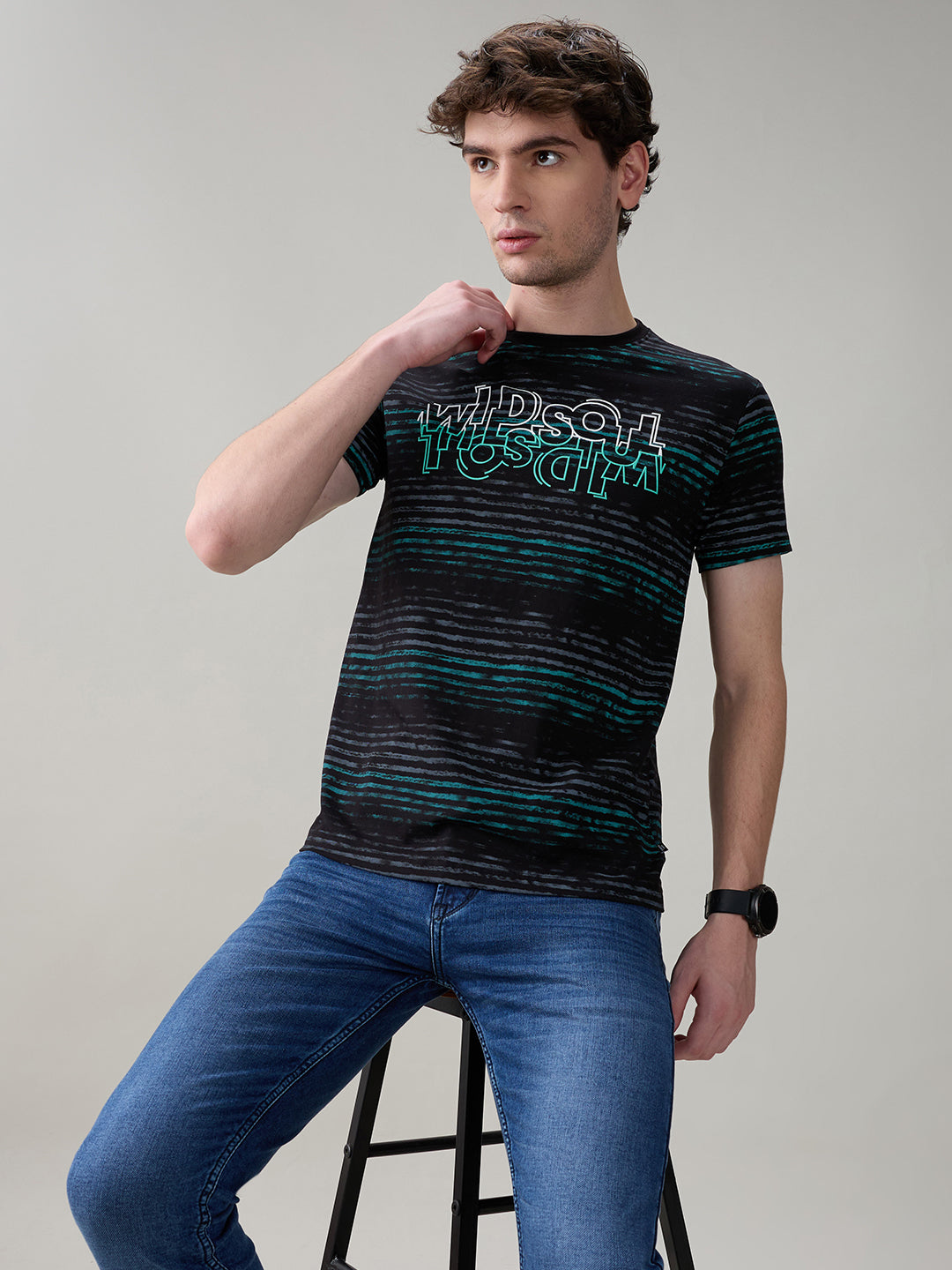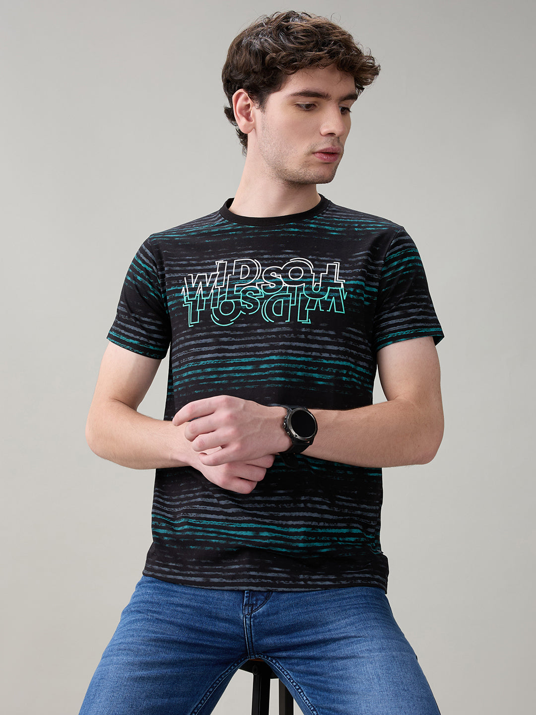 BLACK Status Quo Men's Printed Half Sleeves Round Neck Regular Fit T-Shirt