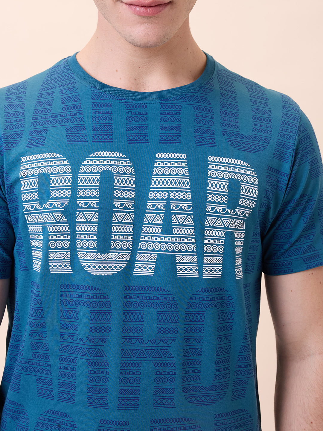 TEAL Mens All-Over Typography Round Neck Half Sleeves Regular Fit T-Shirt