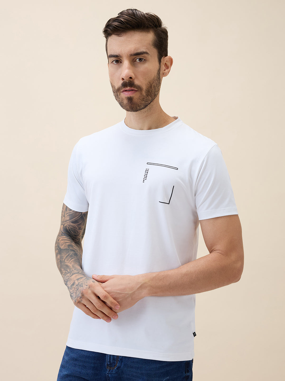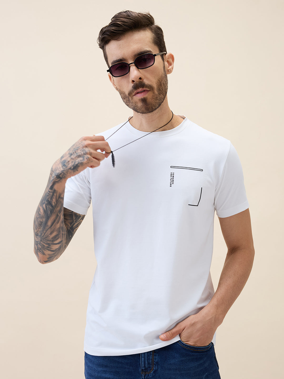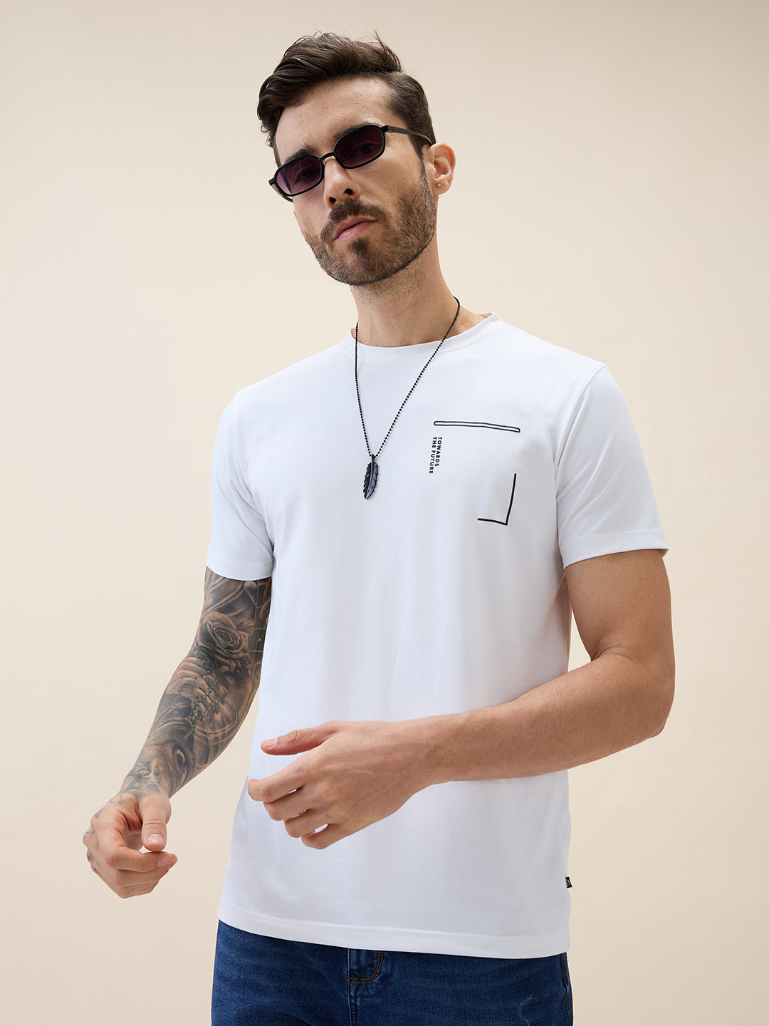 WHITE Men's Printed Round Neck Half Sleeves Regular Fit Tshirt