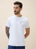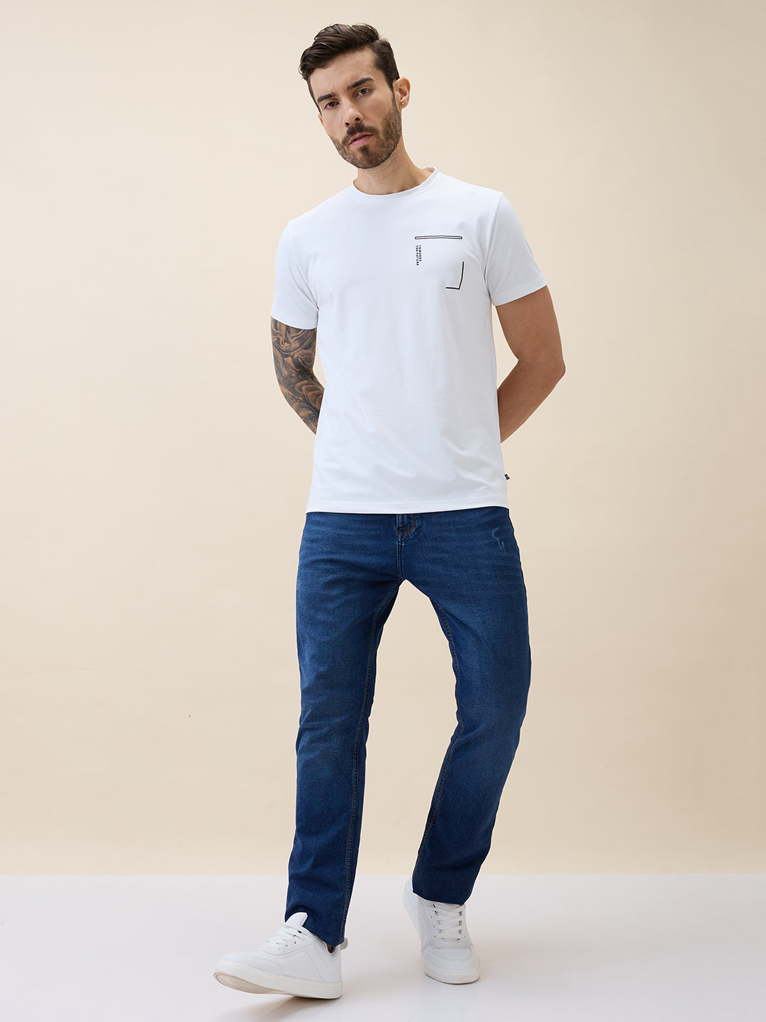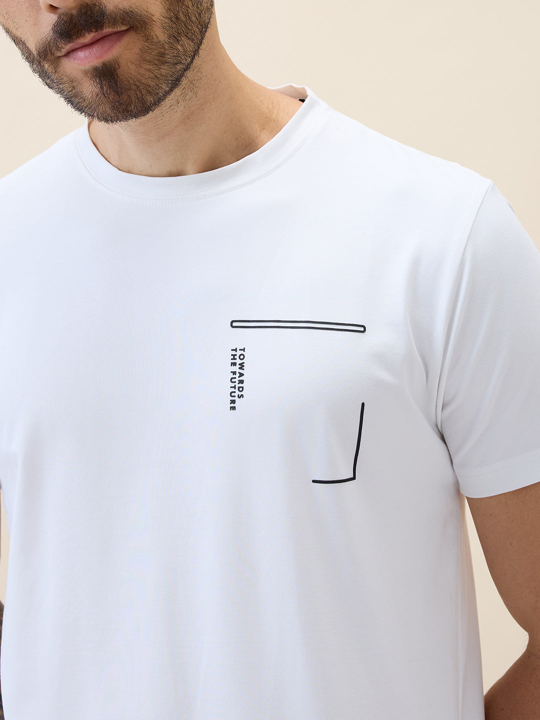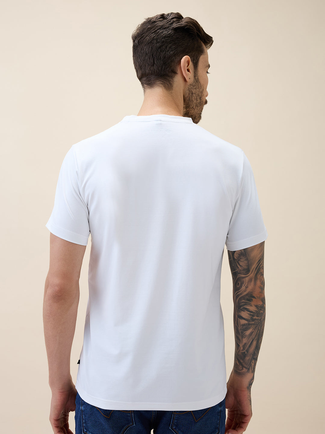 WHITE Men's Printed Round Neck Half Sleeves Regular Fit Tshirt