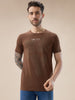 BROWN Men's Front Typography Print Half Sleeves Round Neck T-Shirt