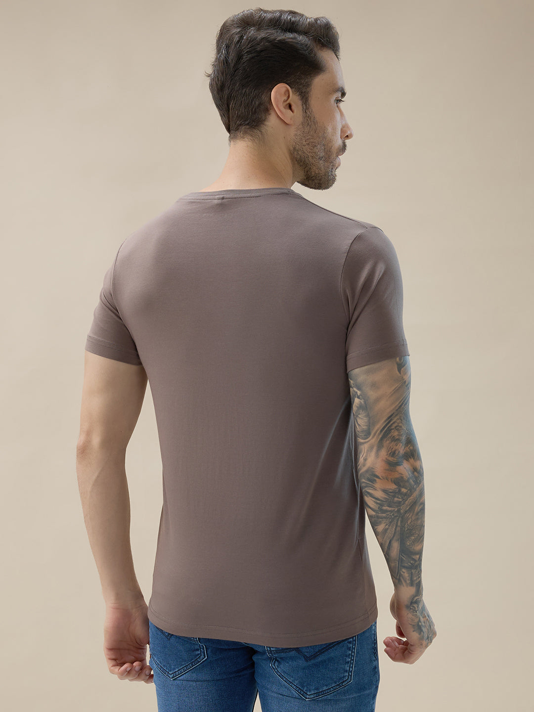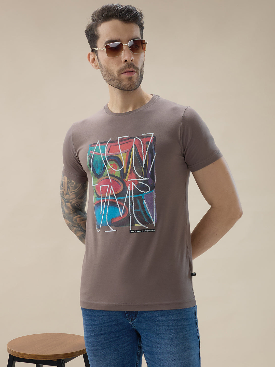 OLIVE Men's Chest Graphic Print Round Neck Half Sleeve Regular Fit T-Shirt