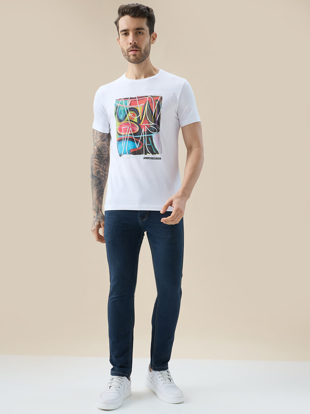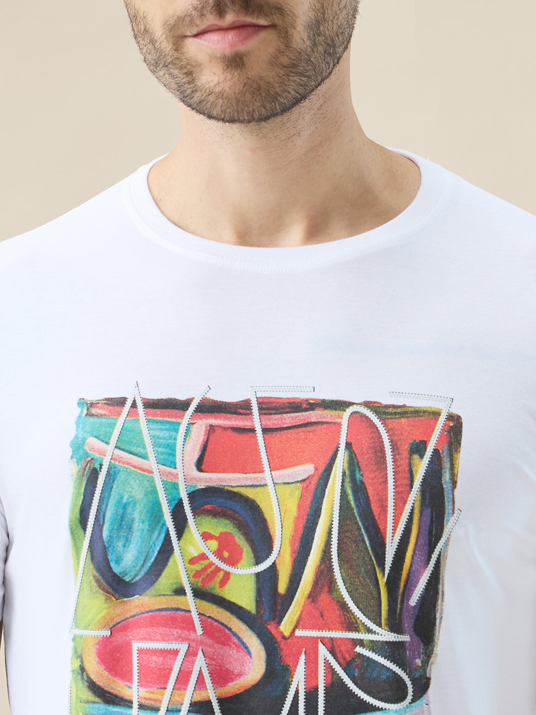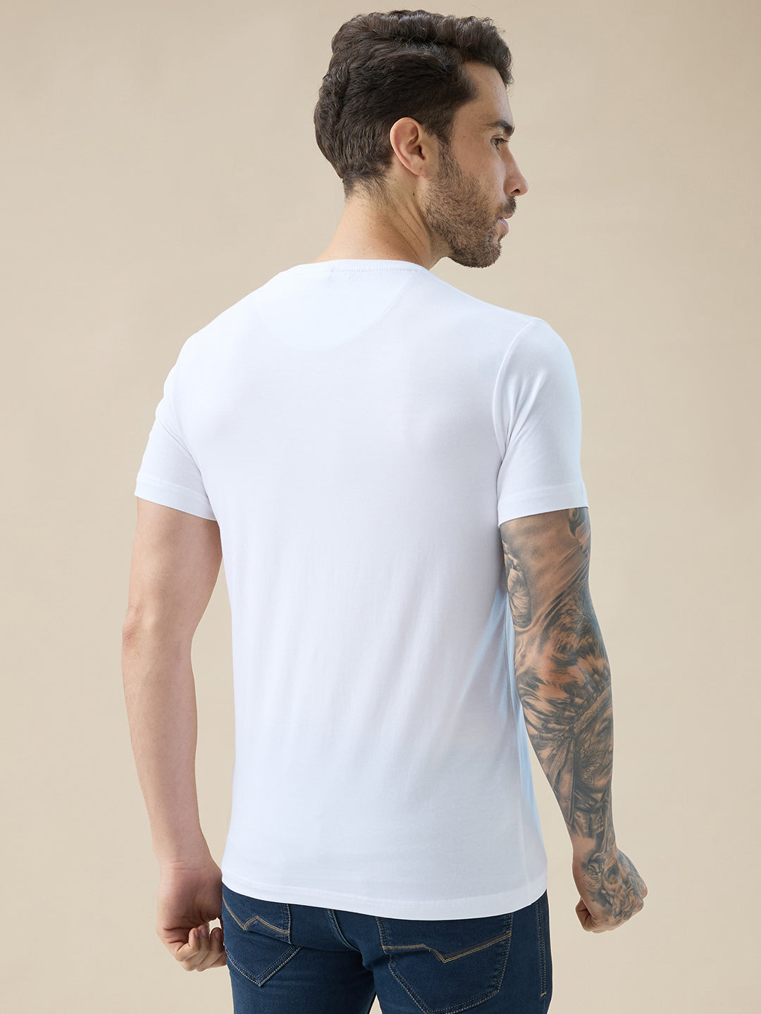 WHITE Men's Chest Graphic Print Round Neck Half Sleeve Regular Fit T-Shirt