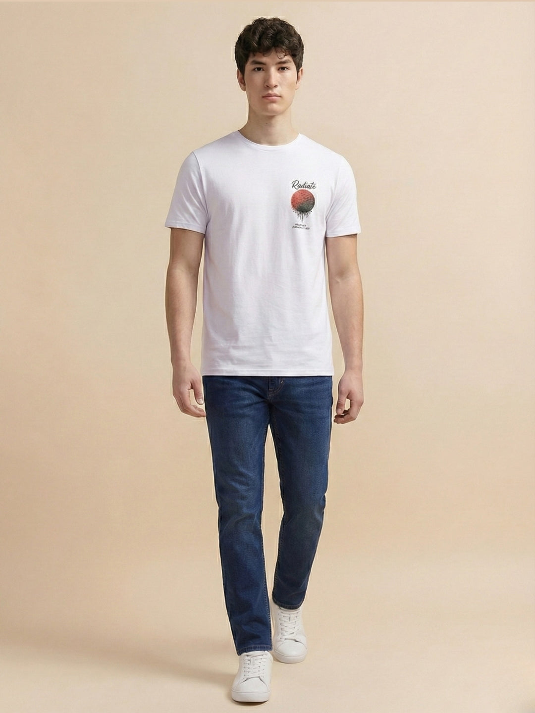 WHITE Men's Graphic Typography Print Round Neck Half Sleeves T-Shirt