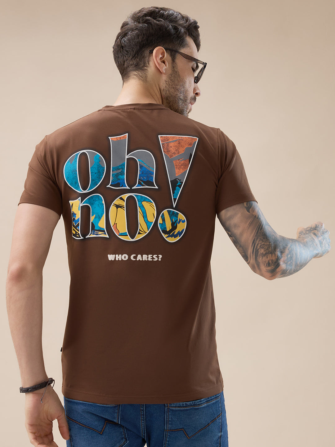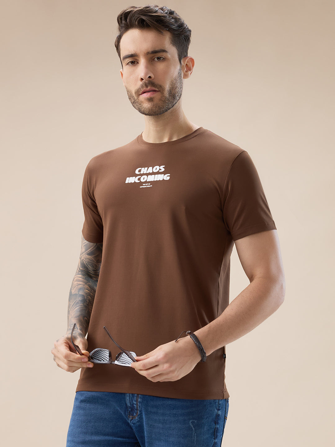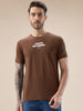 BROWN Men's Chest & Back Typography Print Round Neck Half Sleeves Regular Fit T-Shirt