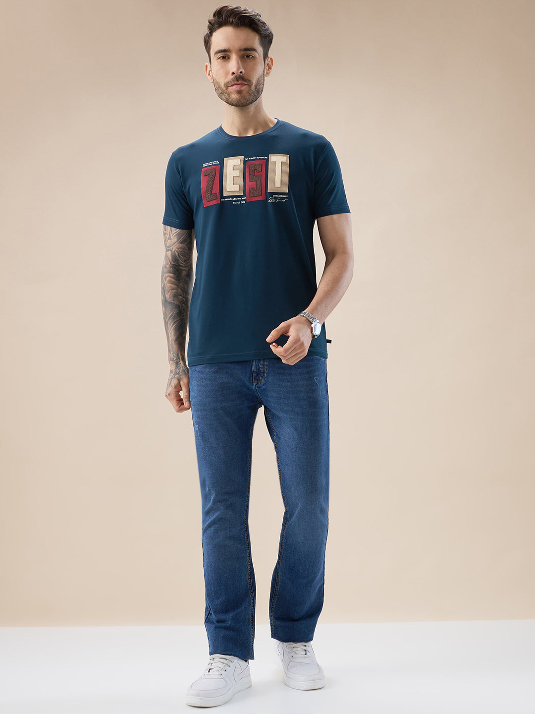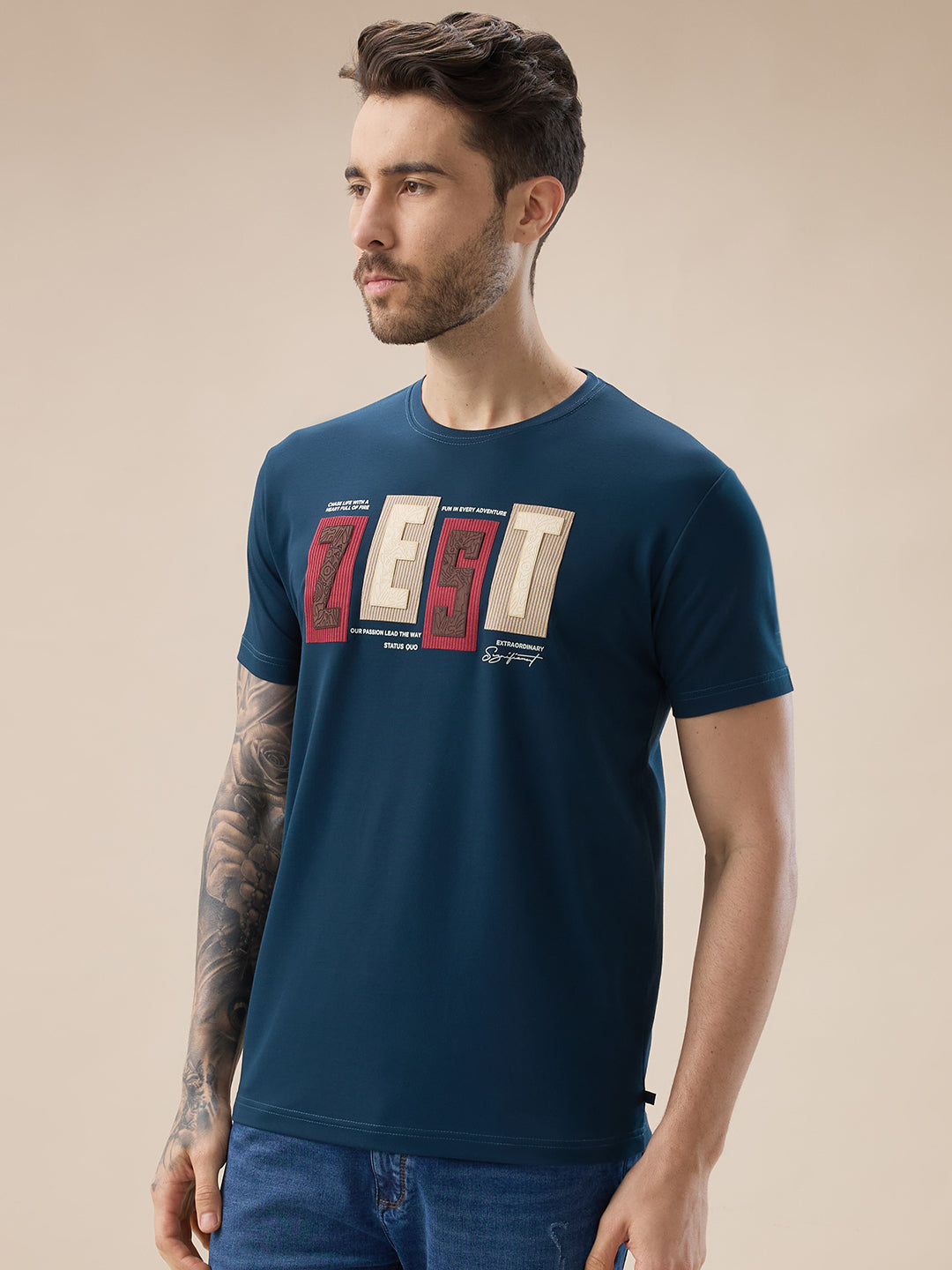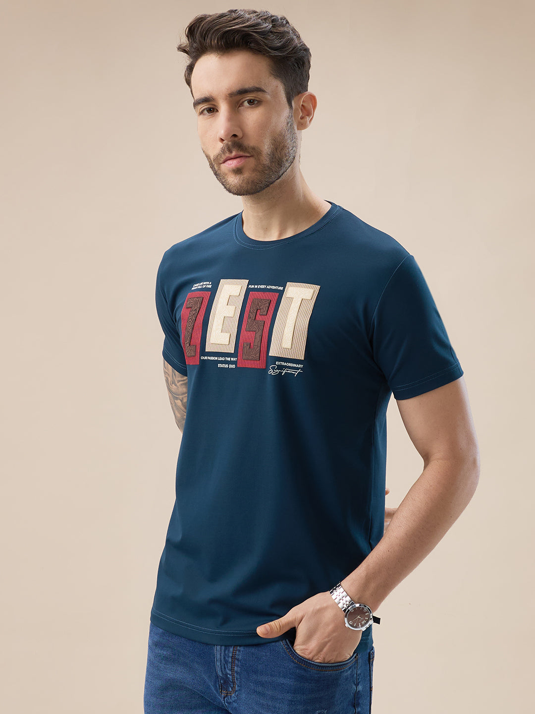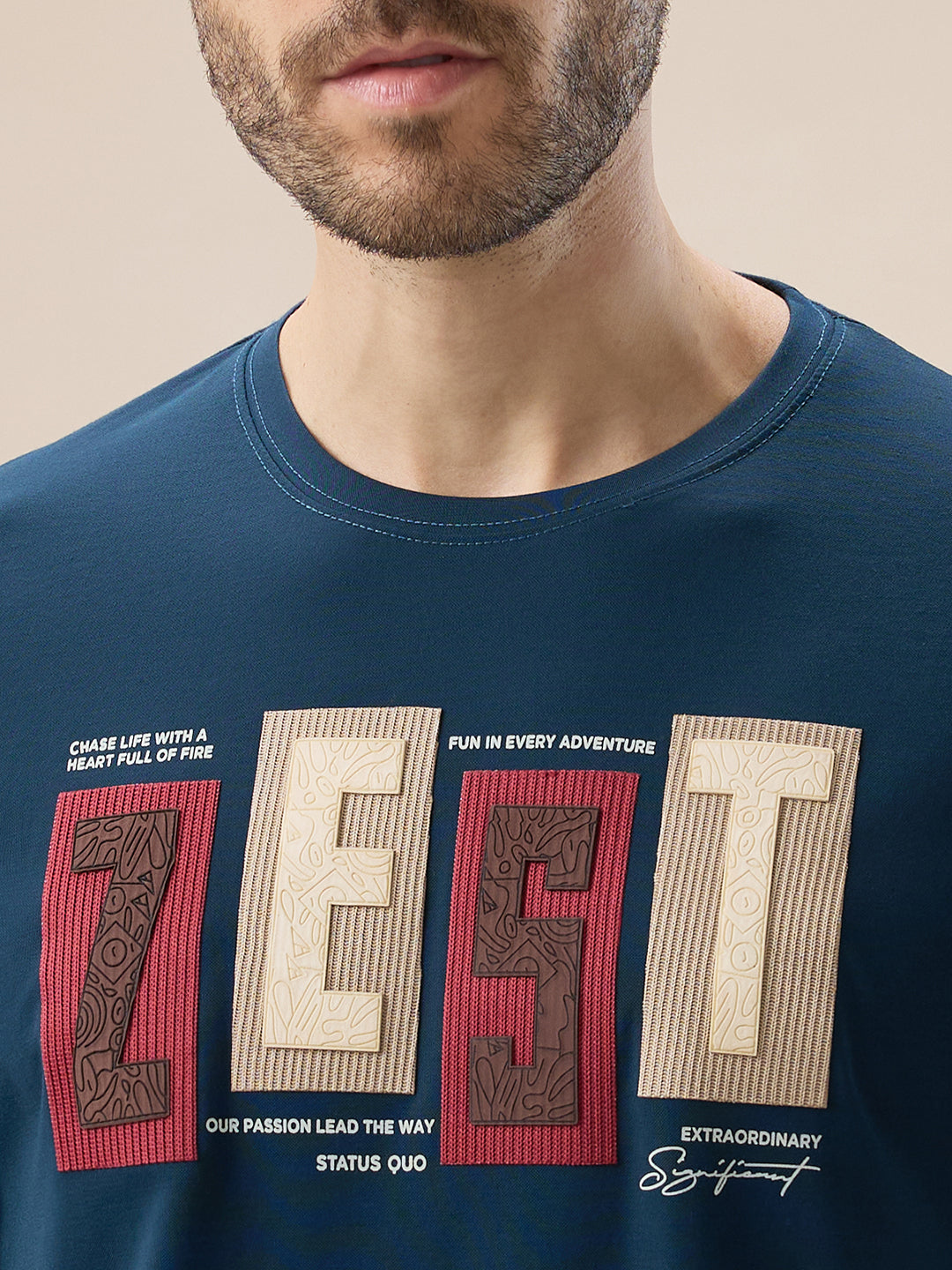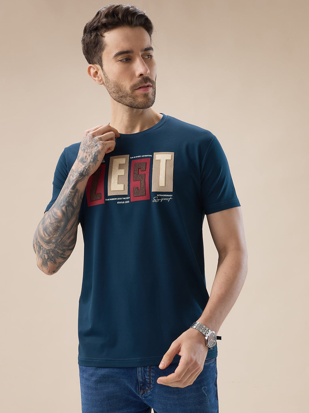 PETROL Men's Rubberized Typography Print Round Neck Regular Fit T-Shirt